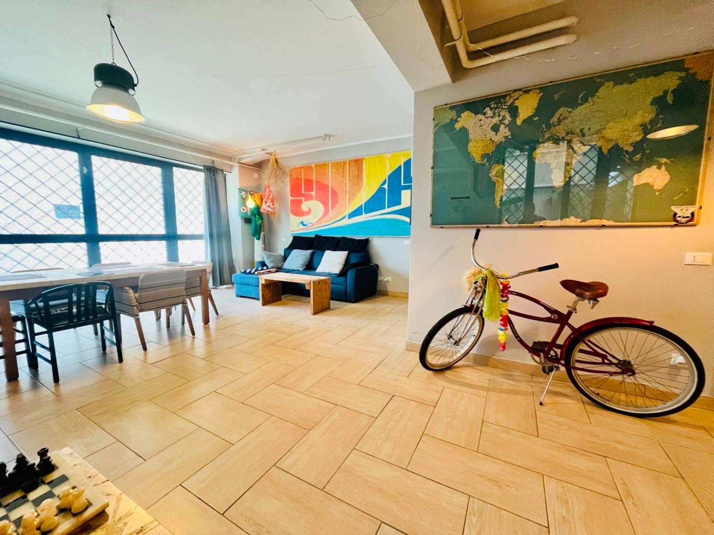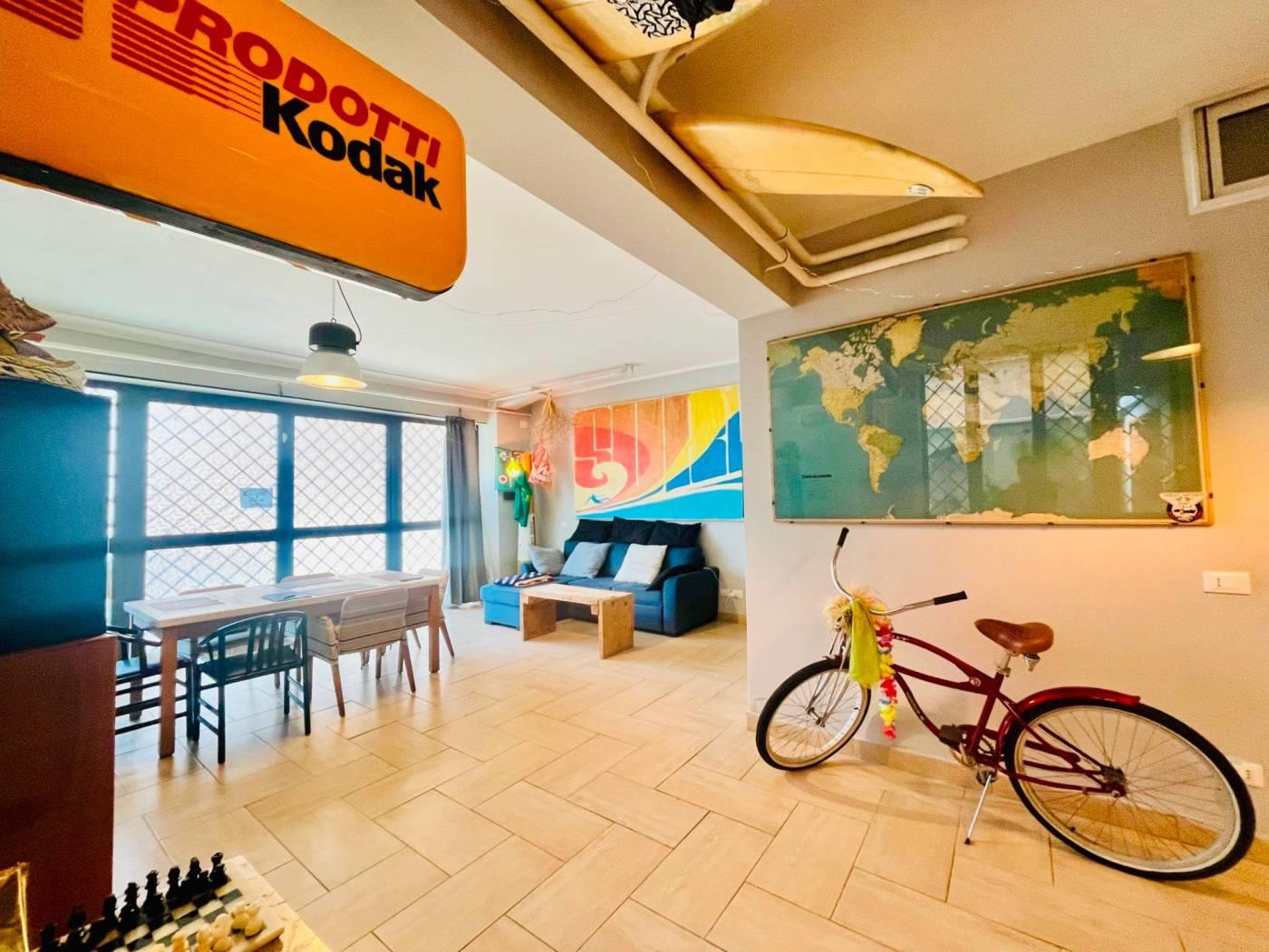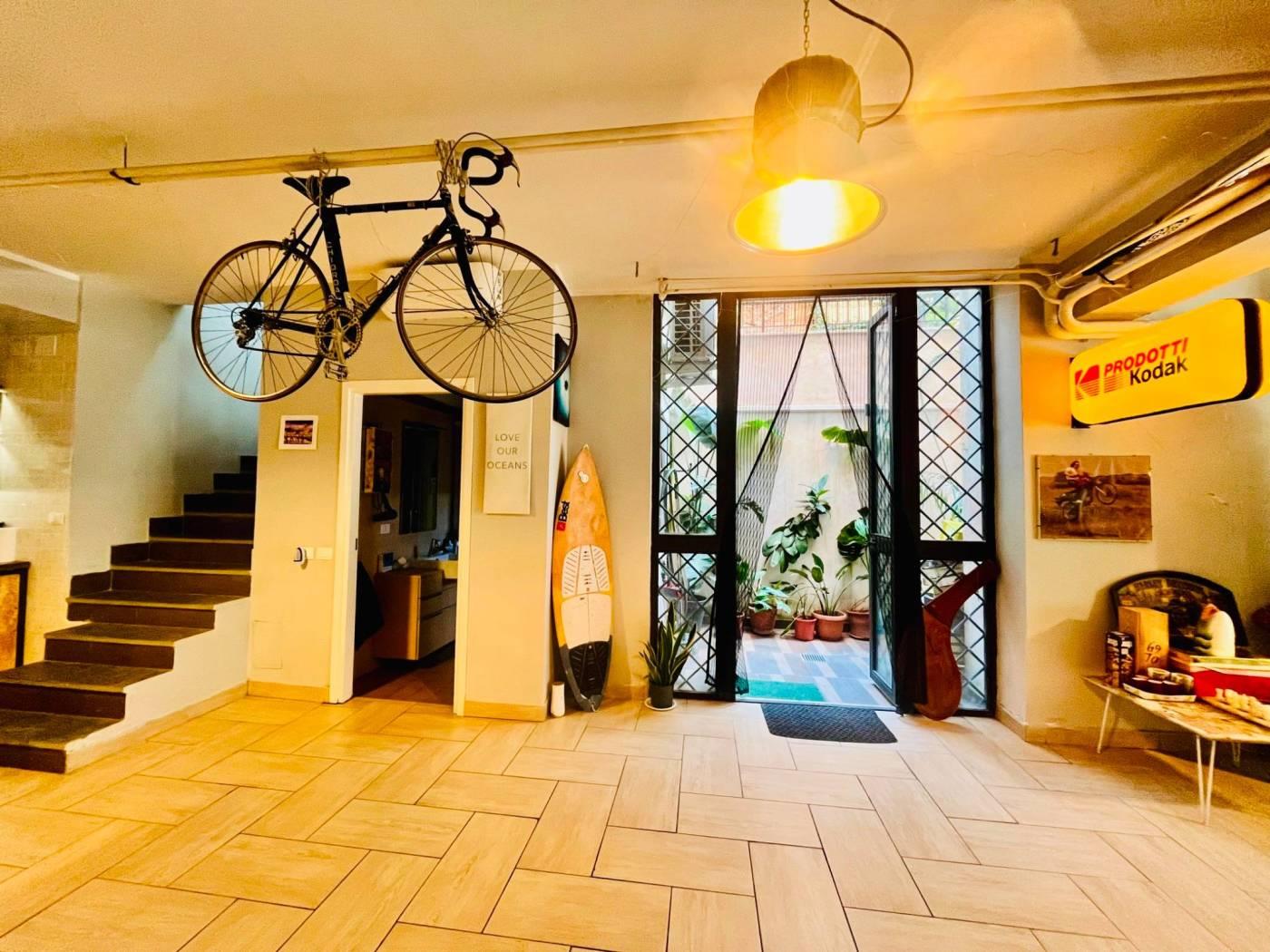 Adiacente Via del Trullo, all’interno di una palazzina in cortina, proponiamo in vendita un immobile di ampia metratura accatastato C/3 (laboratorio), attualmente organizzato anche per uso abitativo.