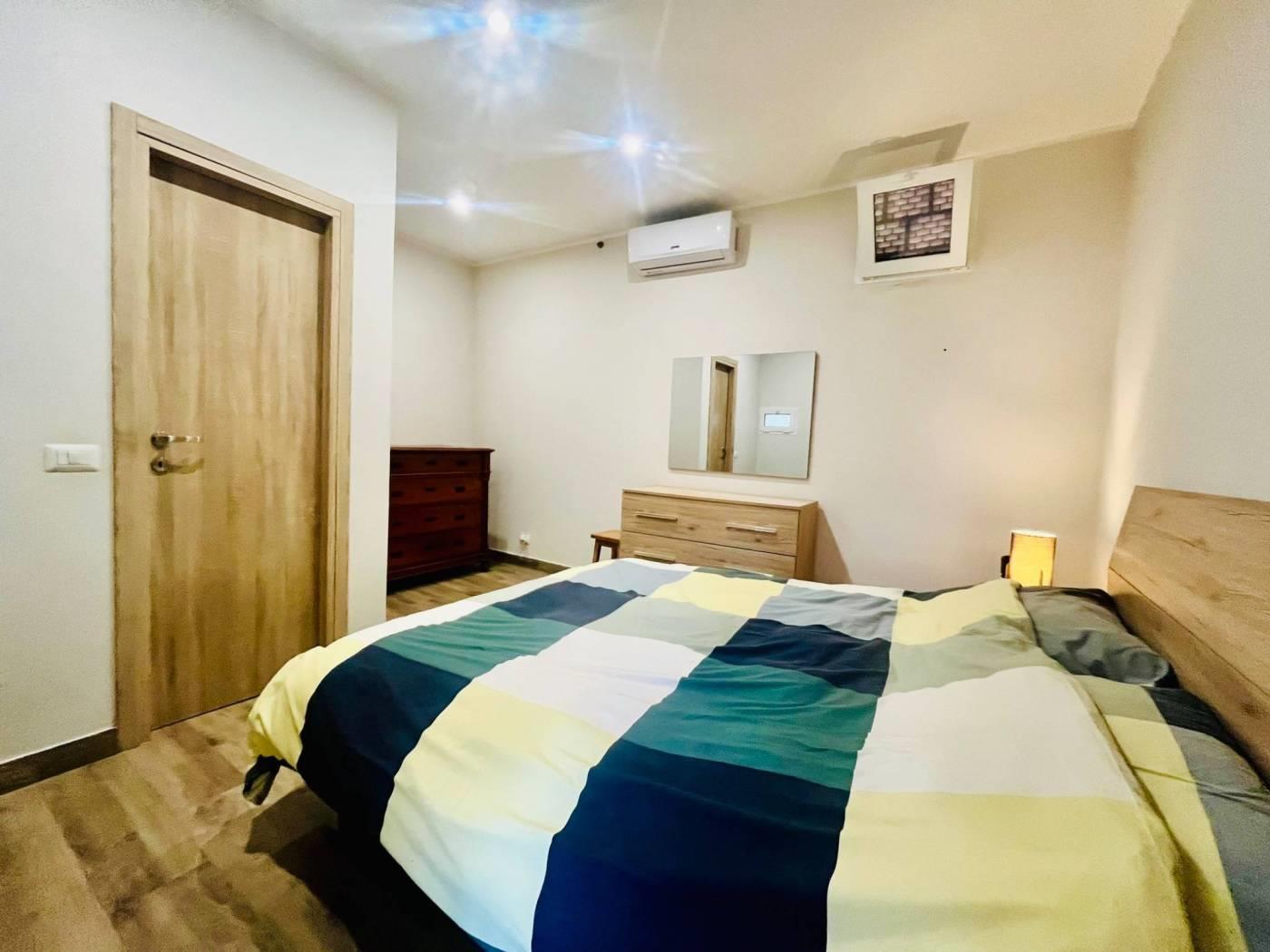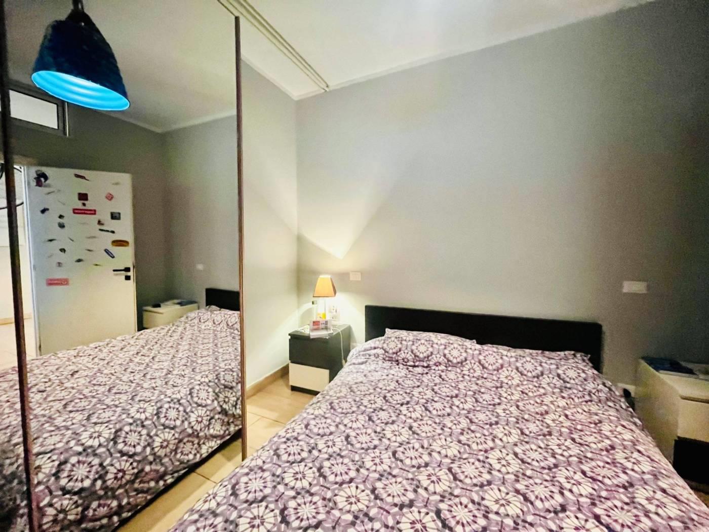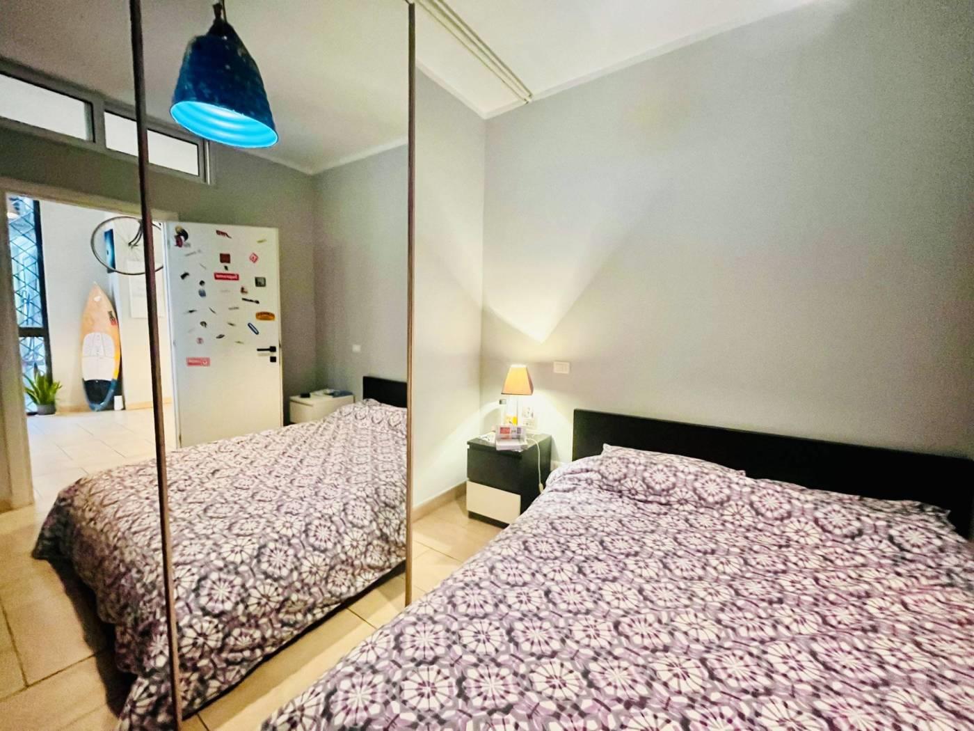 Una scala interna collega il livello superiore, dove è presente un’ulteriore camera con servizio e accesso a un giardino pavimentato.