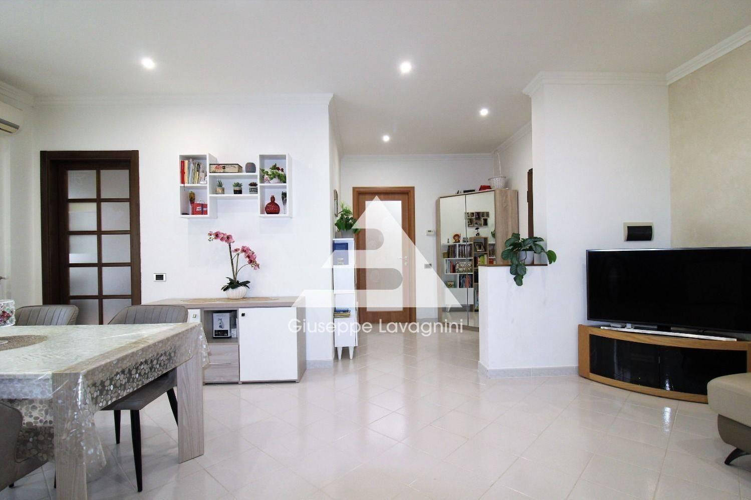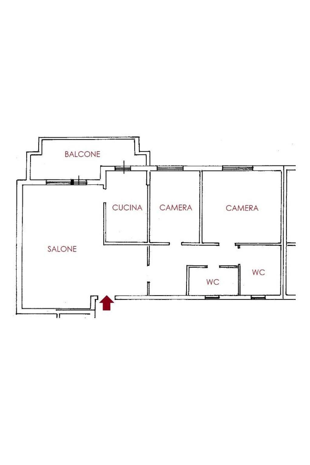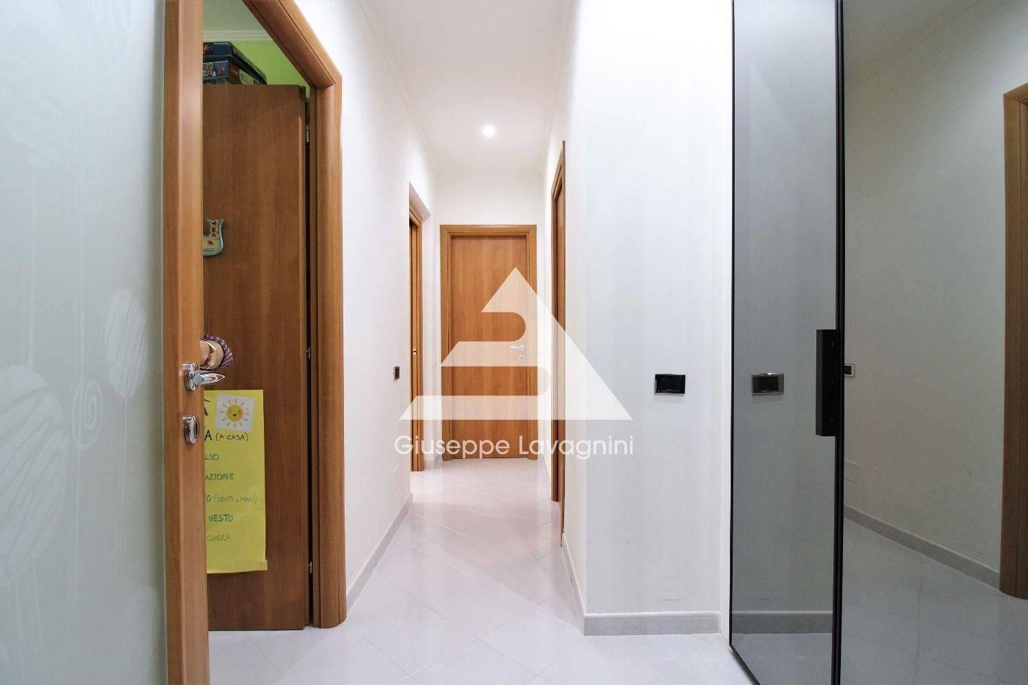 L'appartamento, di circa 90 mq, è posto al primo piano con ascensore ed è composto da ingresso, un ampio e luminoso salone con porta finestra per accedere al balcone abitabile con affaccio sul verde, cucina semi-abitabile, corridoio con ampio ripostiglio, due camere da letto, doppi servizi entrambi finestrati.