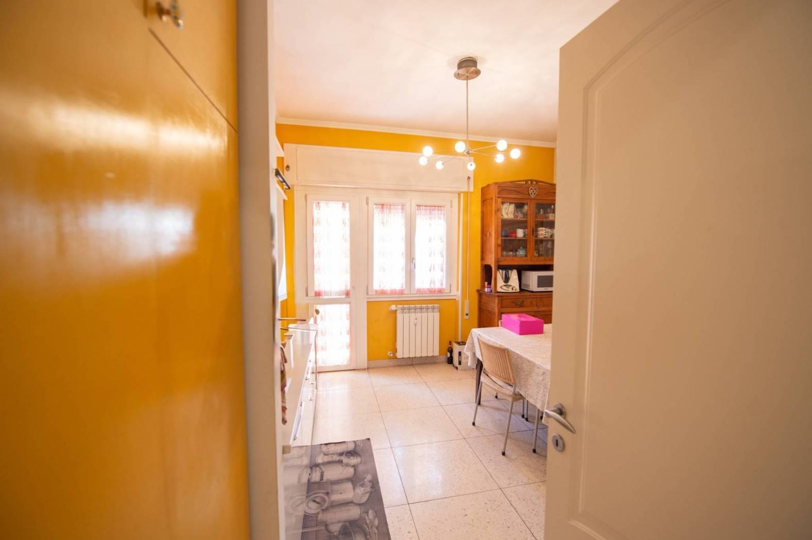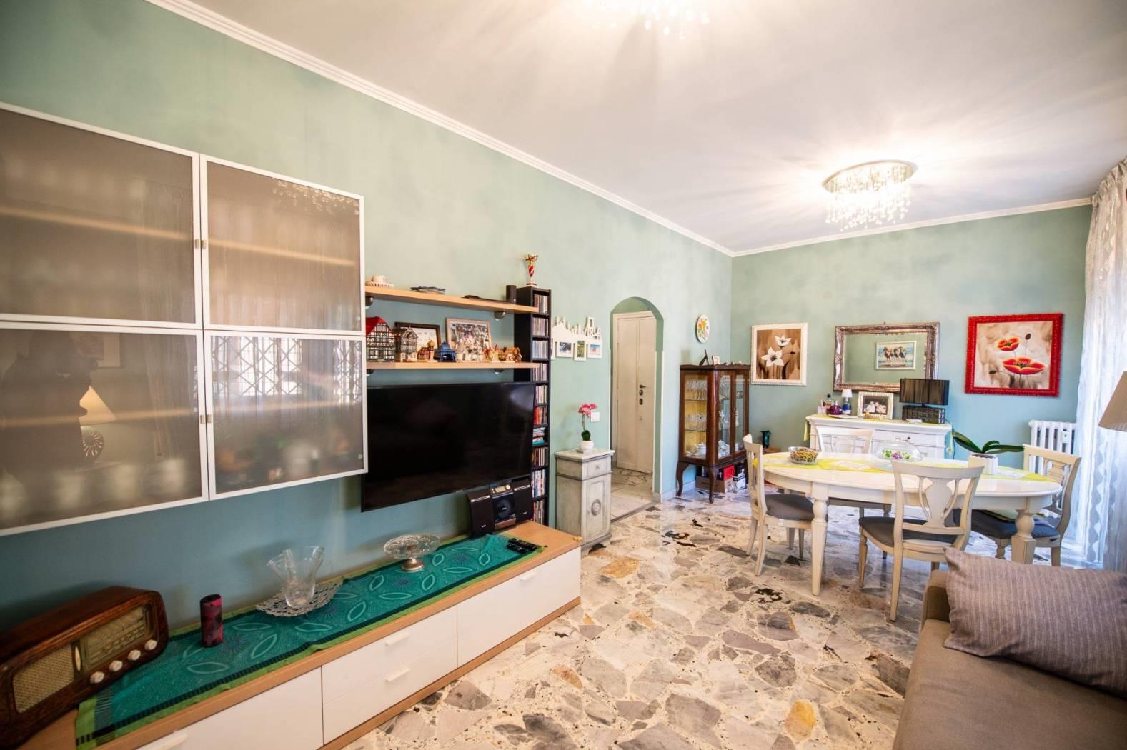 La zona giorno è composta da un ampio salone con accesso al terrazzo e da una cucina abitabile con accesso al balcone.