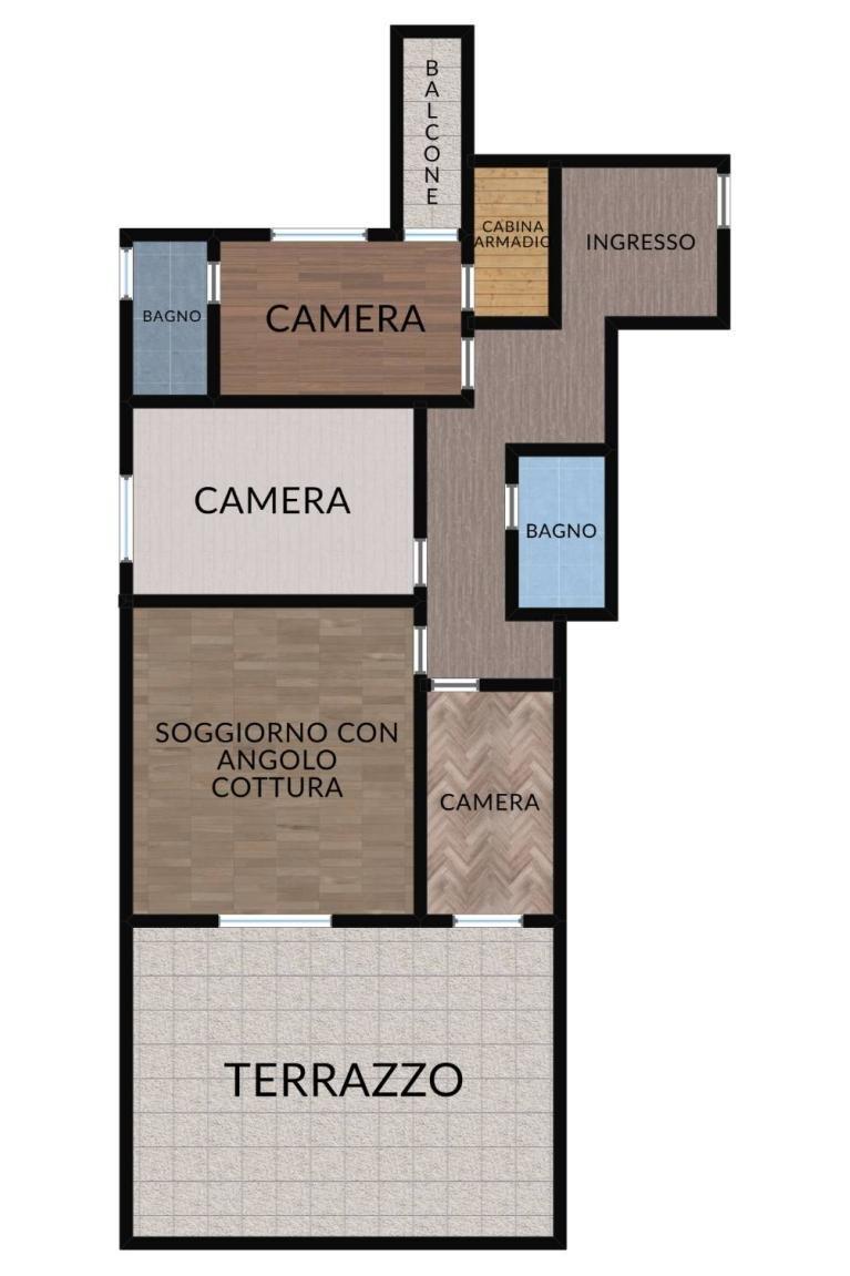 A completare la proprietà vi sono un balcone e un grande terrazzo di 50 mq, con una splendida vista libera, ideale per trascorrere momenti di relax, organizzare pranzi all'aperto o coltivare il proprio angolo verde.