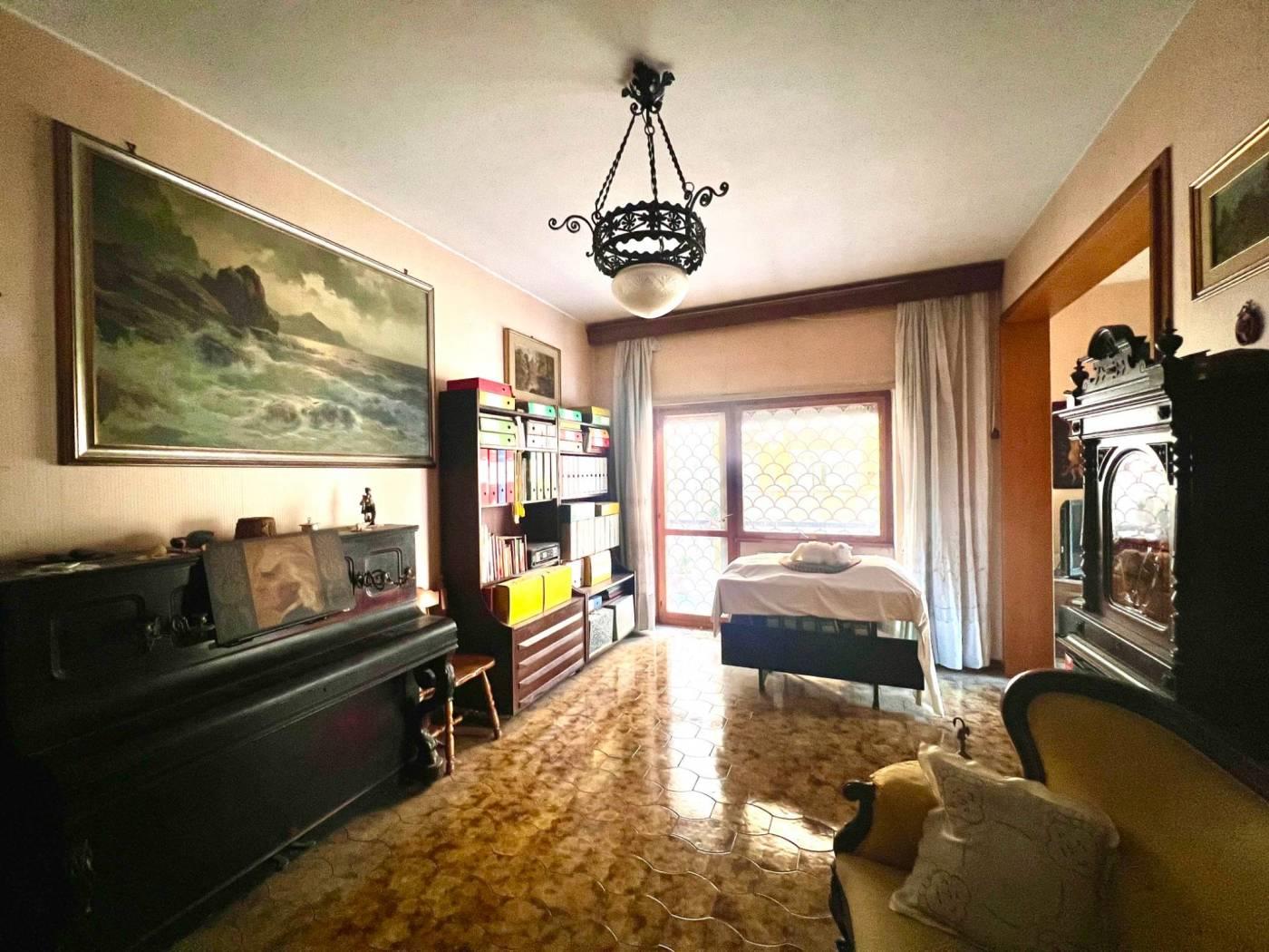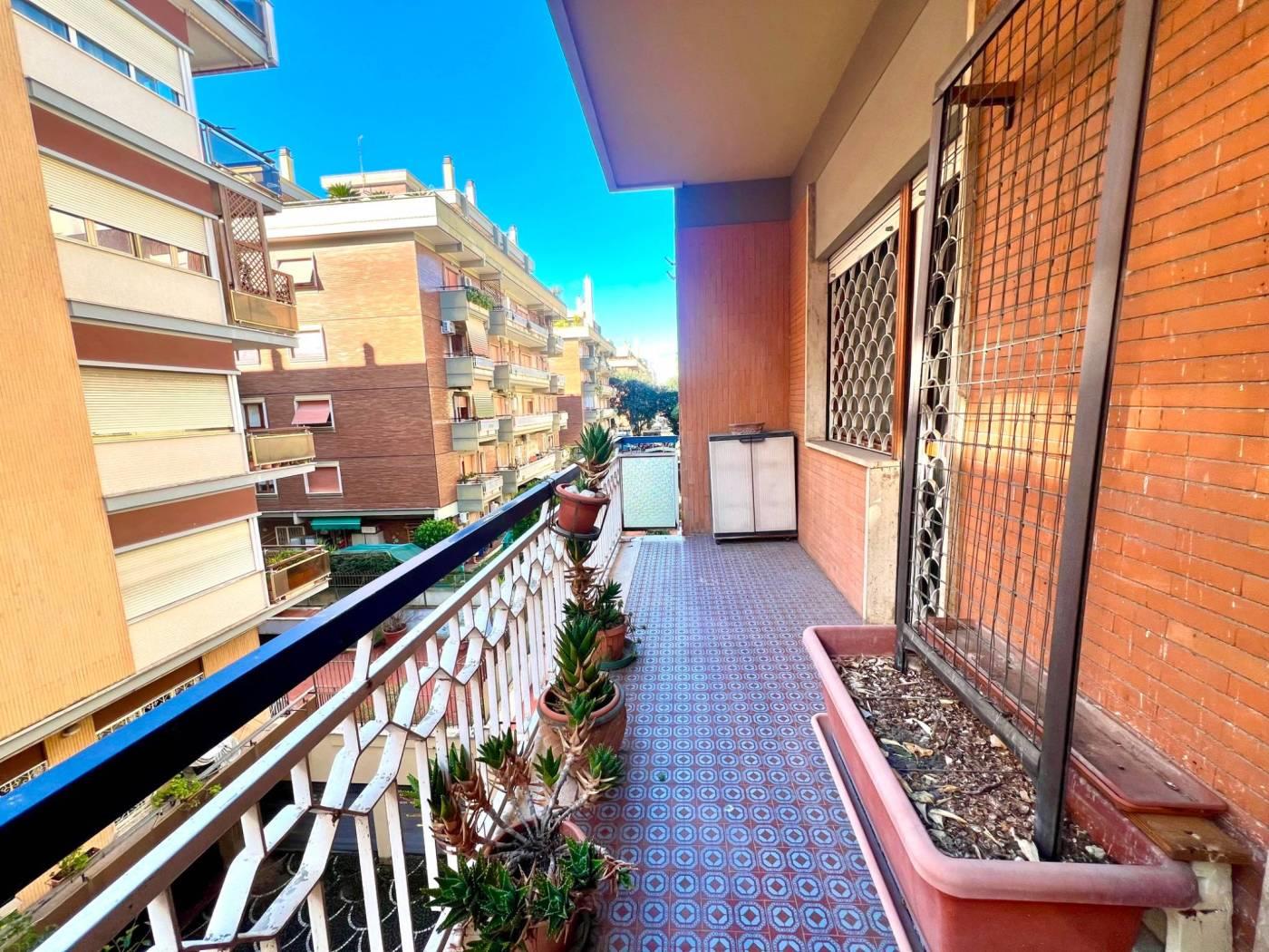 L’immobile, di circa 145 mq, si distingue per gli ambienti generosi e la funzionale distribuzione degli spazi interni. È composto da ampio ingresso, salone doppio con accesso al terrazzo, cucina abitabile anch’essa con terrazzo, due camere matrimoniali, studio, doppi servizi e due comodi armadi a muro.
