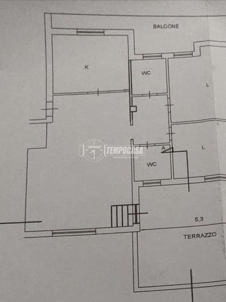 Ampio Trilocale 100MQ con ascensore completamente ristrutturato con terrazzo di 35 mq così composto : ampia zona living salone doppio con grande cucina a vista di cui il salone ha accesso al terrazzo di 35mq e la cucina esce su un ampio balcone con zona lavanderia attrezzata e a un grande ripostiglio. La zona living accede a un disimpegno che porta alla zona notte con 2 comode camere da letto uno studio che può essere ripristinato a secondo bagno all'occorrenza e bagno completo finestrato con doccia.