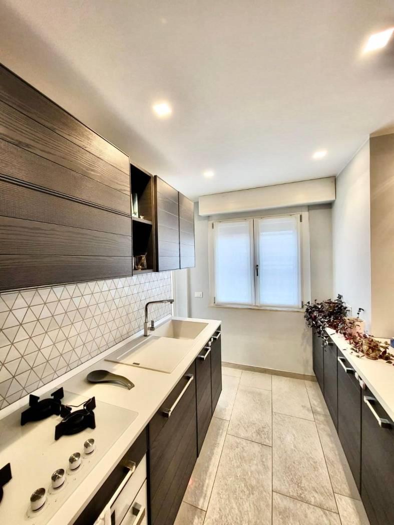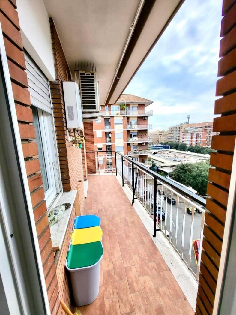 APPIO CLAUDIO vicinissimo fermata metro e Parco degli Acquedotti la Intermed consulenze immobiliari di Oscar Alvise Calao propone in vendita in via Sestio Calvino in uno stabile signorile in cortina del '65 con ascensore e videocitofono appartamento posto al sesto piano con esposizione angolare luminosissima a sud/ovest completamente e recentemente ristrutturato porta blindata climatizzato caldaia a gas per acqua sanitaria pavimenti in gres infissi in PVC 6 camere triplo vetro serrande elettriche composto da ingresso salone con cucina a vista completamente arredata su misura (Lube in legno massello) corridoio due ampie camere da letto armadio a muro doppi servizi di cui uno en suite lavanderia ripostiglio due balconi con tende da sole € 548.000 completano la proprietà quote in millesimi di immobili condominiali locati che abbassano notevolmente le spese ordinarie che ammontano ad € 40 mensili il riscaldamento è centralizzato con contabilizzatori possibilità acquisto separatamente di box pertinenziale di 20 mq soppalcabile
