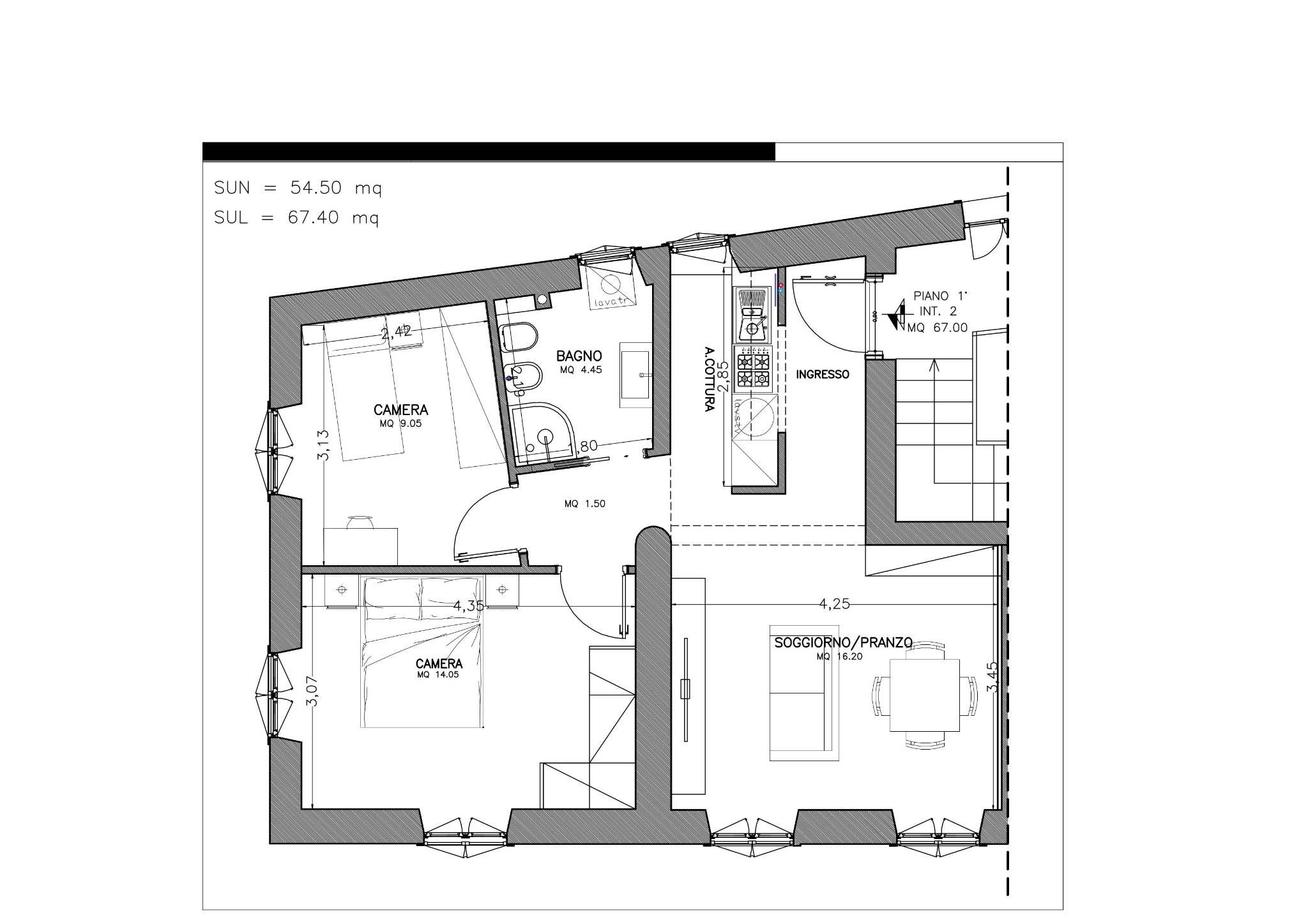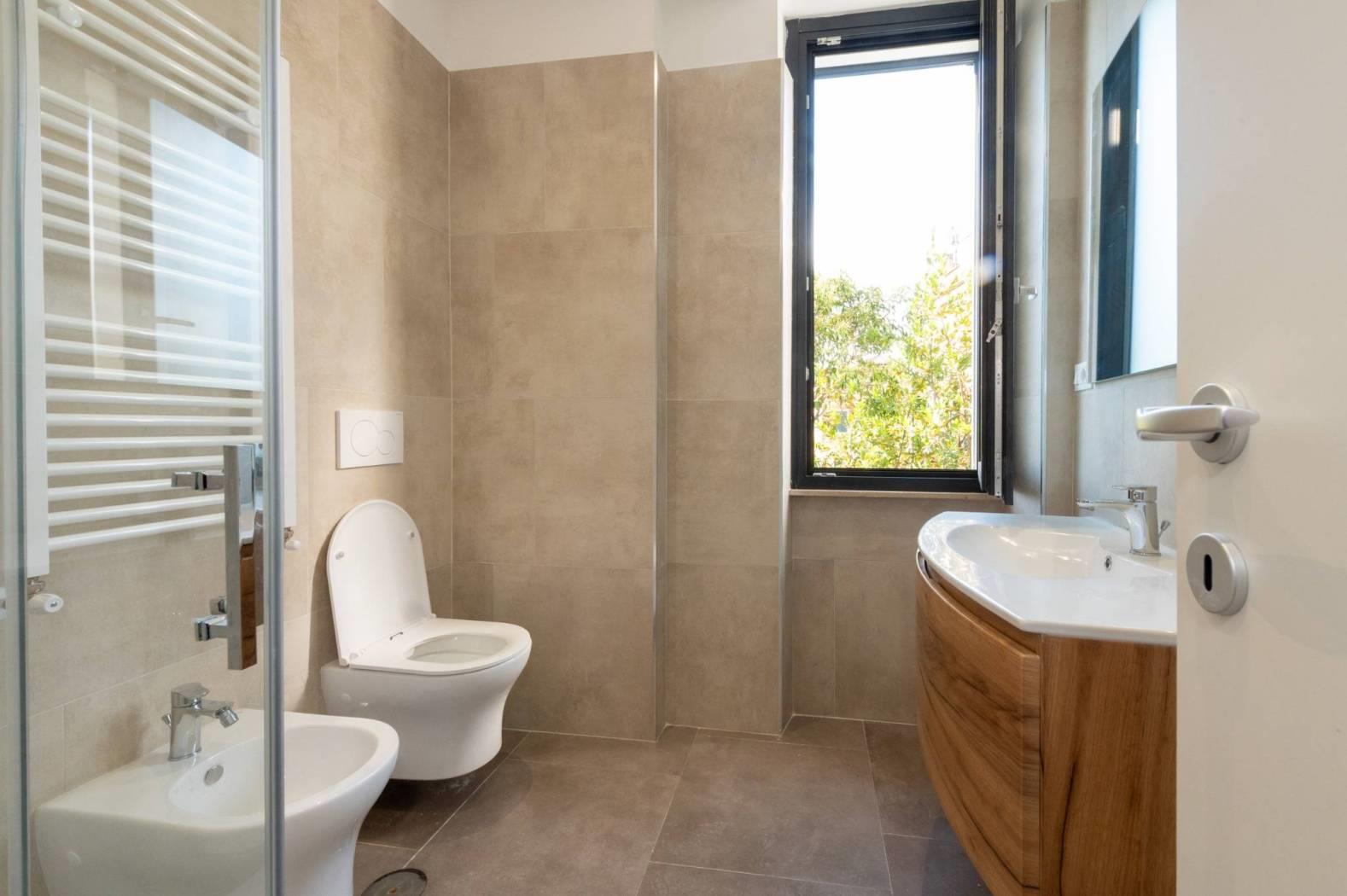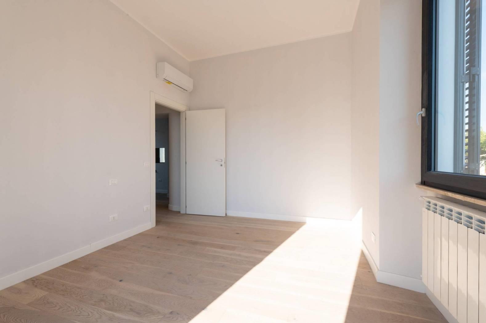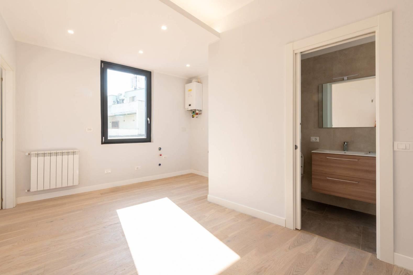 L'appartamento, mai abitato e interamente ristrutturato con materiali di alta qualità, si sviluppa su un livello e presenta apie finiture moderne. La disposizione comprende un luminoso salotto con angolo cottura, due confortevoli camere da letto e un bagno.