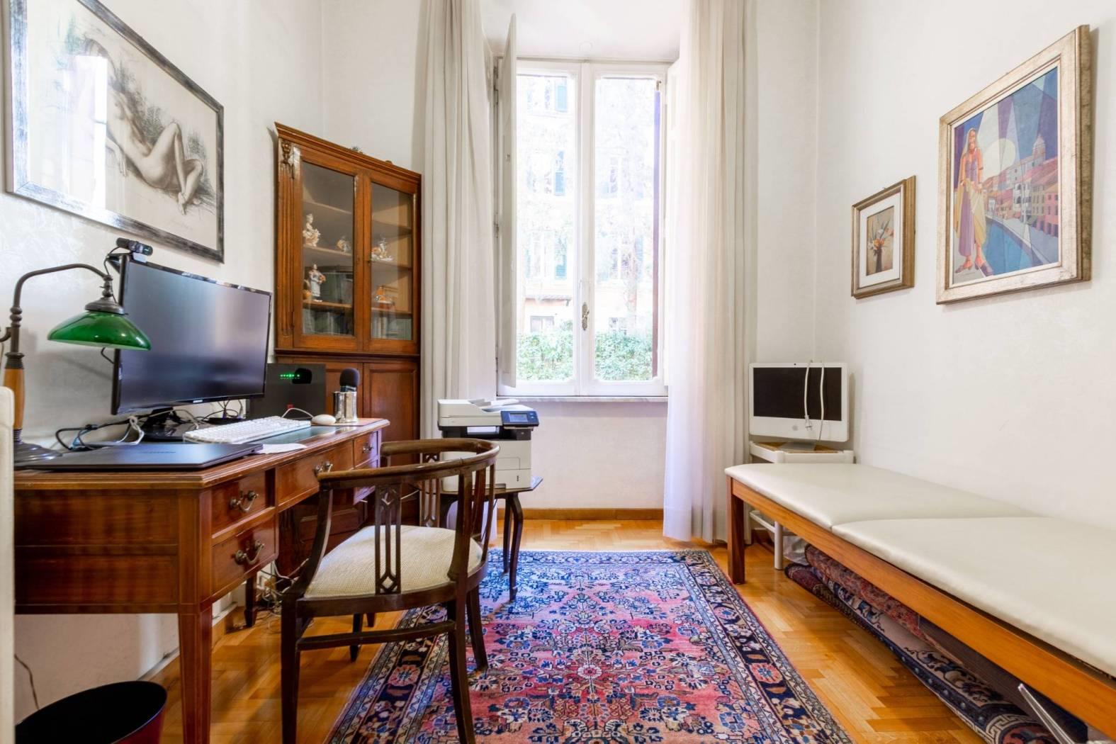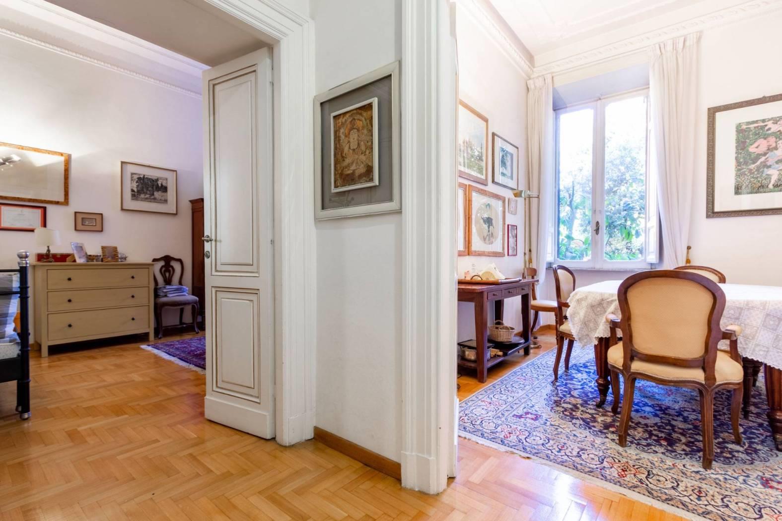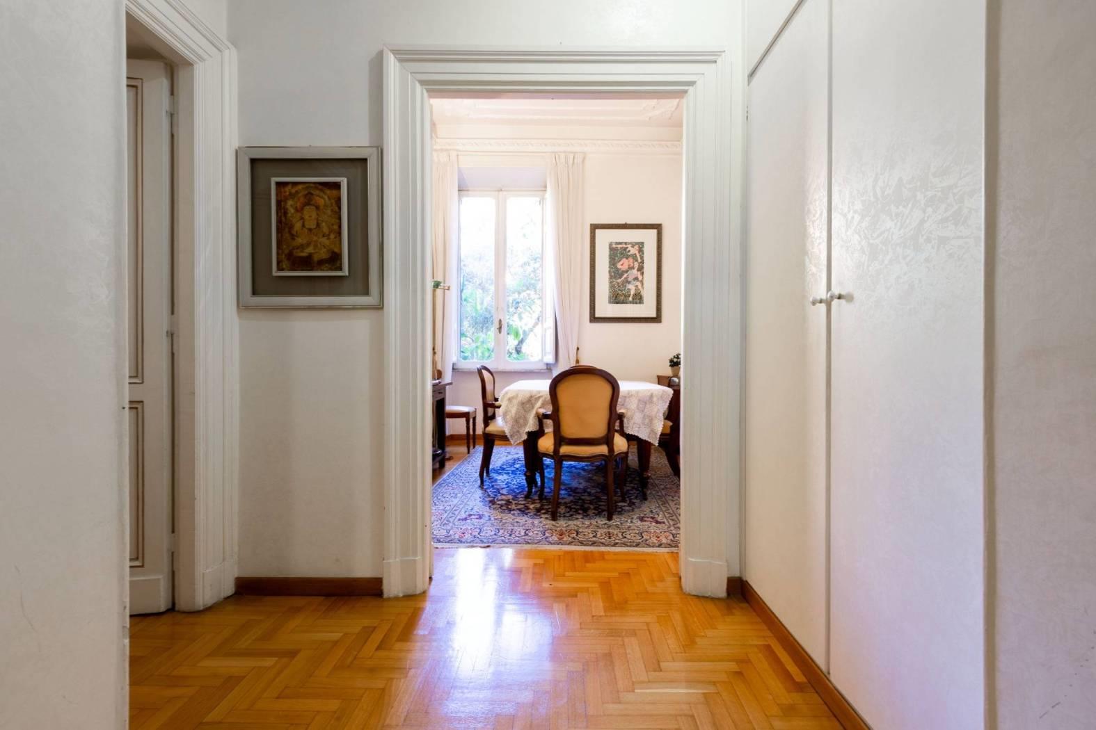 Inoltre, l'appartamento include un posto auto condominiale con uso a rotazione, un vantaggio prezioso nella vivace capitale.