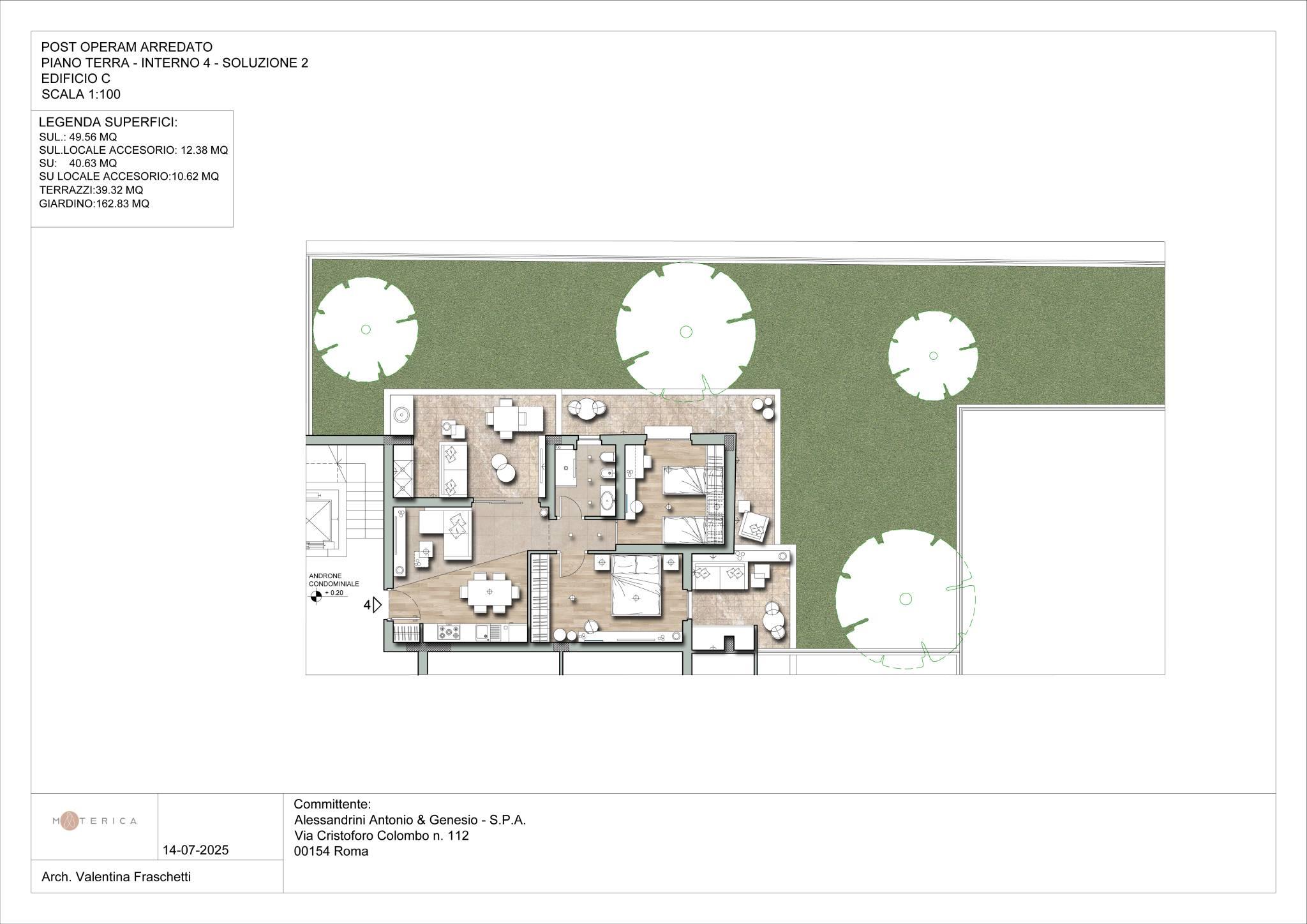 PROPONIAMO LA VENDITA DI UN ESCLUSIVO APPARTAMENTO AL PIANO TERRA CON AMPIO GIARDINO e doppia esposizione esterna. L'appartamento è composto da un soggiorno pranzo con angolo cottura con ampia parete vetrata sull'antistante loggia,un disimpegno, una camera matrimoniale , una camera singola ed un ampio bagno finestrato con doccia.