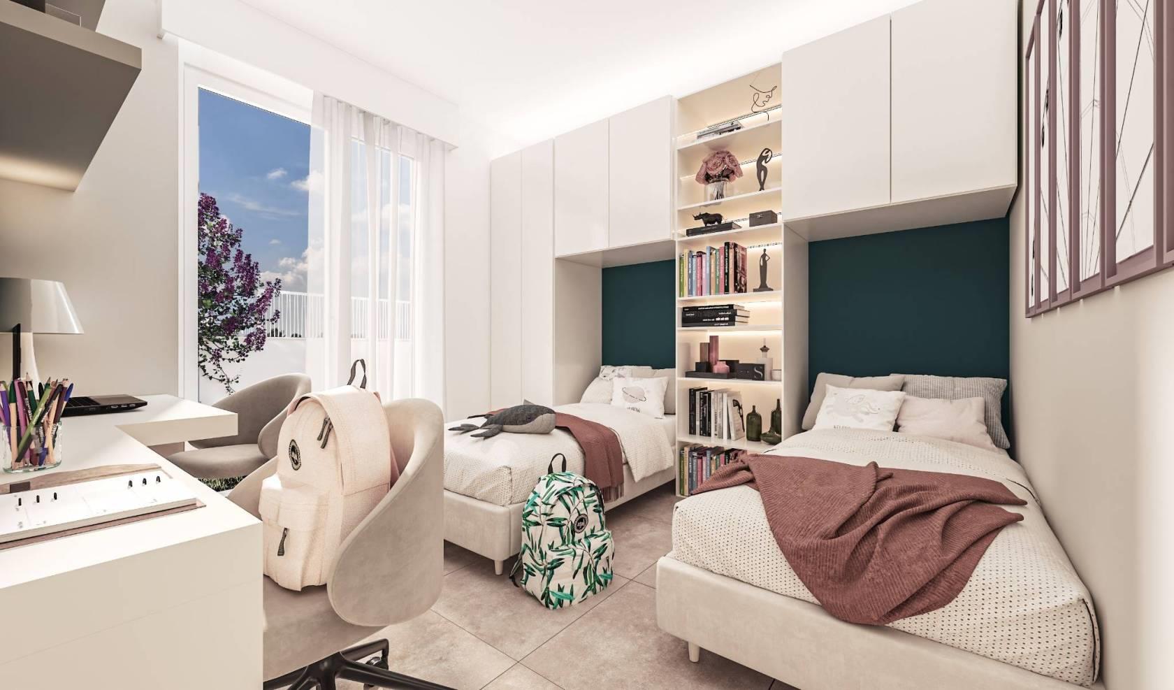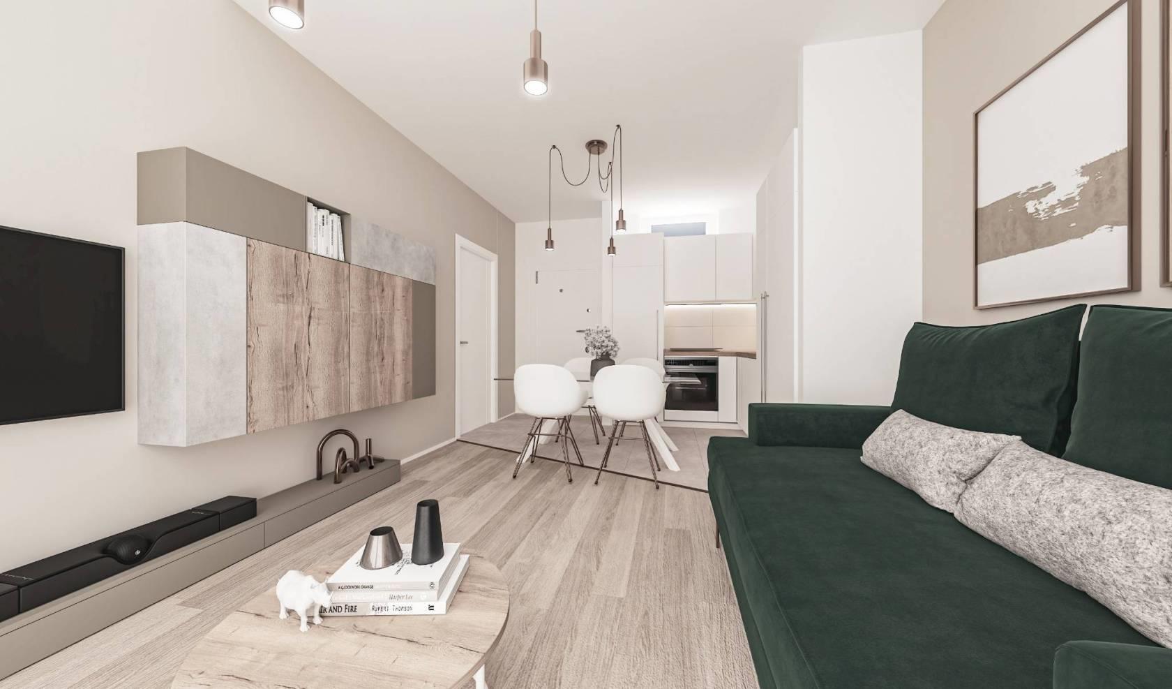 Gli interni, progettati dallo studio Materica, offrono ambienti eleganti e funzionali: zone giorno vivibili con angolo cottura o cucina separata, ingressi e disimpegni arredabili, bagni finestrati con docce spaziose. Inizio costruzione entro marzo 2026, prime consegne in 18 mesi. Mutuo fino al 90% con possibilità di SAL personalizzati e pagamenti mensili dell’acconto.