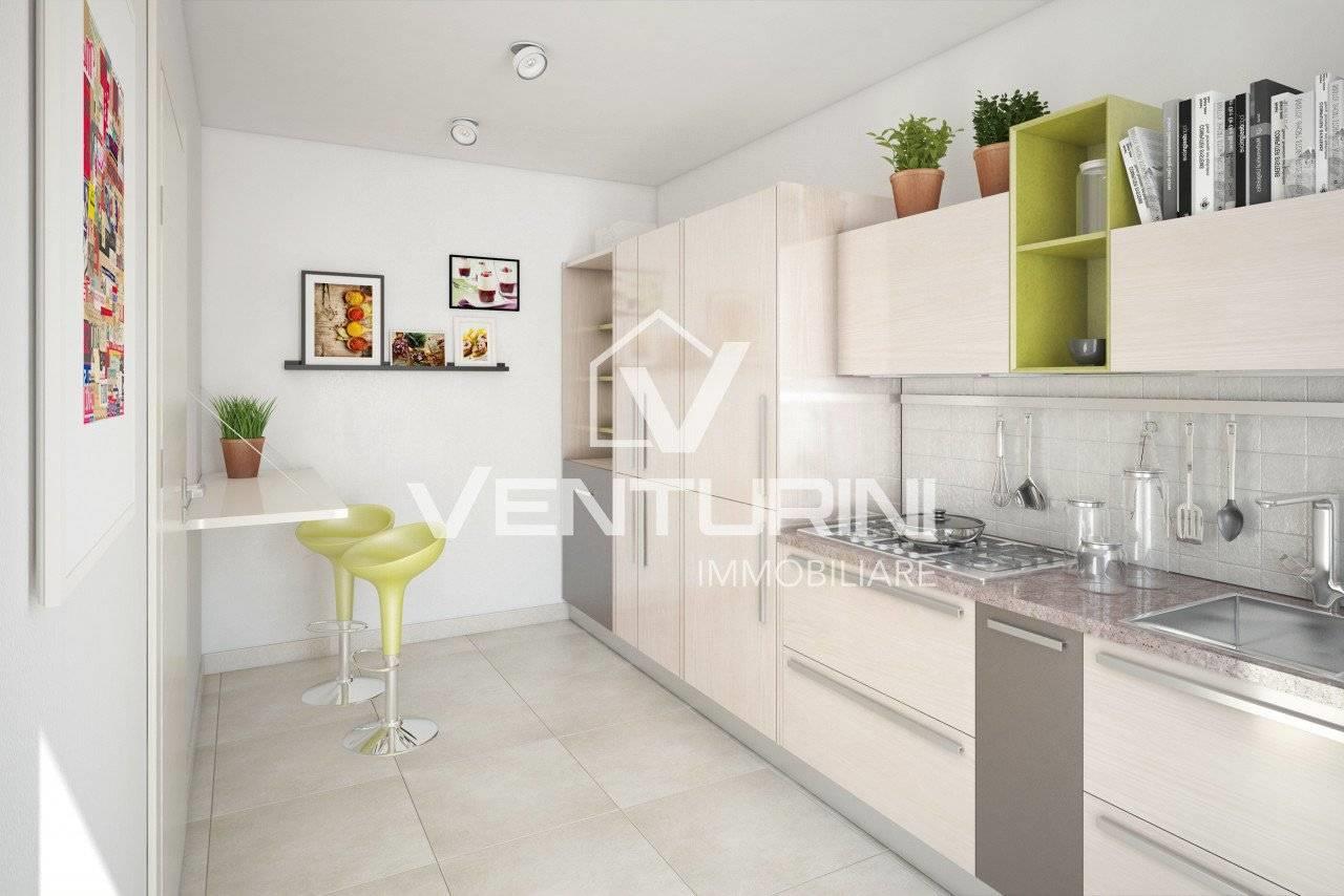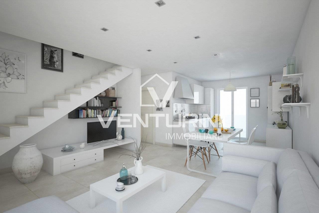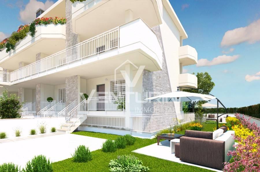 Venturini Immobiliare è lieta di presentare la vendita di esclusivi appartamenti con giardino nella tranquilla e verdeggiante zona di Valle Muricana. Questi splendidi immobili, con una superficie di circa 97 mq, offrono spazi ben organizzati che comprendono un luminoso soggiorno adiacente all'angolo cottura, due camere da letto spaziose e doppi servizi moderni.
