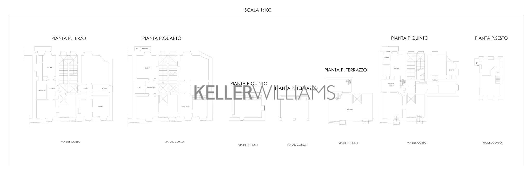 Gli immobili sono distribuiti su più piani e la loro distribuzione è la seguente: al terzo piano troviamo due unità distinte di circa 77 mq e circa 86 mq. Il quarto piano ospita tre unità che, complessivamente, raggiungono circa 190 mq, arricchite da circa 24 mq di terrazzi. Il quinto piano riserva le gemme più spettacolari: una prima unità di circa 100 mq vanta una magnifica terrazza di circa 40 mq con una vista mozzafiato su piazza del Popolo e via del Corso. A fianco, una seconda unità, sempre di circa 100 mq, offre una suggestiva vista panoramica sul centro storico.
