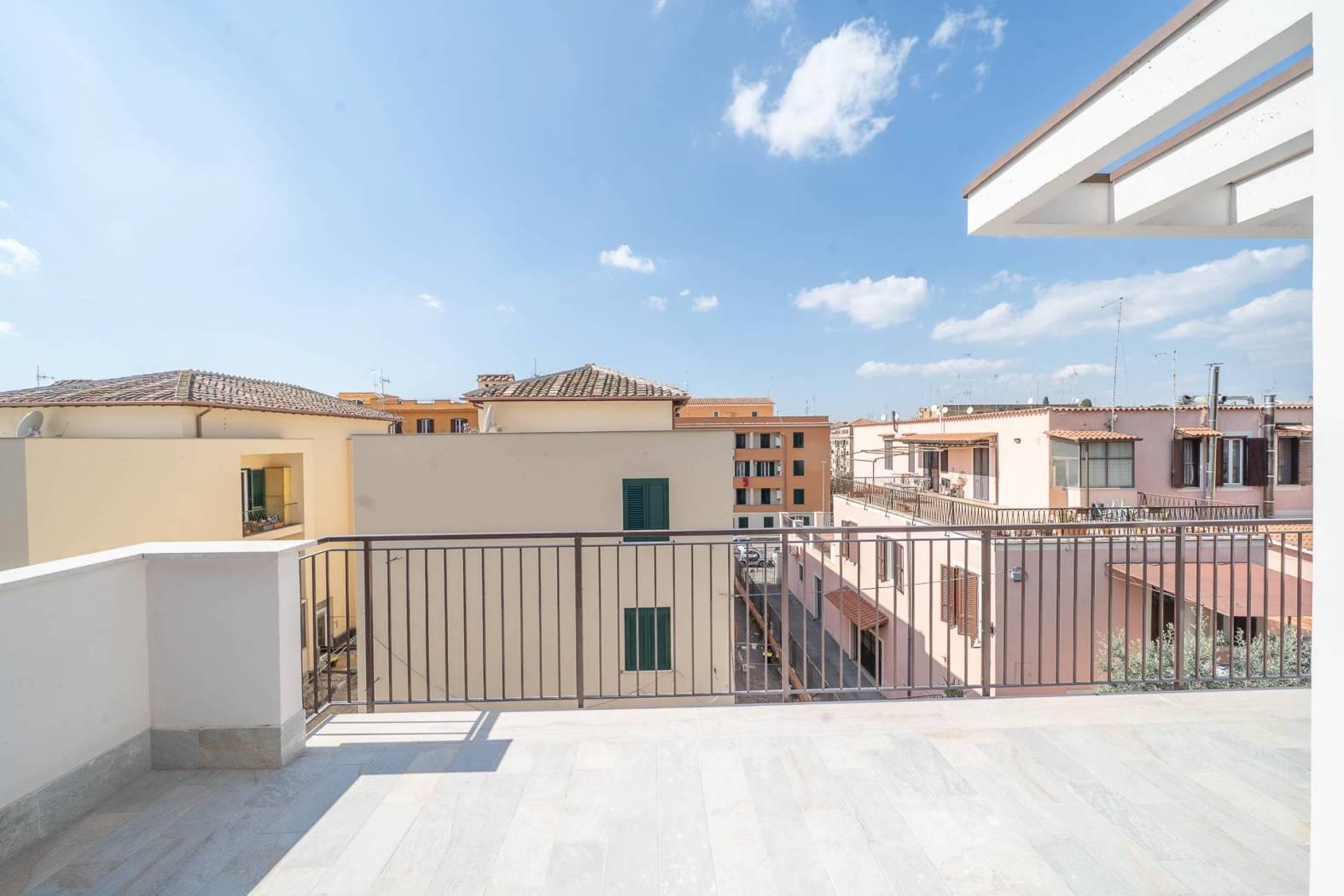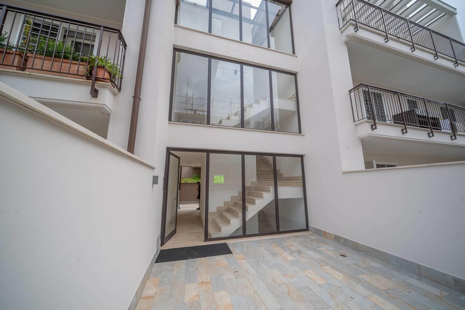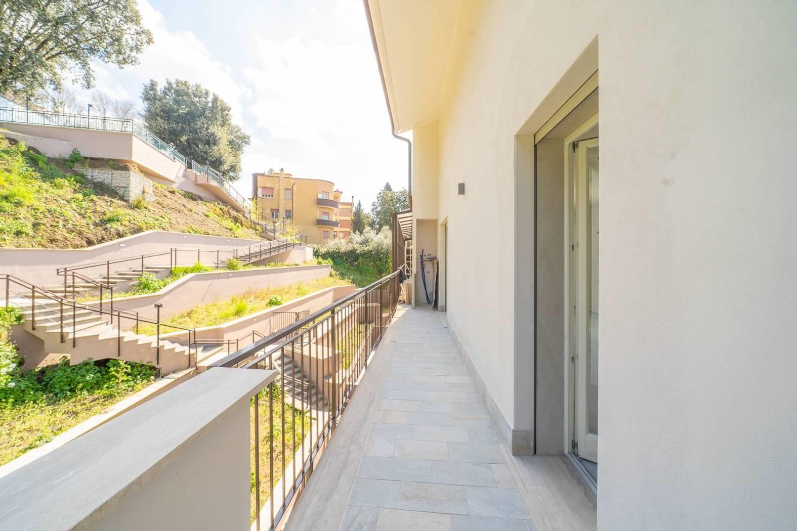 Rif:0767 - Nel pieno centro di Frascati, in prossimità di tutti i servizi, rara opportunità di acquisto immobili di ultima generazione in classe A all'interno di un elegante complesso residenziale suddiviso su tre piani in stile moderno e con caratteristiche edilizie ed architettoniche di ultima generazione. Gli appartamenti in oggetto avranno accesso pedonale direttamente su Via Vittorio Veneto e accesso carrabile e pedonale dall'attigua via Don Bosco. L'accesso su Via Vittorio Veneto è impreziosito dalla presenza di ascensore e rampa scale che permettono di arrivare comodamente fino al piano terra della pallazzina in questione. La Immobiliare Simonetti, in collabotazione con Carlini Immobiliare, è lieta di proporre un raffinato appartamento bilivello posto al piano secondo e terzo impreziosito da tripla esposizione. Internamente troveremo al piano secondo un ampio salone con cucina a vita, una camera da letto matrimoniale ed un bagno. Dalla zona giorno si esce sui due terrazzi abitabili. Tramite scala interna si accede al piano superiore dove troviamo due ulteriori stanze e un bagno finestrato. Possibilità di personalizzazione degli spazi interni e delle rifiniture in base alle proprie esigenze e gusti. Ogni appartamento sarà caratterizzato da riscaldamento a pavimento, caldaia a condensazione, pannello fotovoltaico personale da 1 kw, pannello solare per la produzione acqua calda. Saranno inoltre presenti predisposizione impianto di climatizzazione ed impianto di allarme. Tutte le pareti perimetrali sono realizzate con Poroton termico da 40 cm al fine di garantire la massima coibentazione termica.