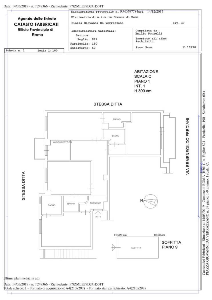 E’ presente anche una soffitta di pertinenza esclusiva al nono piano dello stabile.