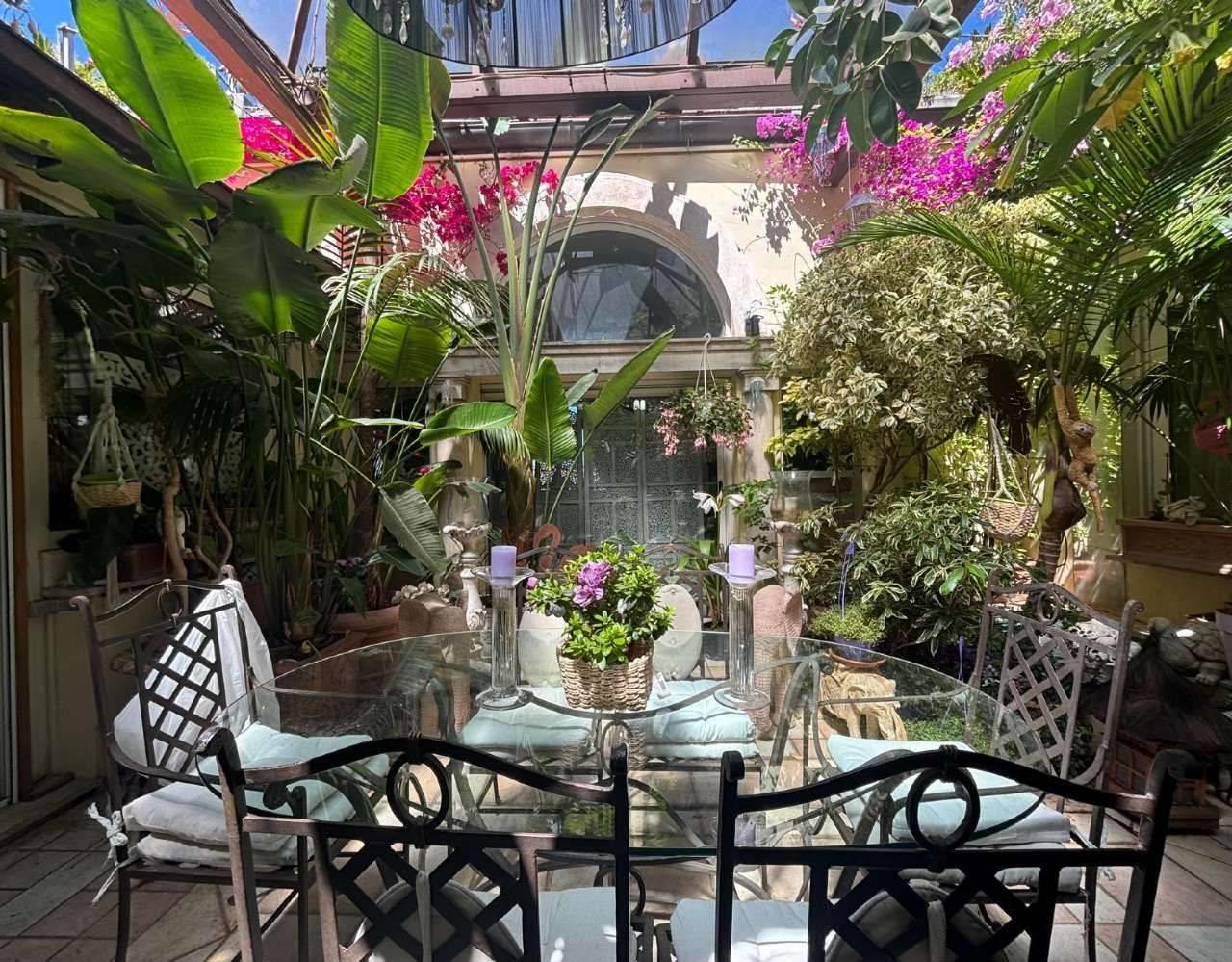 ci sono 2 caratteristiche camere da letto delle quali una sul soppalco , una cucina piccola ma funzionale , un elegante bagno con vasca e finestre , un incantevole patio fiorito per apprezzare nei momenti di relax un buon bicchiere di vino all’aria aperta .