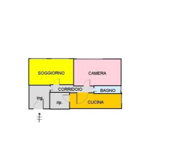 L'immobile è composto da soggiorno con angolo cottura, disimpegno, bagno, camera e balcone, per complessivi mq. 54.