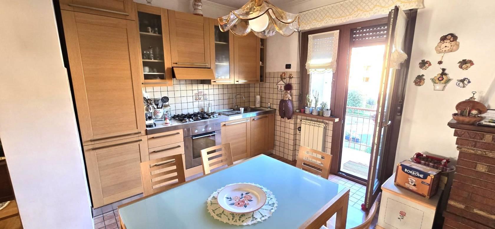 L'immobile gode delle seguenti caratteristiche: infissi in pvc effetto legno doppio vetro taglio termico, tapparelle in pvc, pavimentazione in parquet in tutta la casa tranne nei bagni dove troviamo un gress porcellanato, aria condizionata caldo/freddo nella zona giorno, camino, porta blindata, caldaia per la produzione di acqua sanitaria e riscaldamento e tende da sole.