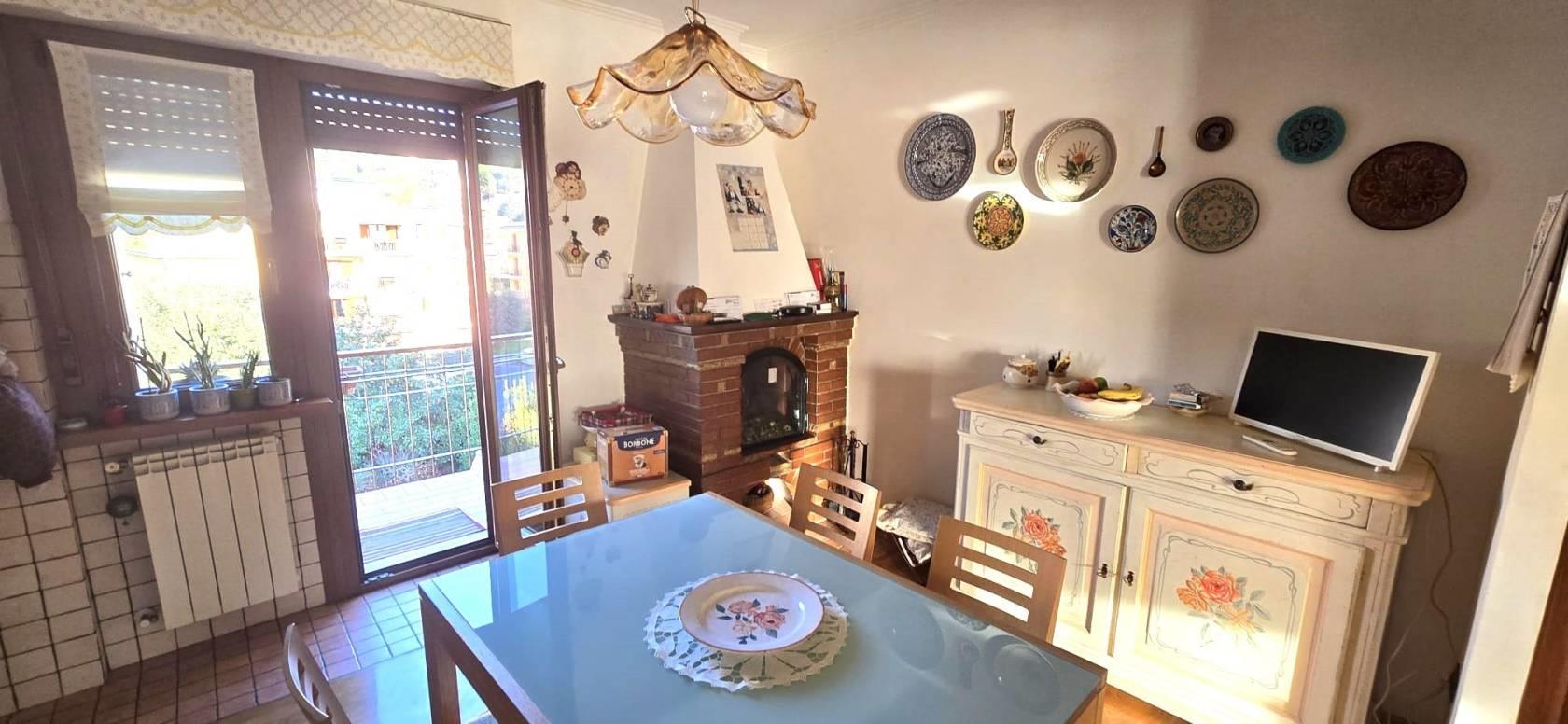 L'appartamento è così composto: ingresso, salone con uscita sul primo balcone di 5mq, cucina abitabile a vista con camino ed uscita sul secondo balcone di 3mq con vista panoramica sulla città di Palestrina, disimpegno, camera da letto matrimoniale, due camerette, un primo bagno finestrato con doccia, un secondo bagno finestrato con vasca e dei soppalchi ad uso ripostiglio.