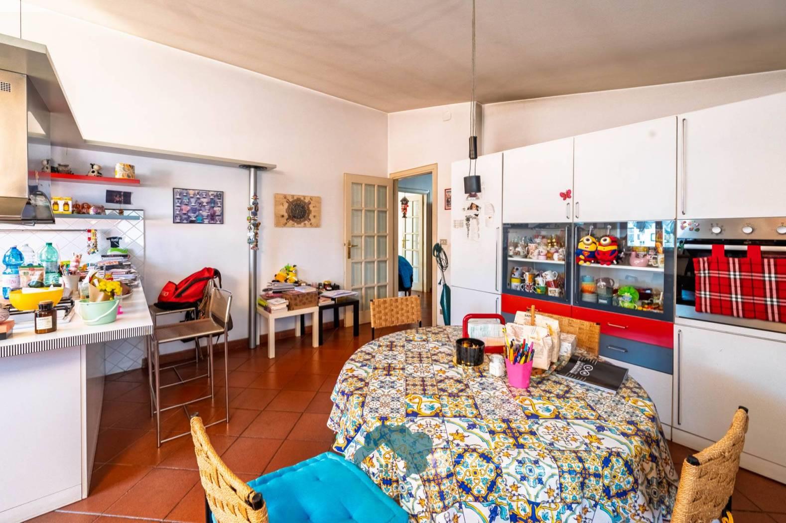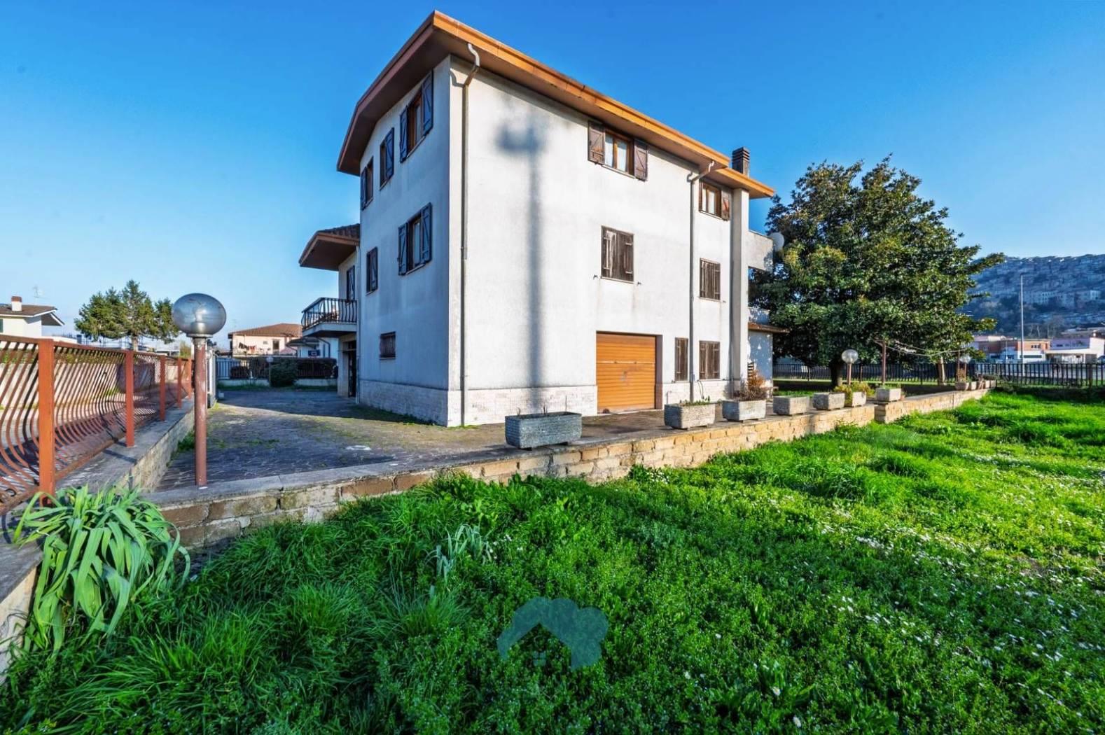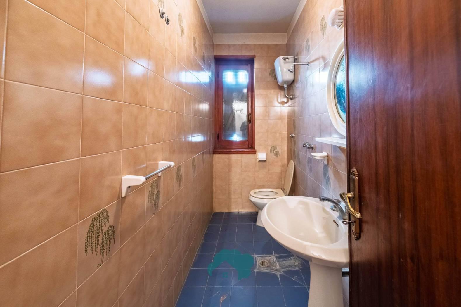 Completano la proprietà un garage di circa 75 mq e una cantina di circa 70 mq, situati al piano terra, oltre a un giardino pianeggiante di circa 800 mq, in parte pavimentato e in parte adibito ad area verde.