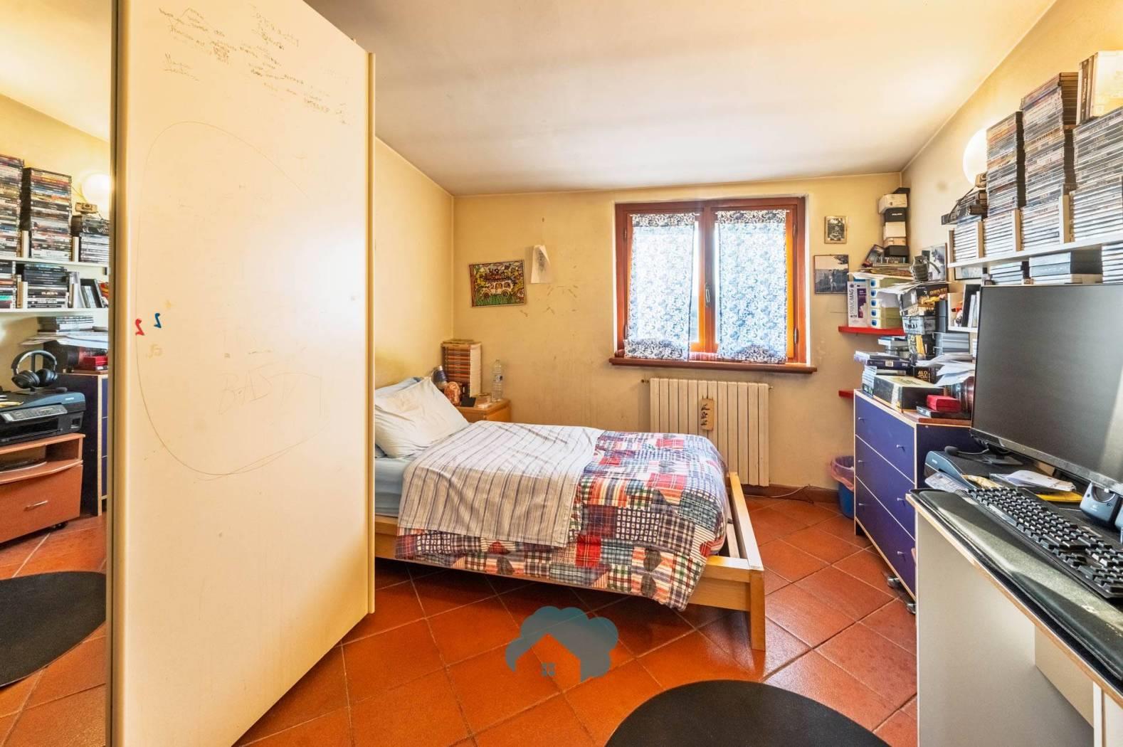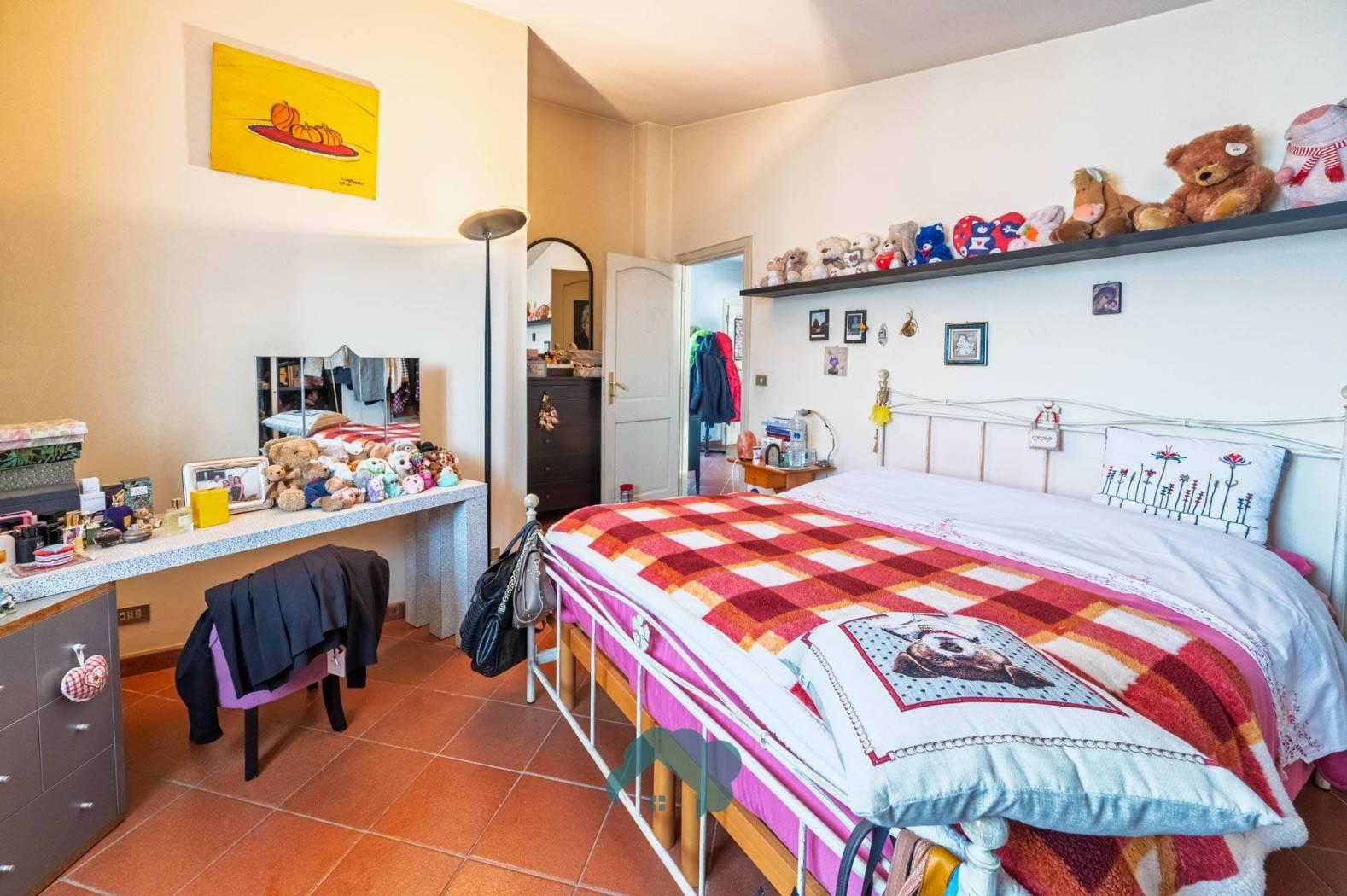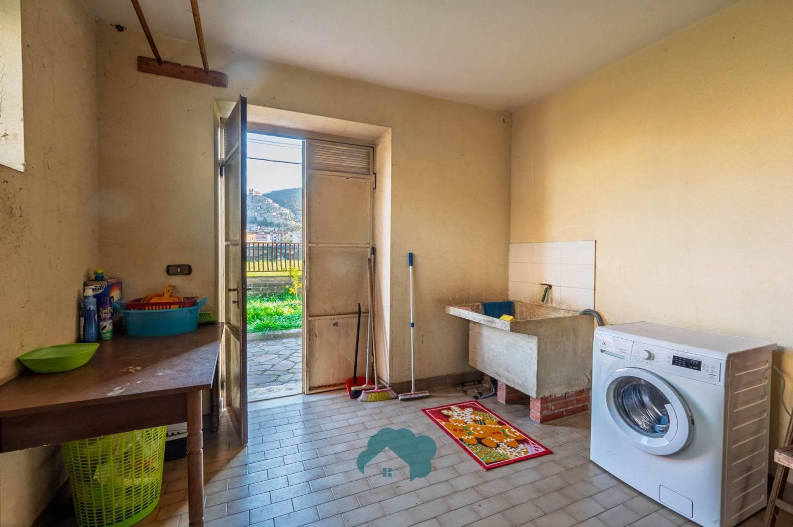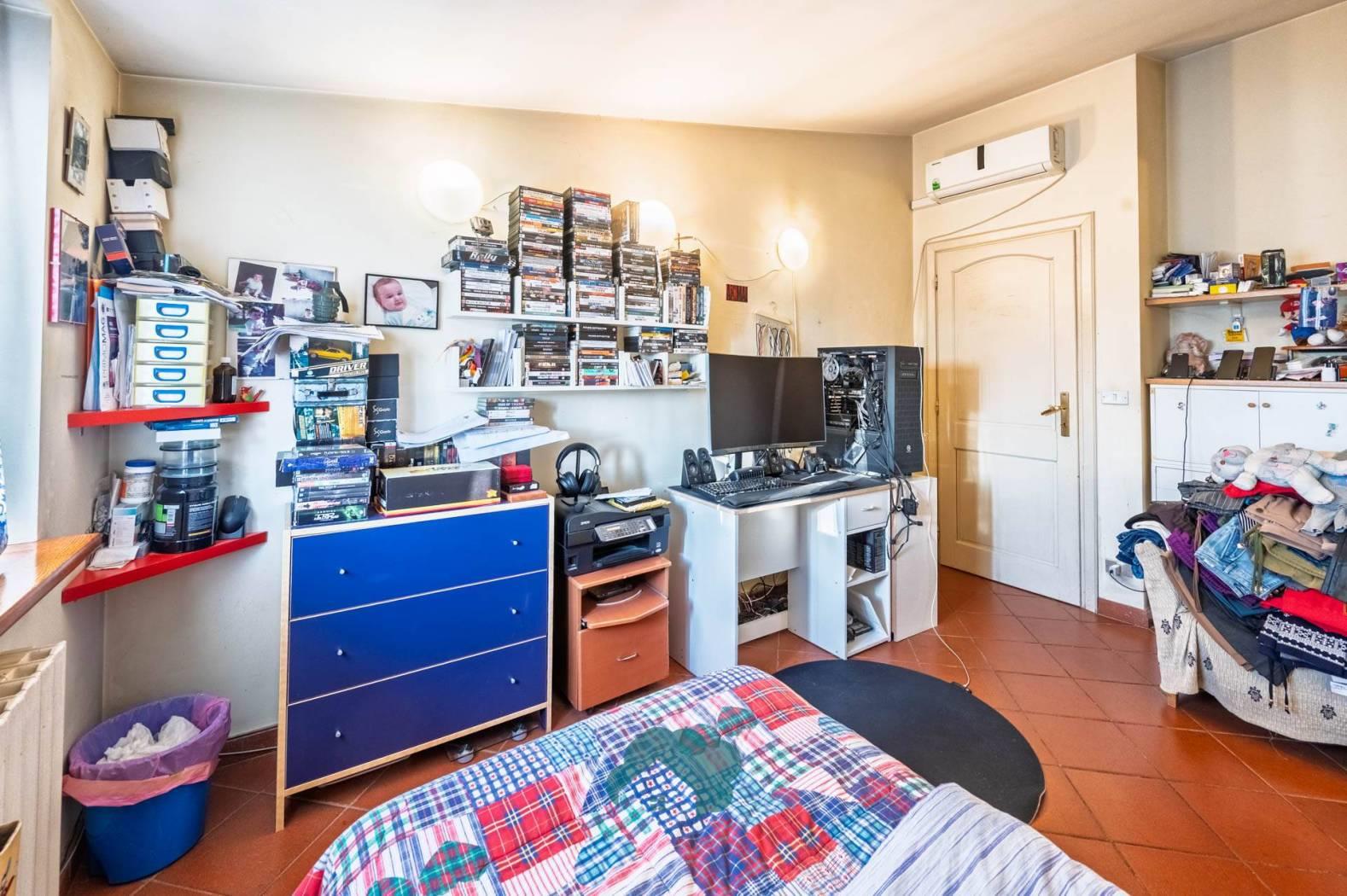 Completano la proprietà un garage di circa 75 mq e una cantina di circa 70 mq, situati al piano terra, oltre a un giardino pianeggiante di circa 800 mq, in parte pavimentato e in parte adibito ad area verde.