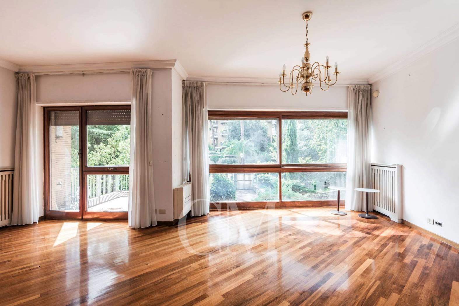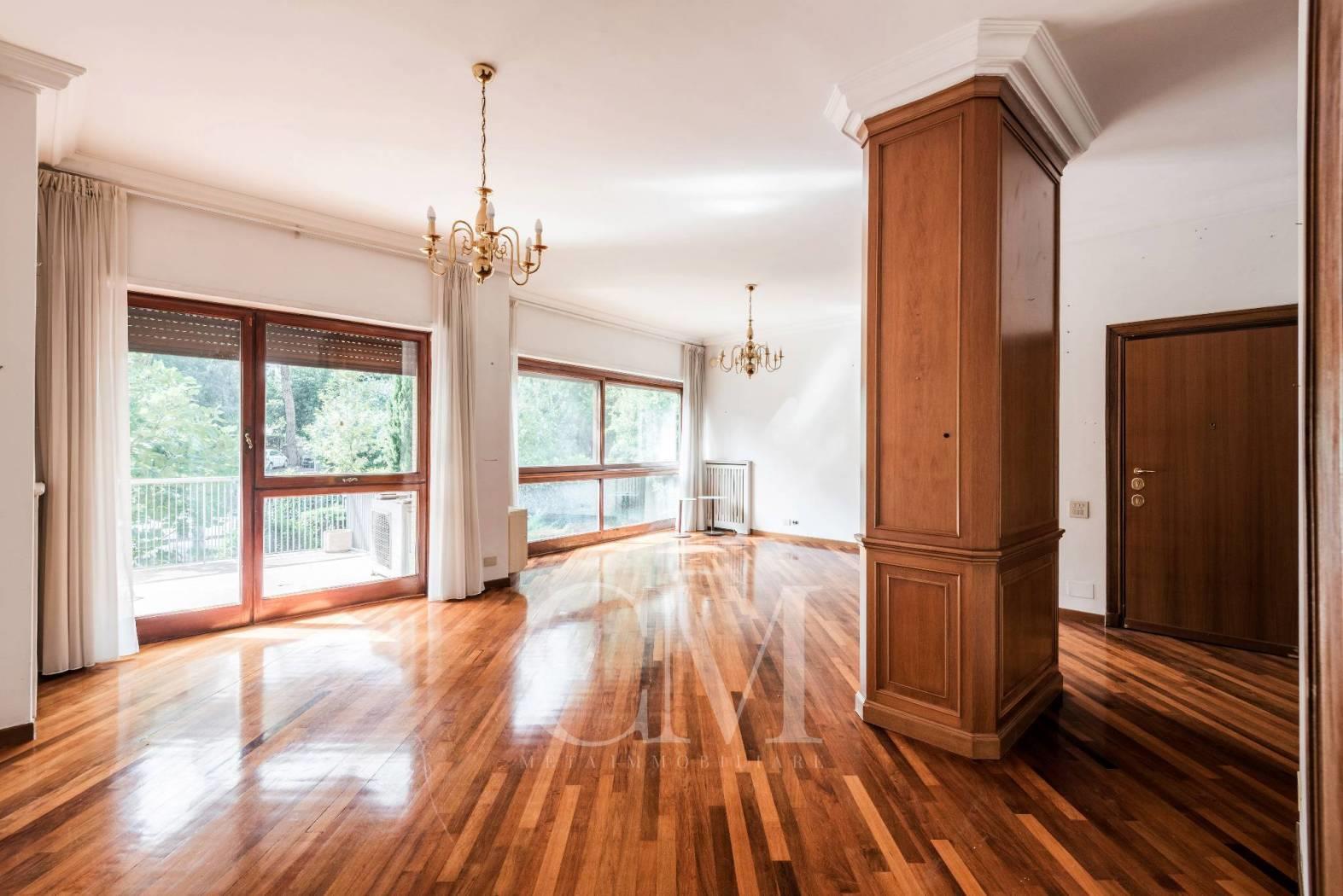 In via Cassia, all'altezza di via Castellina in Chianti, proponiamo un prestigioso appartamento di 200 mq che incarna l'eleganza dell'architettura anni '60.