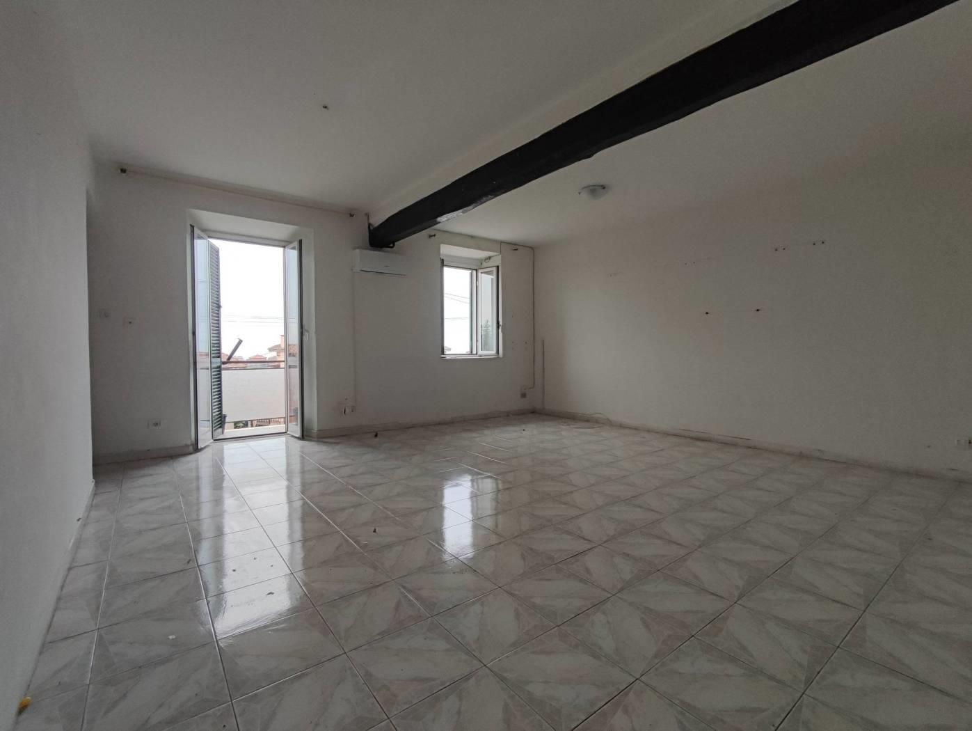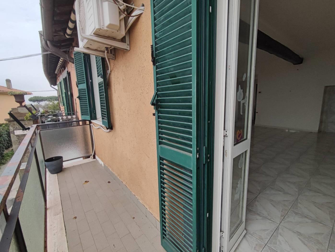 L'immobile è composto da ingresso, salone doppio con balcone, cucina abitabile, camera matrimoniale, cameretta e bagno con doccia finestrato, ripostiglio ad uso lavanderia che accede ad un terrazzino panoramico al piano superiore.