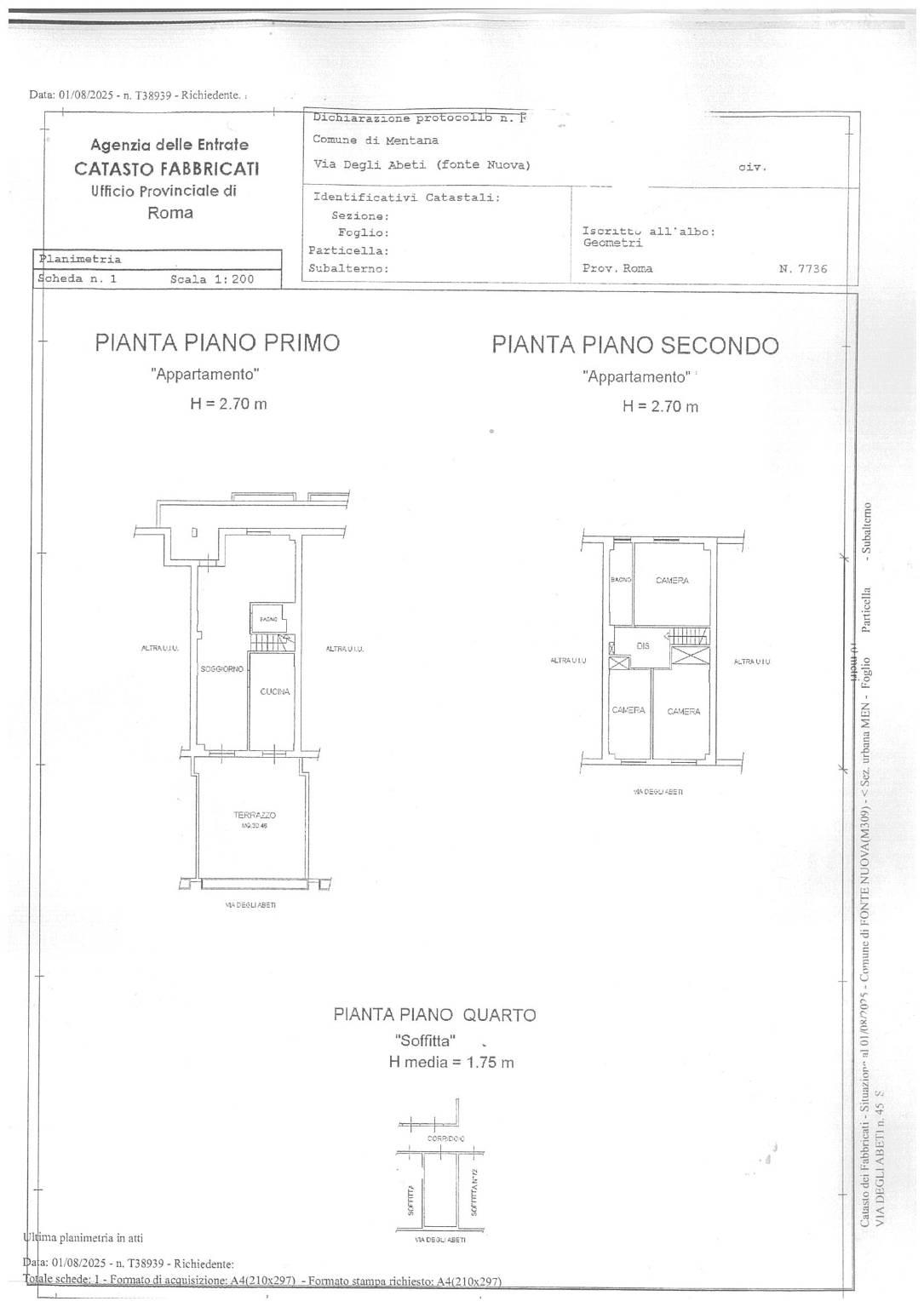 Al suo interno troviamo al piano primo un ampio e luminoso soggiorno, una cucina abitabile i quali si affacciano su di un ampio terrazzo per godersi delle meravigliose serate in tranquillità ed un servizio, al piano secondo, non mansardato troviamo un comodo disimpegno con armadio a muro, due ampie camere da letto con armadi a muro, una cameretta ed un servizio con doccia recentemente ristrutturato e finestrato.