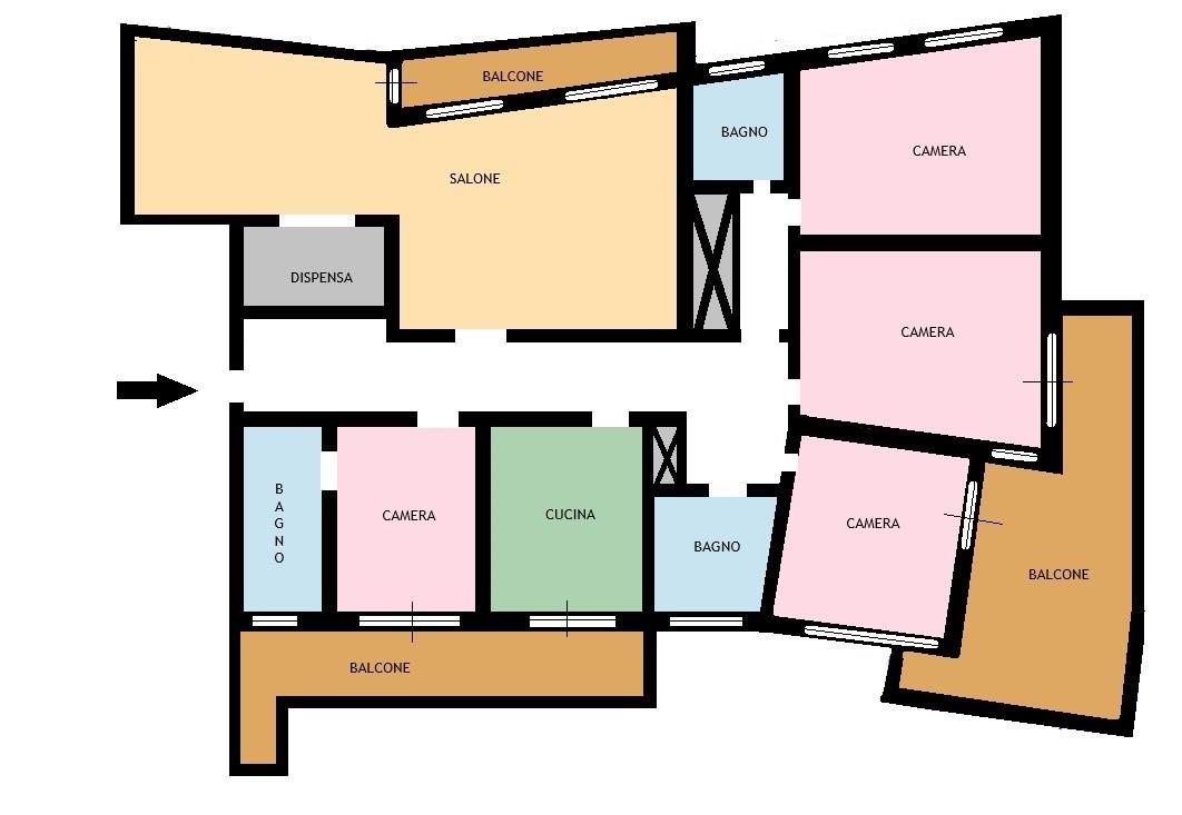 Piano: Primo, Ingresso ampio e accogliente, Salone doppio con accesso ad una comoda dispensa, Cucina abitabile, funzionale e spaziosa, Quattro camere da letto, tutte ben illuminate e silenziose, Tre bagni completi, Tre spazi esterni, tra balconi e terrazzino vivibile per pranzi all'aperto e momenti di relax, Completano la proprietà due pertinenze di grande valore: Cantina privata Posto auto coperto a rotazione all’interno dell’area condominiale