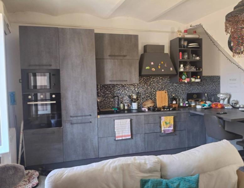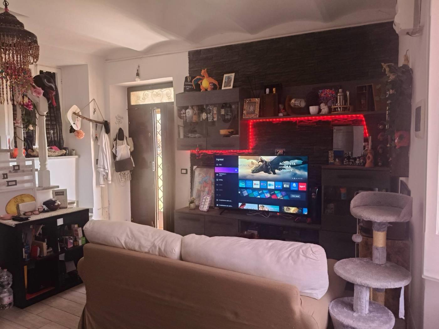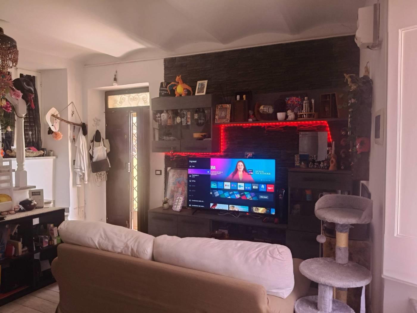Al piano terra, l'ingresso dal balcone conduce a un luminoso soggiorno con angolo cottura, ideale per momenti di convivialità. Al primo piano, due camere da letto con affaccio sul balcone regalano una vista panoramica mozzafiato, mentre la cameretta è perfetta per i più piccoli. Completano l'immobile due bagni, uno dei quali con vasca e lavatrice, per un comfort quotidiano.