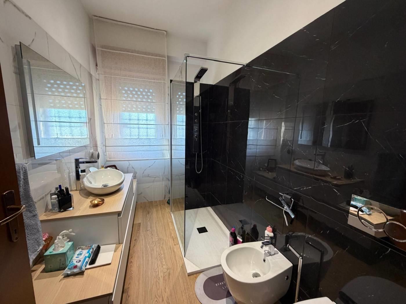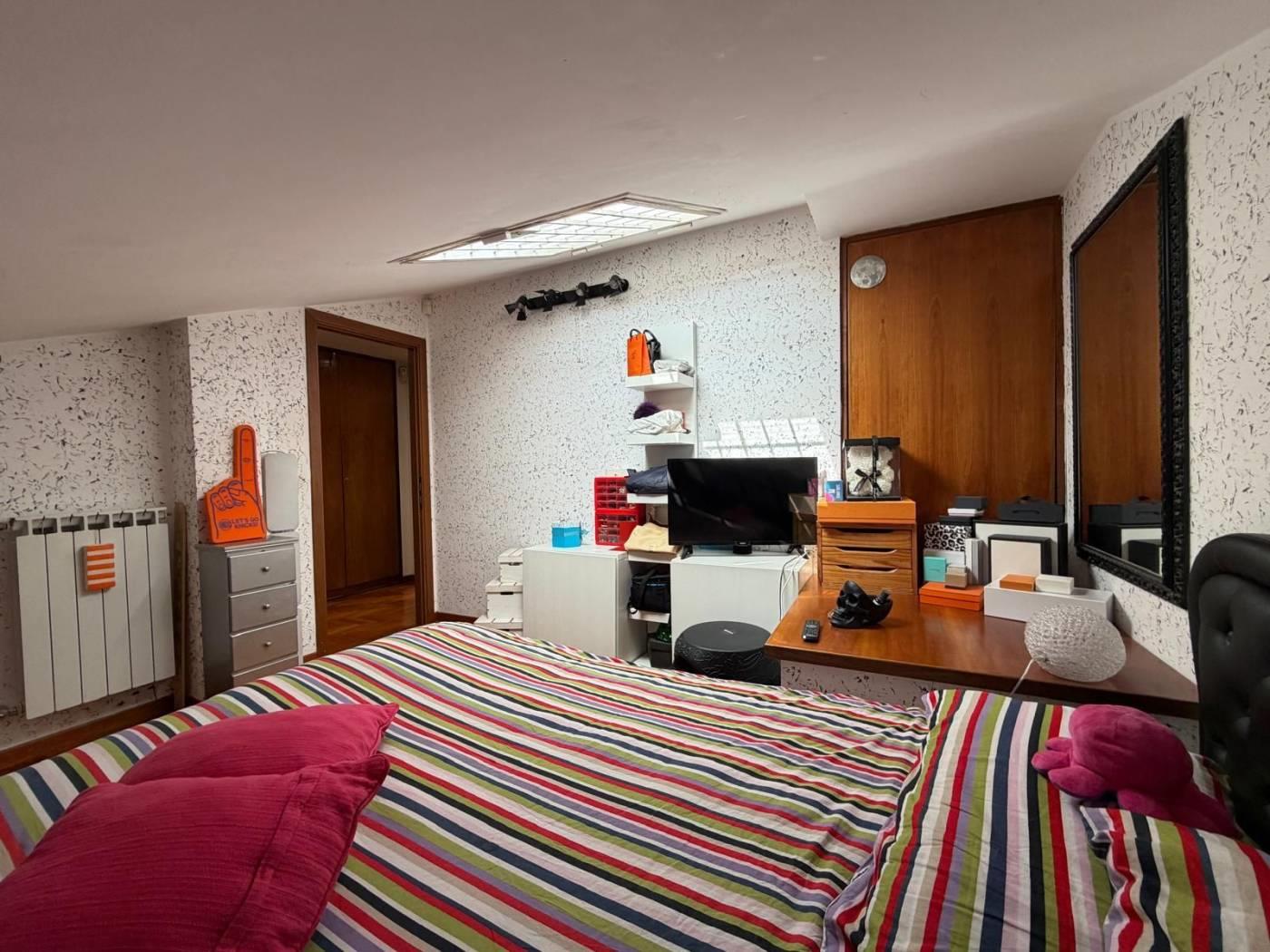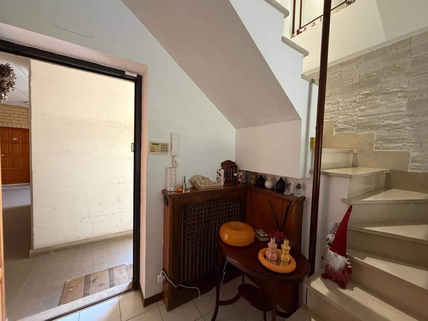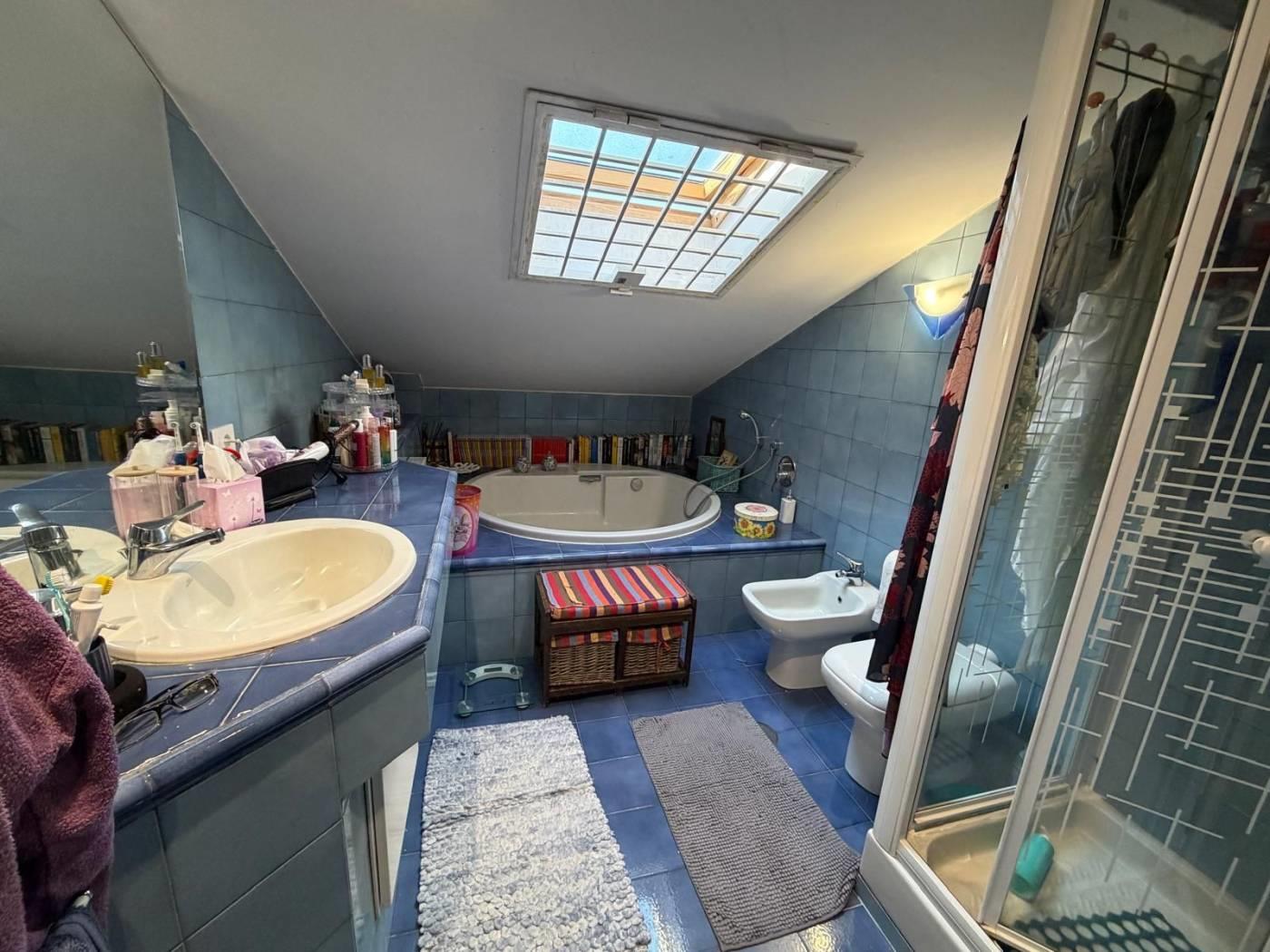 L'appartamento è composto da salone, cucina semi abitabile, camera da letto matrimoniale, bagno completamente ristrutturato in chiave moderna con finestra, balcone perimetrale, al piano sovrastante (completamente pavimentato in parquet) si trovano due camere mansardate ed un bagno con doccia e vasca idromassaggio.