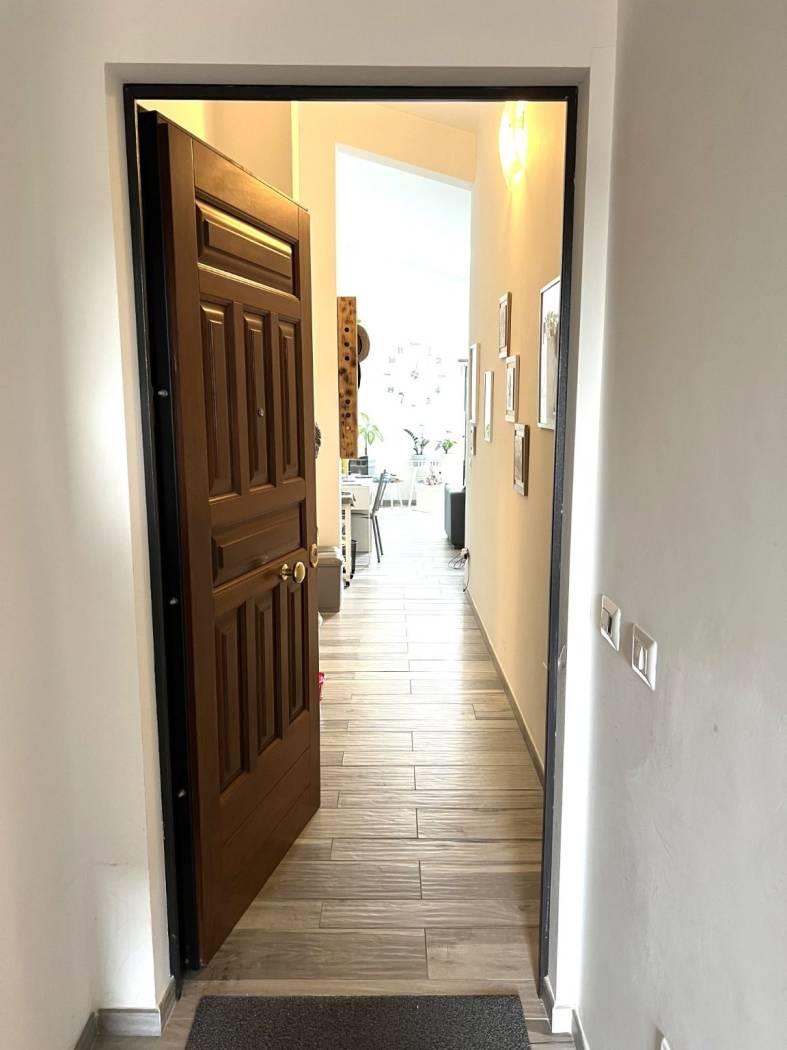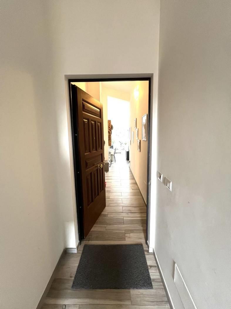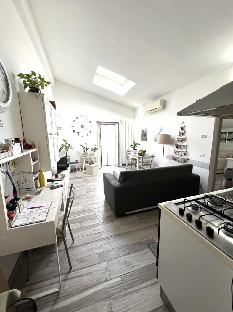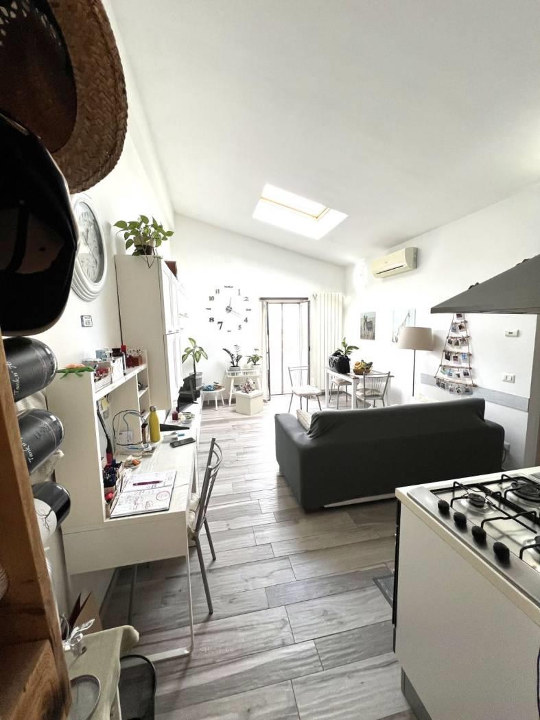 Posto al piano secondo ed ultimo di un piccolo residence, è composto da: ingresso, soggiorno con cucina arredata completa di elettrodomestici con affaccio su balconcino panoramico oltre a finestra a soffitto, disimpegno, bagno finestrato e camera con affaccio sempre su piccolo balcone panoramico oltre a velux a soffitto. Completano la proprietà due posti auto al piano terra. Ottime rifiniture: finestre in alluminio bianco con doppio vetro, persiane in ferro bianche, velux, videocitofono, termoautonomo, aria condizionata, gres porcellanato di prima scelta effetto legno e portone blindato.