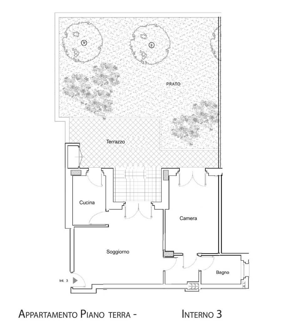 Splendido appartamento di circa 60 mq interni, al piano terra, personalizzabile internamente, composto da soggiorno, camera da letto matrimoniale, cucina, bagno finestrato, portico e terrazza di circa 25 mq, giardino privato di circa 65 mq, cantina e posto auto in garage compresi.