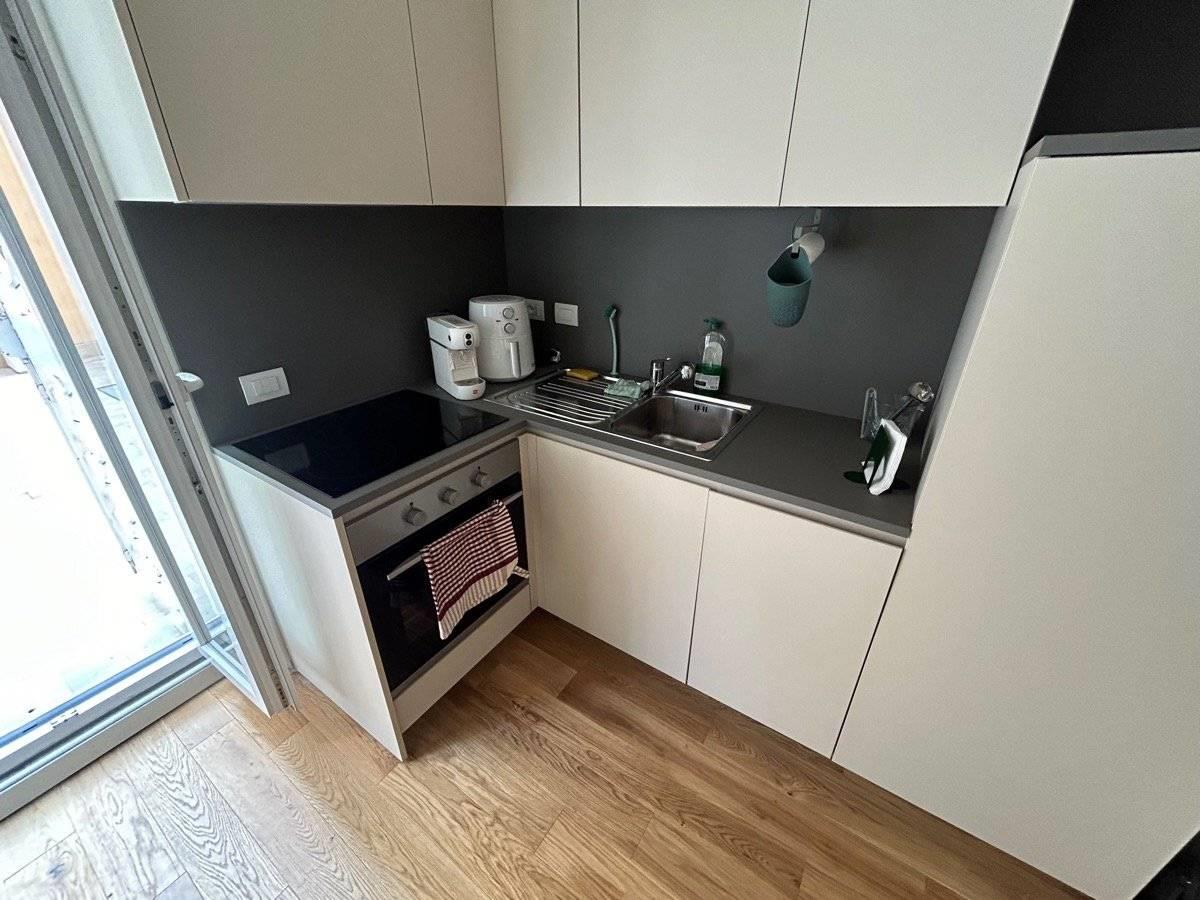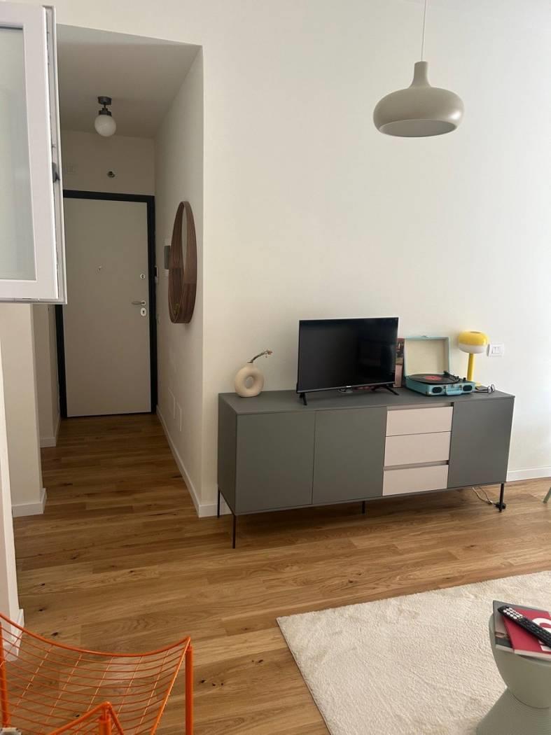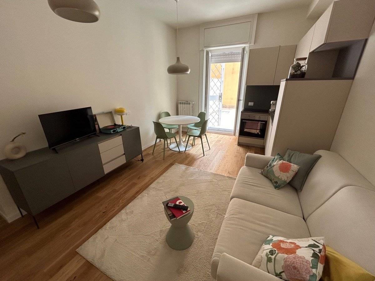 Disposizione interna con ingresso, area living con divano letto e cucina annessa e grande terrazza a livello, camera letto con accesso alla terrazza, servizio con cabina doccia è perfettamente adattabile ad esigenze residenziali di standard elevato.