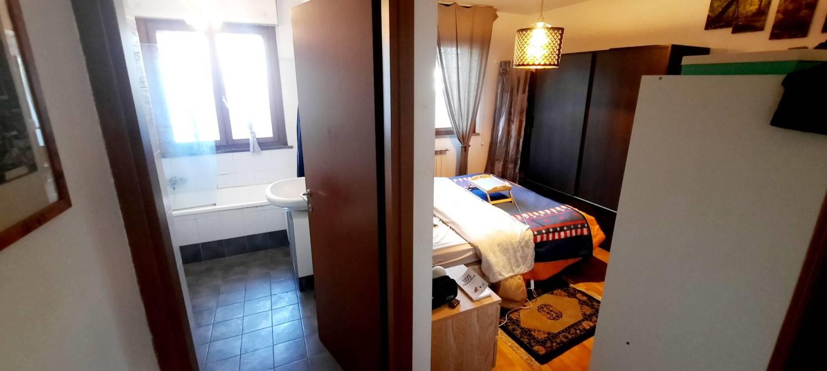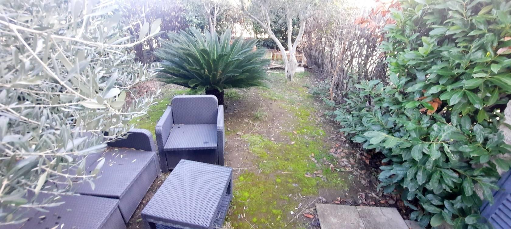 Salone doppio a vista. cucinotto, camera matrimoniale, bagno, giardino di mq 140, meta' mattonato e meta' a verde.