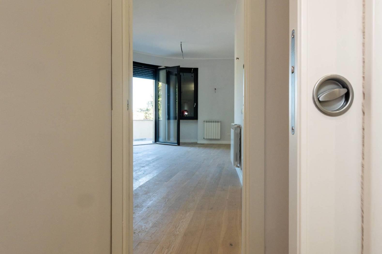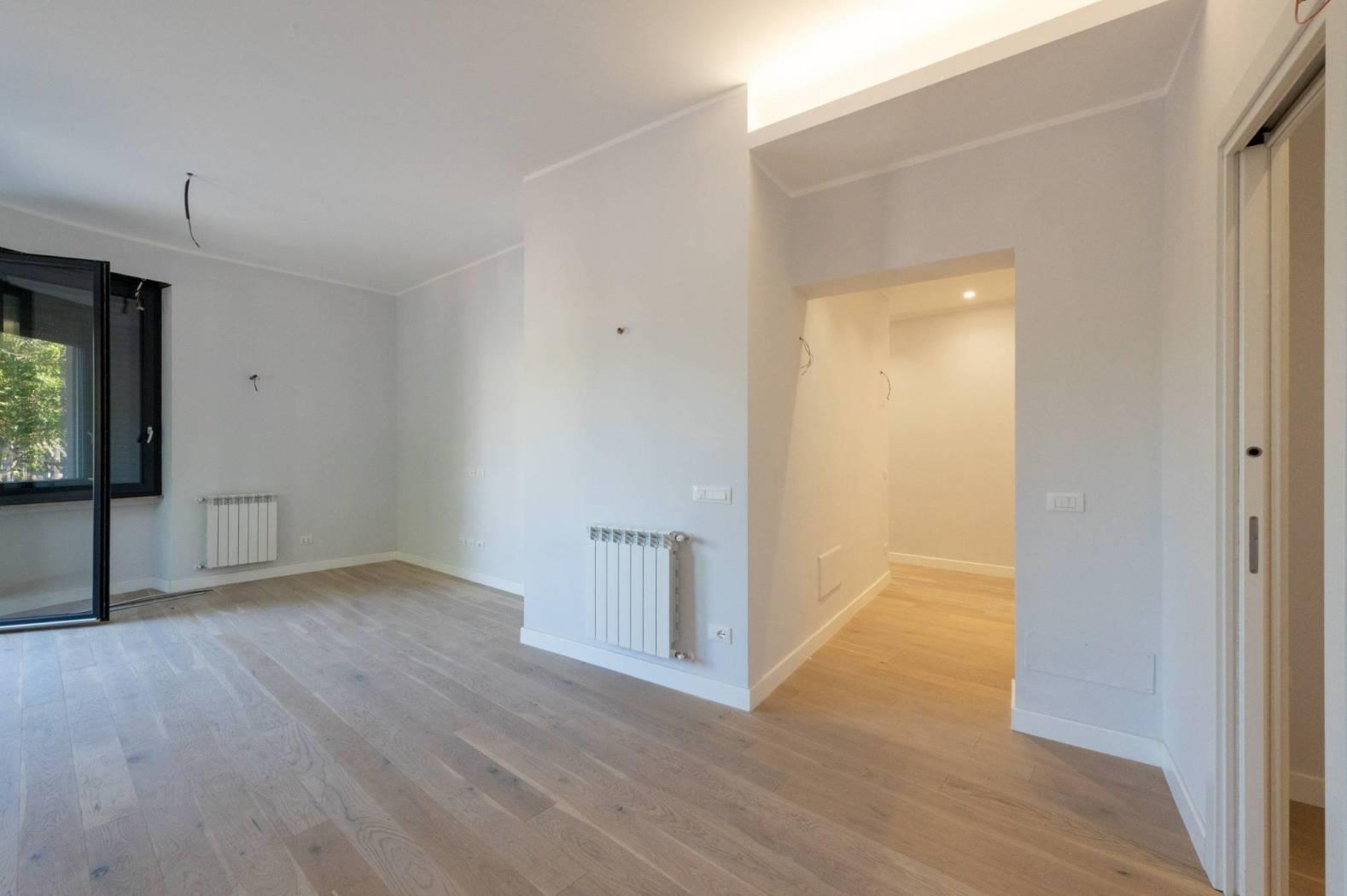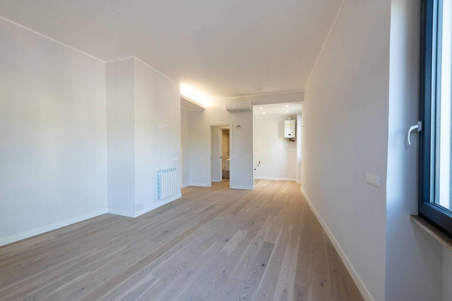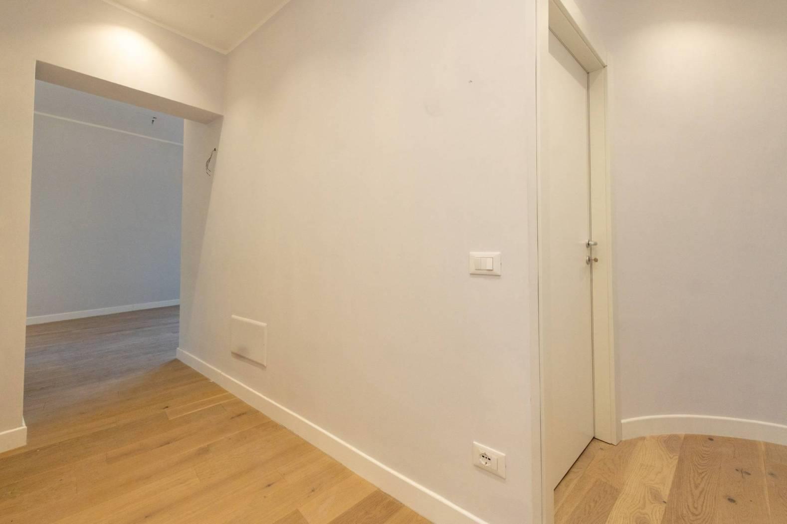 L'appartamento, mai abitato e interamente ristrutturato con materiali di alta qualità, si sviluppa su un livello e presenta apie finiture moderne. La disposizione comprende un luminoso salotto con cucinotto, due confortevoli camere da letto, doppi servizi e una spaziosa terrazza a livello di grande rappresentanza, ideale per momenti di relax e convivialità all'aperto.