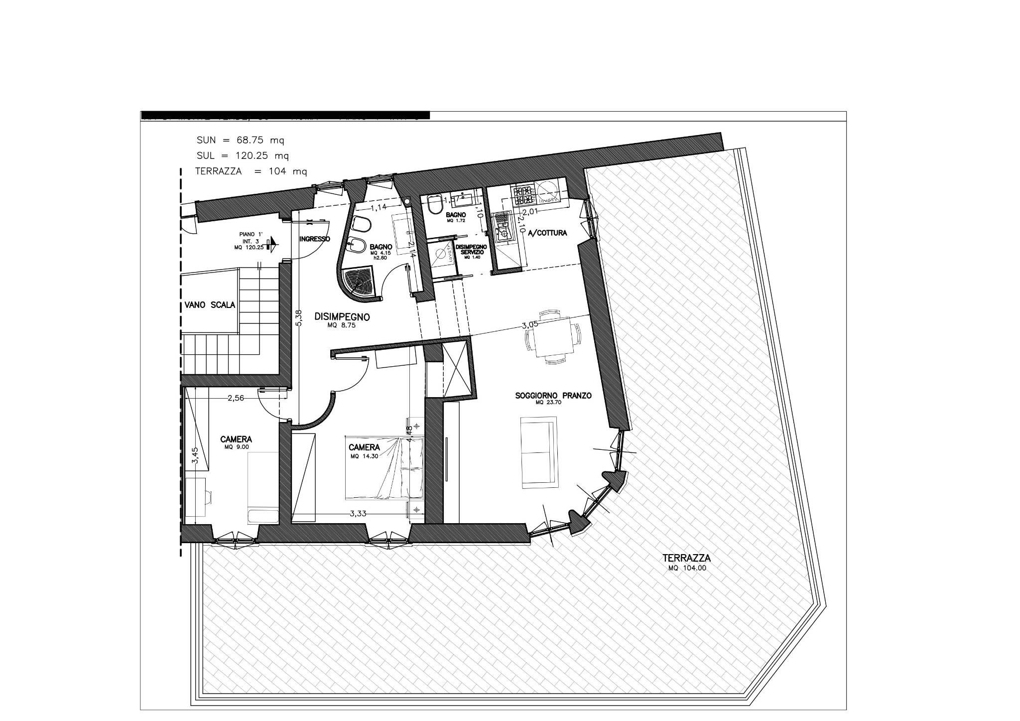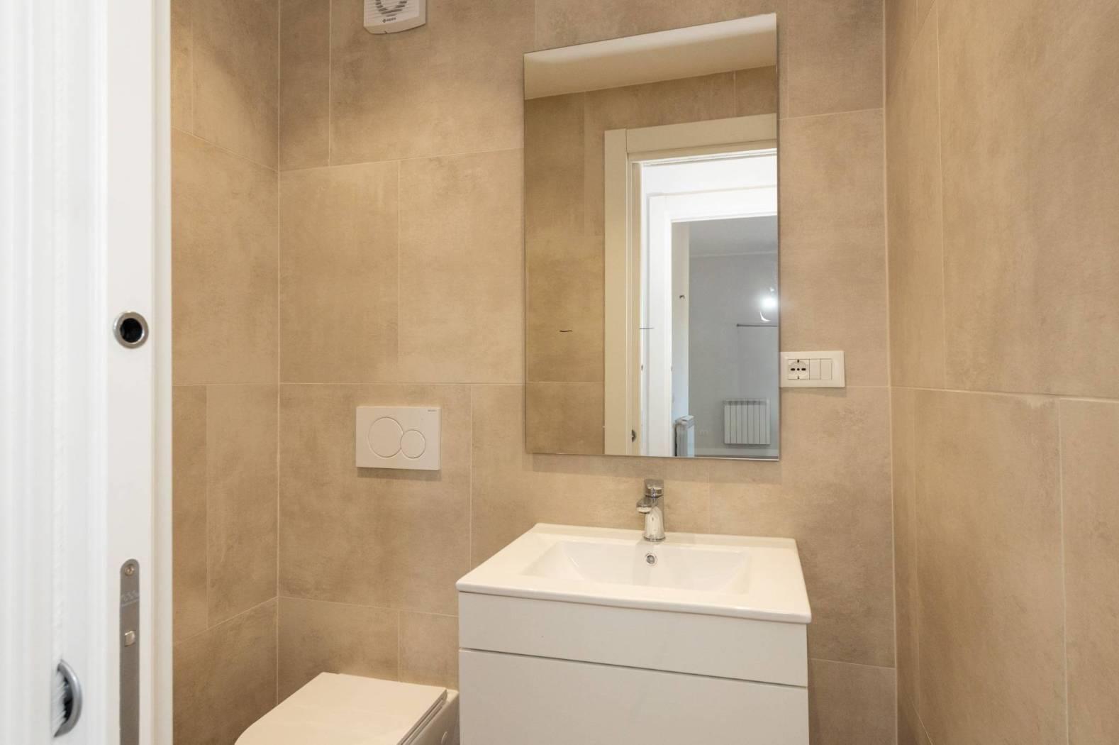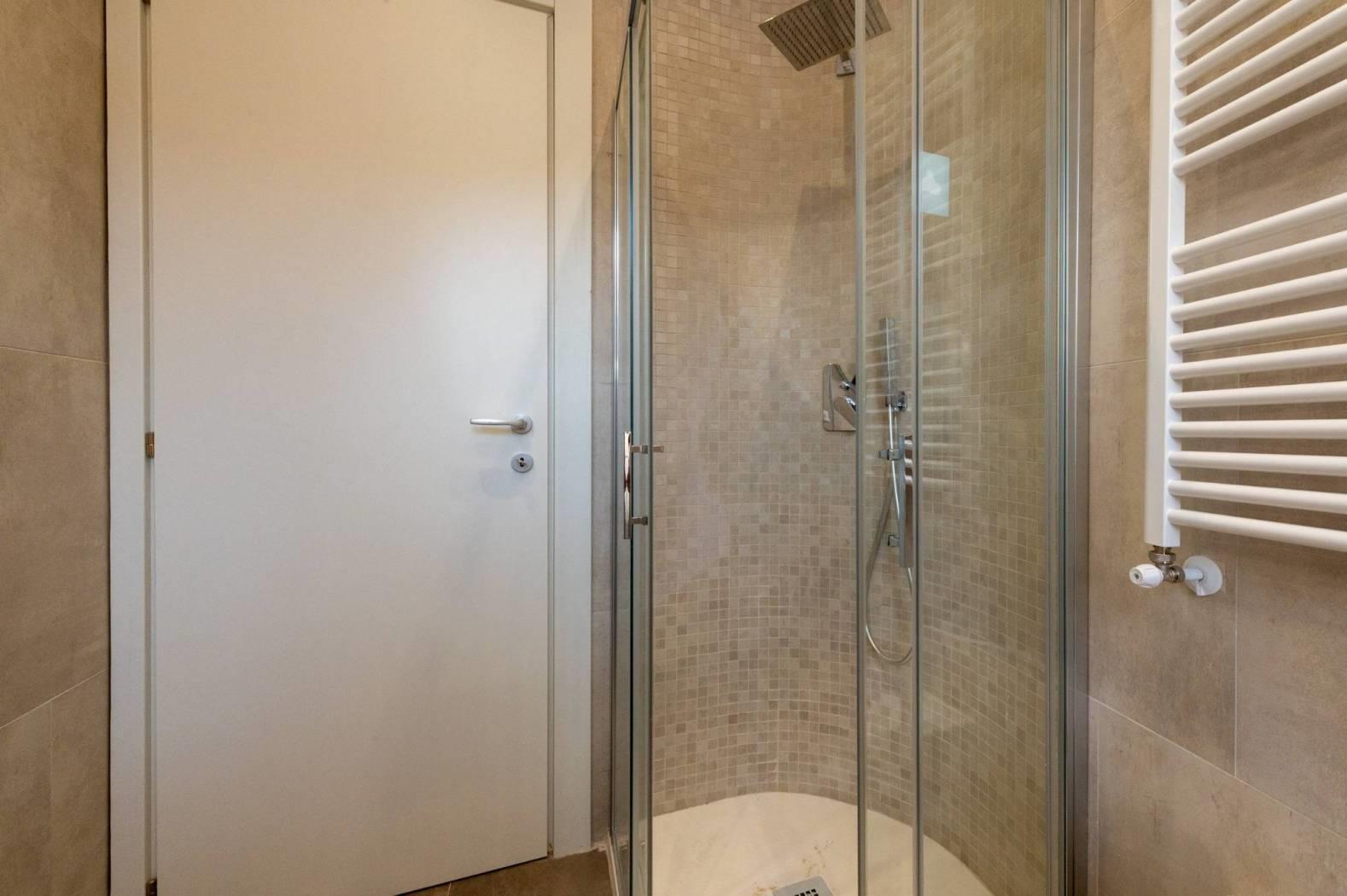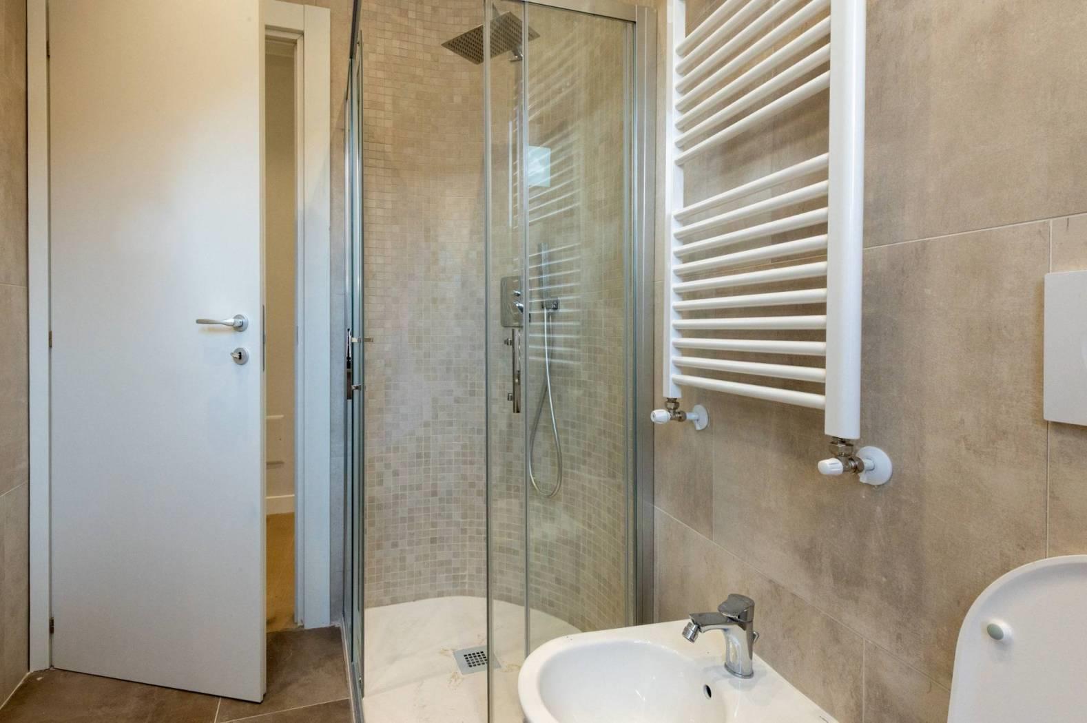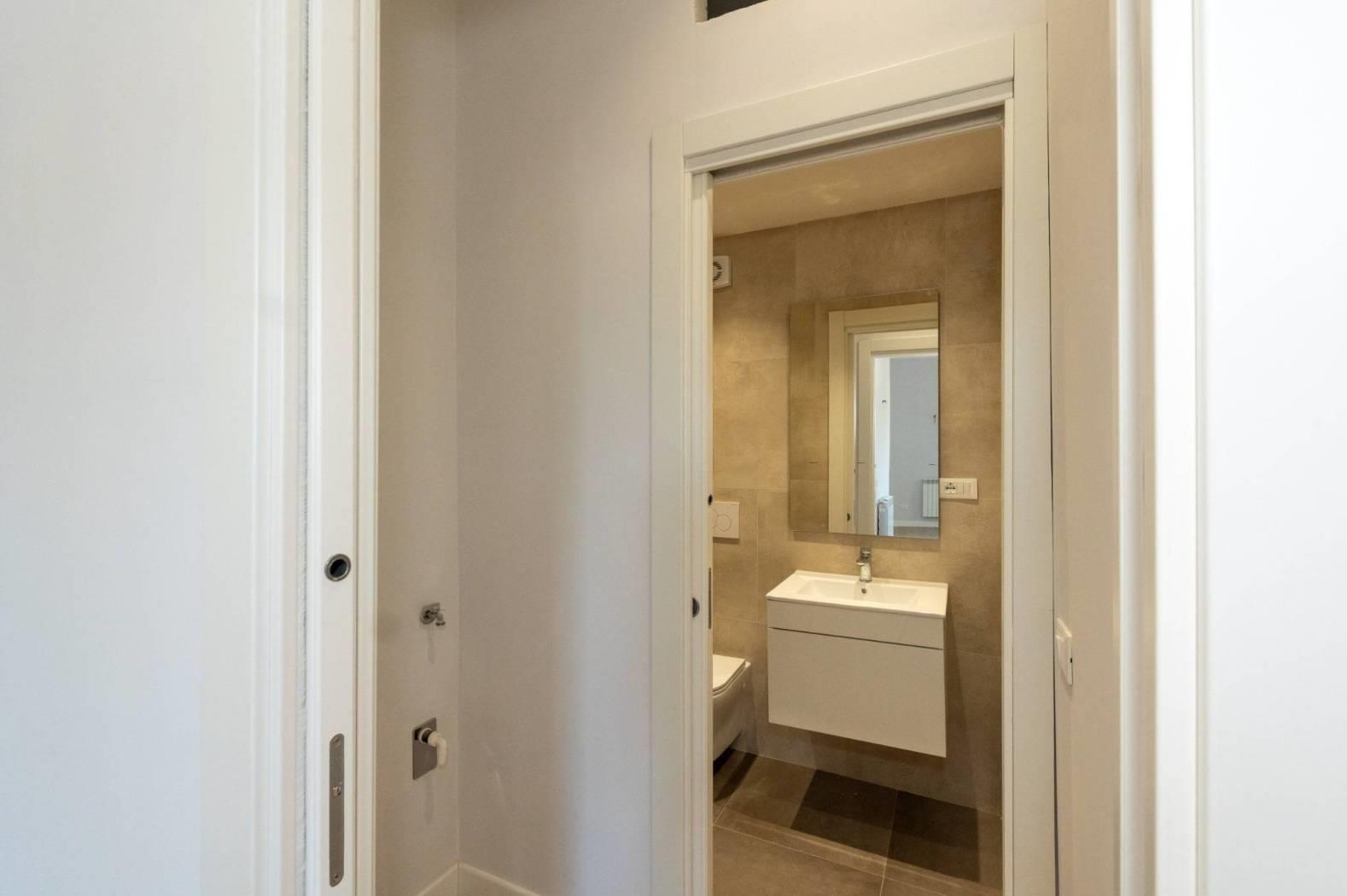 L'appartamento, mai abitato e interamente ristrutturato con materiali di alta qualità, si sviluppa su un livello e presenta apie finiture moderne. La disposizione comprende un luminoso salotto con cucinotto, due confortevoli camere da letto, doppi servizi e una spaziosa terrazza a livello di grande rappresentanza, ideale per momenti di relax e convivialità all'aperto.