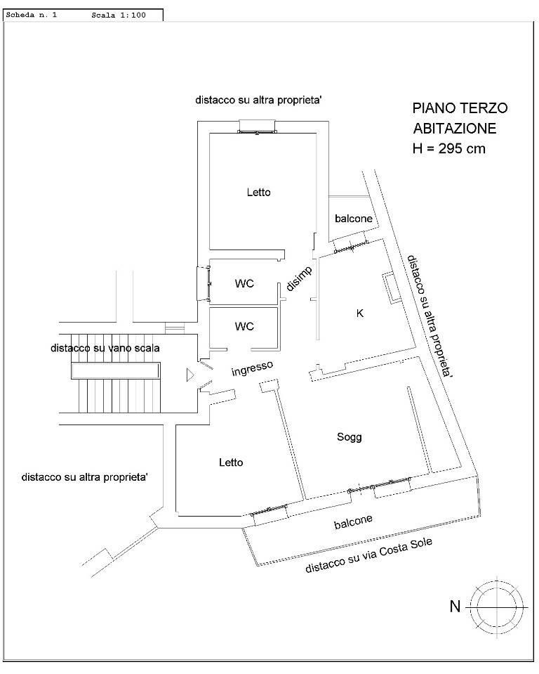 Via Costa Sole, appartamento di circa 100 mq, posto al piano terzo, composto da ingresso, soggiorno, cucina abitabile con camino, due camere, doppi servizi, due balconi.
