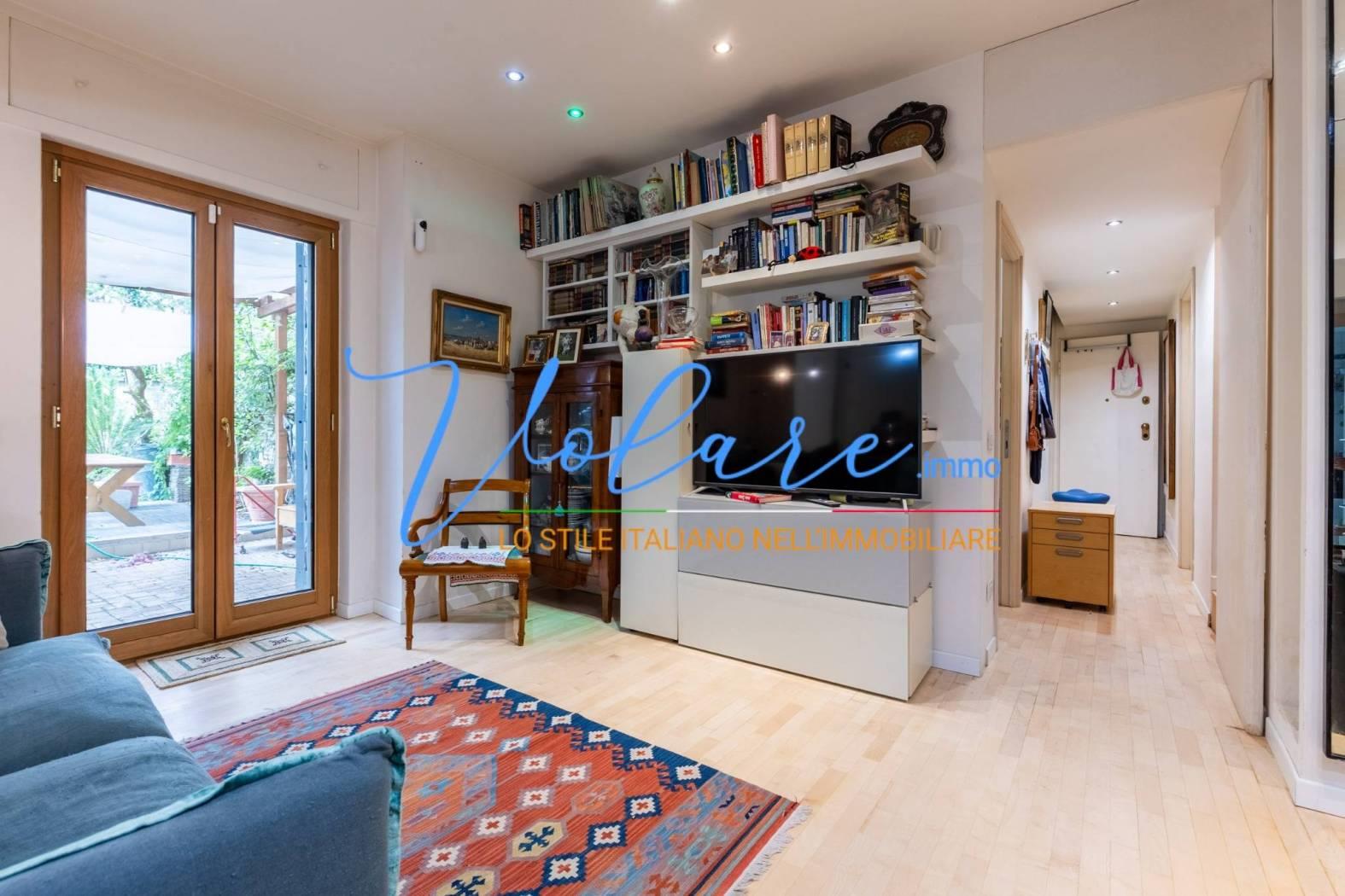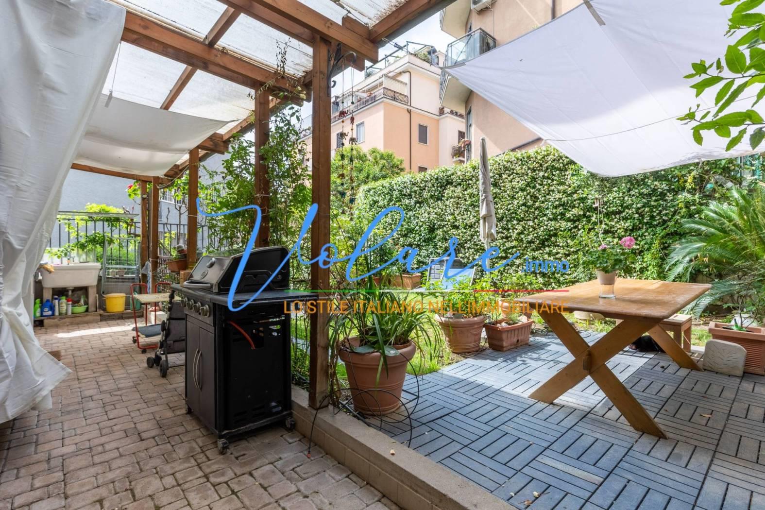 In una delle zone più tranquille e verdi di Roma pur se vicina a tutti i principali servizi, a due passi da San Pietro ma lontano dal caos cittadino, Volare Immobiliare ha il piacere di proporre in vendita un appartamento con giardino che è un vero angolo di pace. Siamo precisamente in Via dei Gozzadini, nei pressi di villa Pamphili e nel cuore della zona Madonna del Riposo, un quartiere residenziale molto apprezzato per la sua quiete e per la comodità dei servizi vicini.