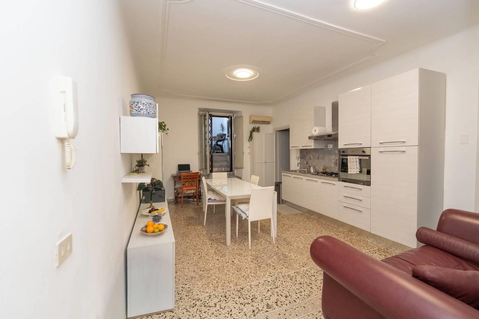 Internamente è composto da: salone con angolo cottura, camera matrimoniale con servizio, cameretta, un ulteriore servizio ed un lungo corridoio attualmente attrezzato con librerie e capienti armadiature.
