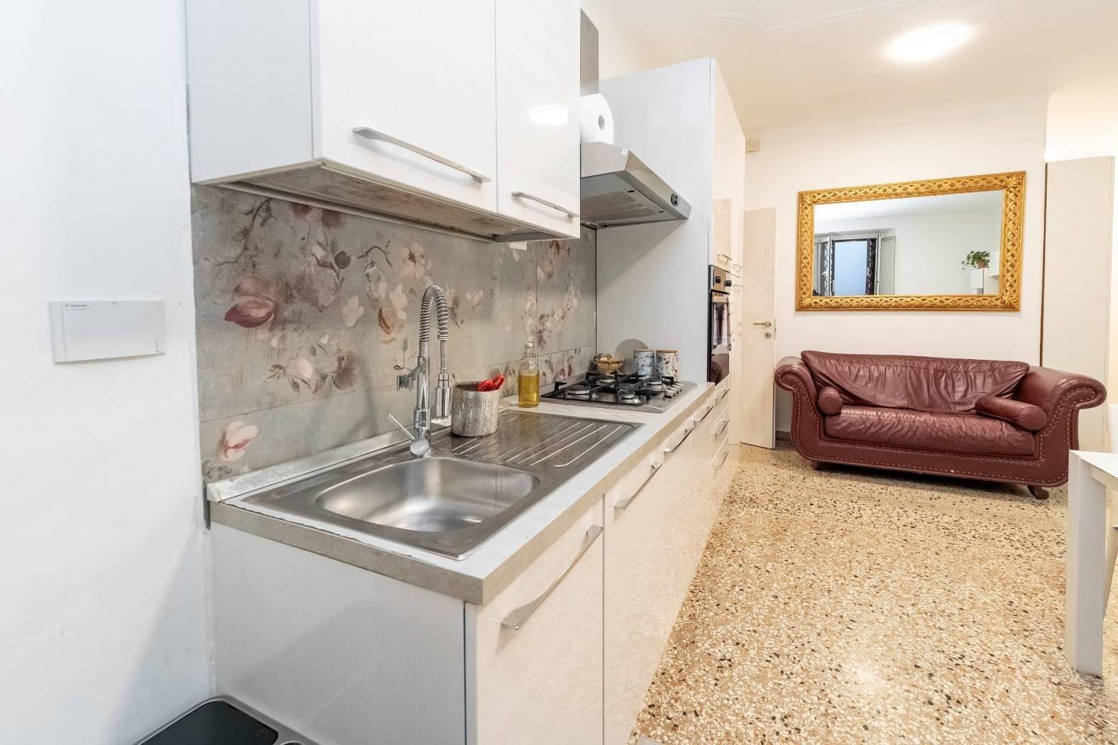 L’immobile risulta accatastato come piano terra ma si deve scendere una rampa di scale condominiali, molto ampie e signorili. Gli affacci sono da primo piano con grandi finestre di misura regolare. Considerata la posizione, l’appartamento si presta anche come studio professionale o come investimento.