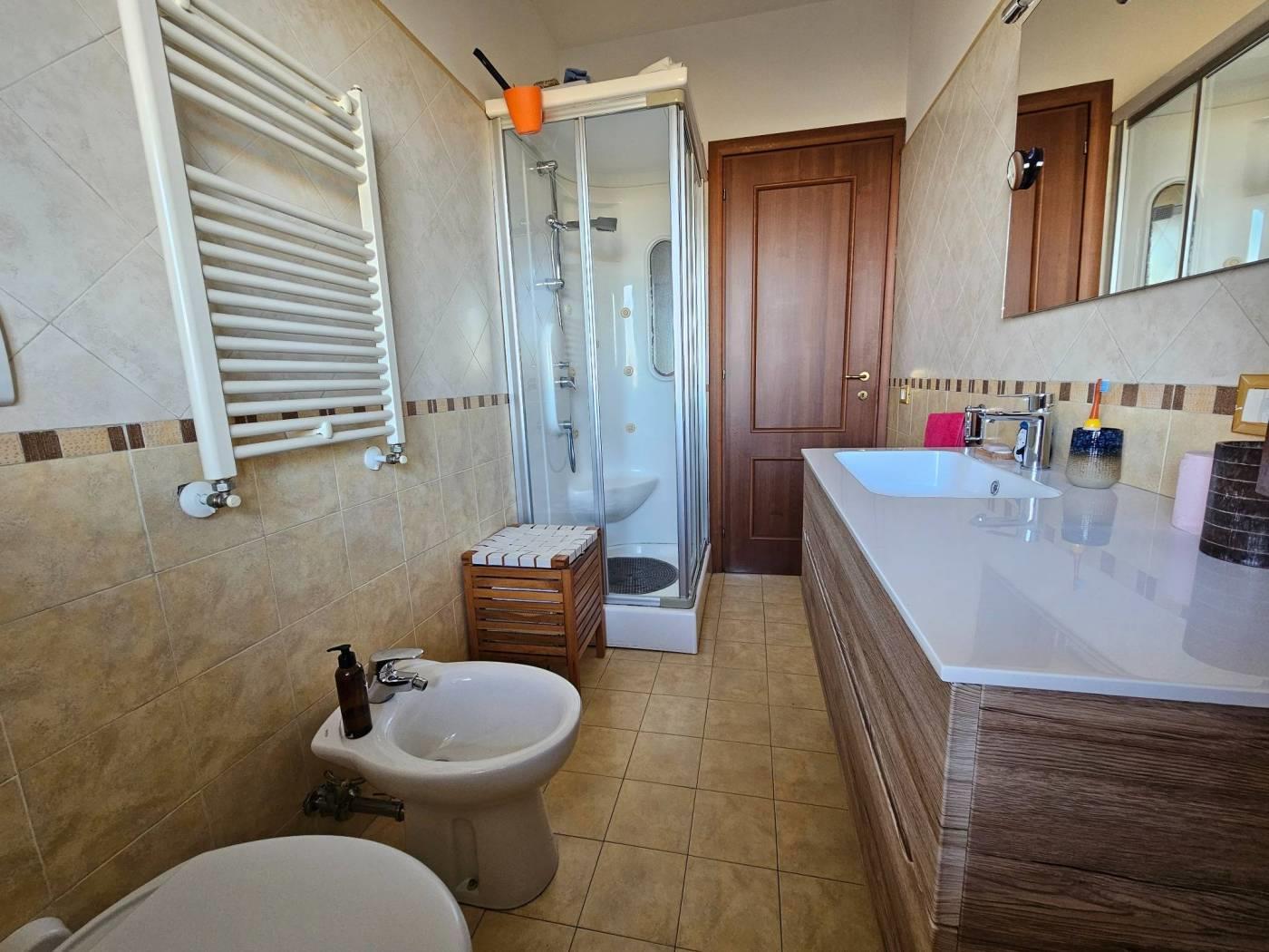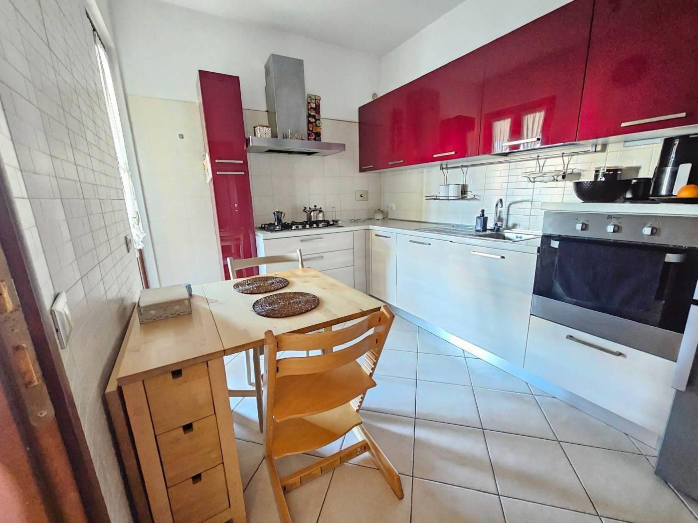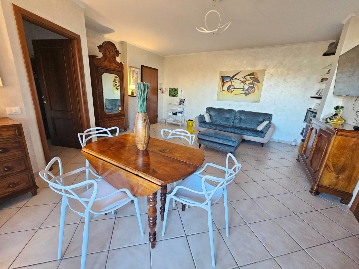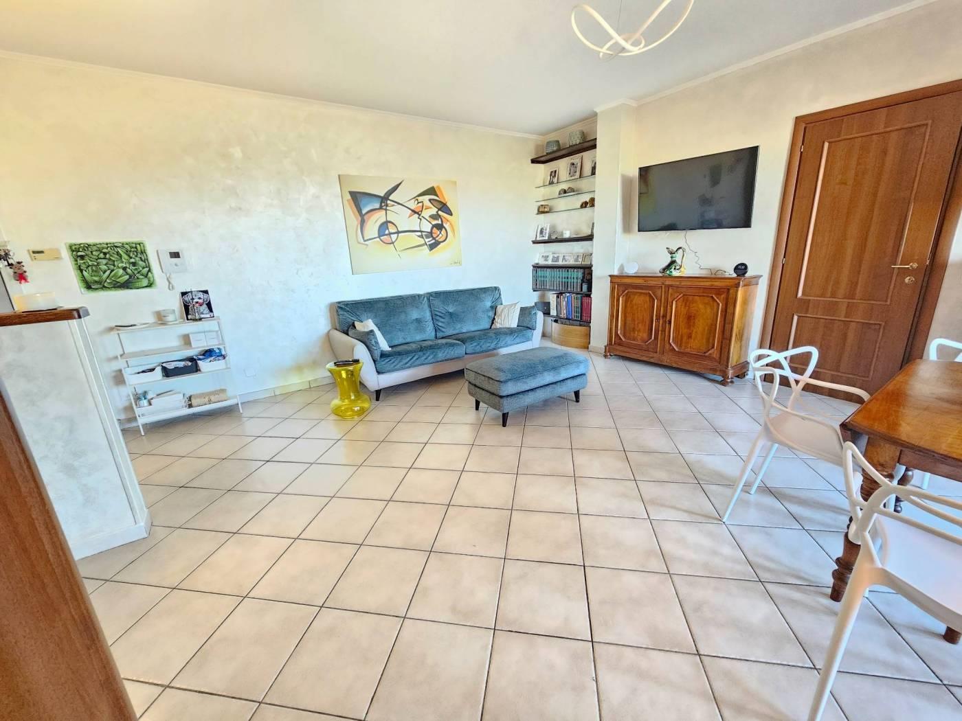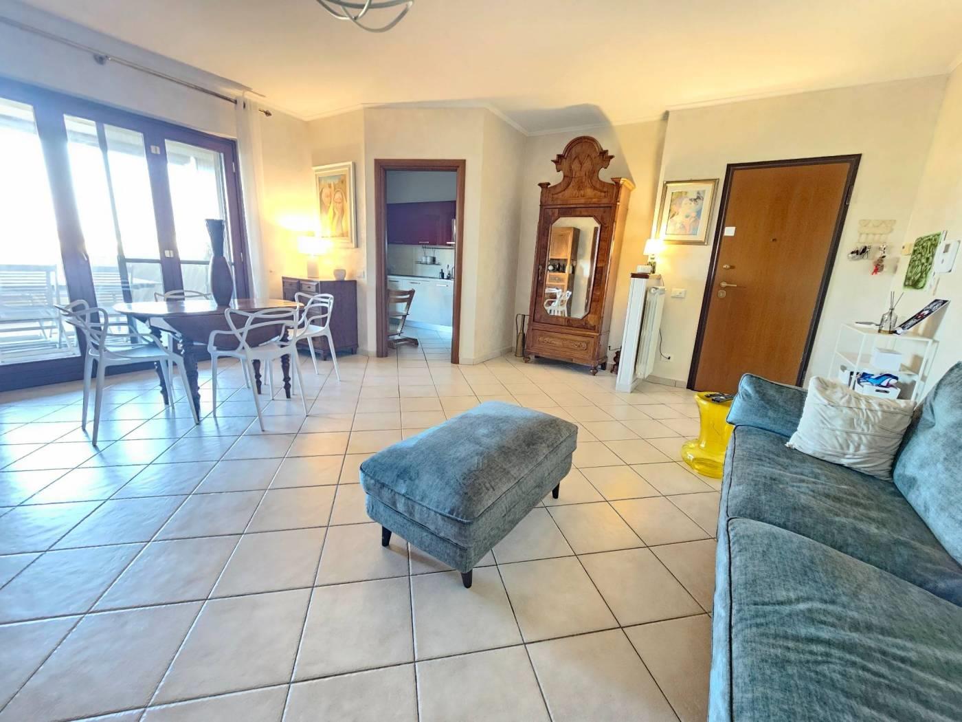 L'immobile è composto da: salone, cucina abitabile, disimpegno, camera matrimoniale con bagno interno servito da doccia, cameretta, secondo bagno finestrato con doccia idromassaggio e un ampio ripostiglio. La zona esterna vanta un vivibile terrazzo a livello accessoriato con tende da sole e un funzionale mobile in alluminio che ospita la caldaia, il motore dei condizionatori e l'angolo lavanderia (lavatrice e asciugatrice). Completano la proprietà un box auto di 25 mq e una cantina di 3 mq. L'appartamento si presenta in ottime condizioni, è dotato di zanzariere, riscaldamento autonomo e impianto di condizionamento. L'immobile vanta una Classe Energetica B, che consente di accedere a mutui a tasso agevolato (Mutui Green). La documentazione è completa di certificazioni degli impianti e certificato di agibilità. La zona è altamente servita: al piano stradale dello stabile è presente un supermercato , mentre a soli 100 metri si trovano farmacia e forno. Le scuole distano circa 400 metri ed il mare è raggiungibile a piedi (circa 600 metri).