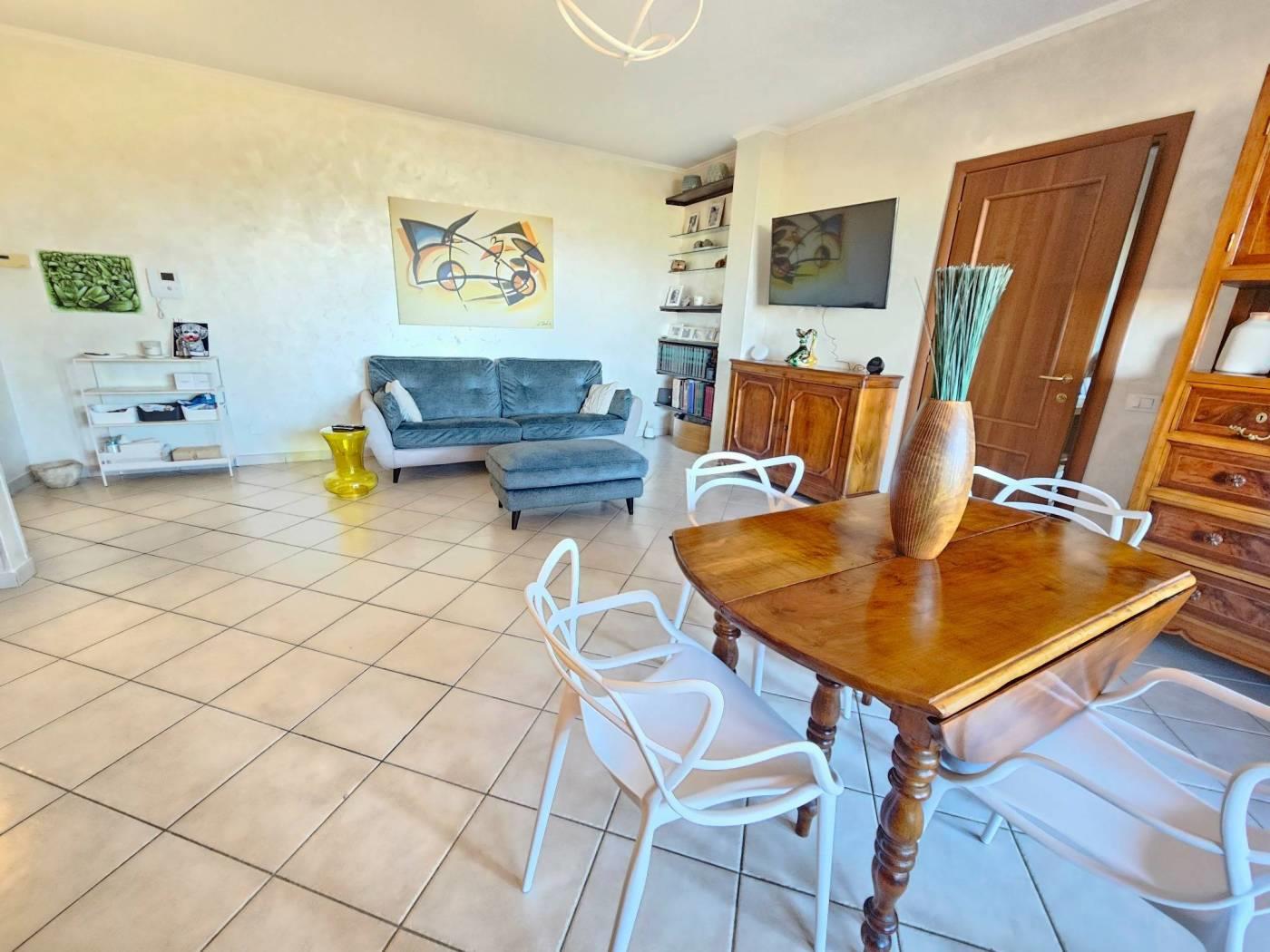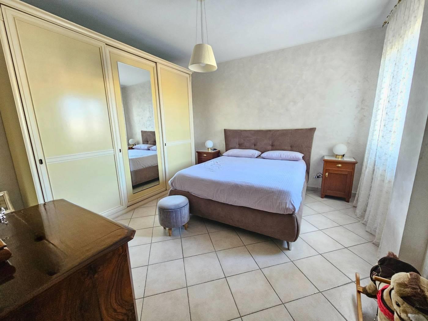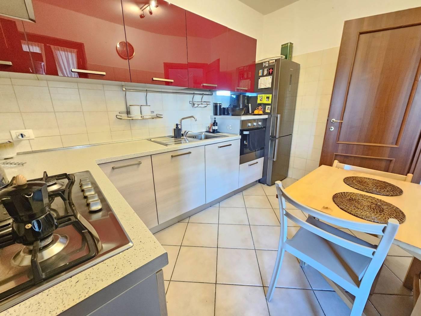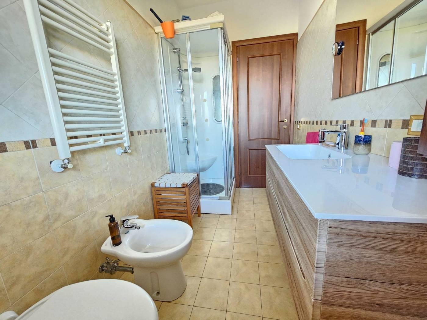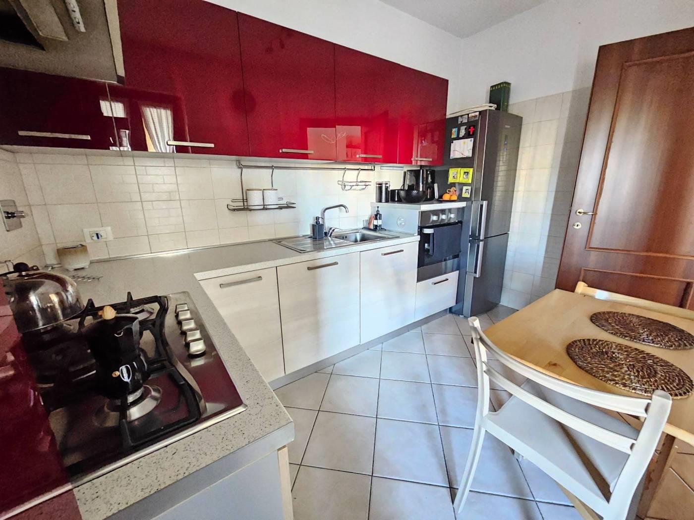 L'immobile è composto da: salone, cucina abitabile, disimpegno, camera matrimoniale con bagno interno servito da doccia, cameretta, secondo bagno finestrato con doccia idromassaggio e un ampio ripostiglio. La zona esterna vanta un vivibile terrazzo a livello accessoriato con tende da sole e un funzionale mobile in alluminio che ospita la caldaia, il motore dei condizionatori e l'angolo lavanderia (lavatrice e asciugatrice). Completano la proprietà un box auto di 25 mq e una cantina di 3 mq. L'appartamento si presenta in ottime condizioni, è dotato di zanzariere, riscaldamento autonomo e impianto di condizionamento. L'immobile vanta una Classe Energetica B, che consente di accedere a mutui a tasso agevolato (Mutui Green). La documentazione è completa di certificazioni degli impianti e certificato di agibilità. La zona è altamente servita: al piano stradale dello stabile è presente un supermercato , mentre a soli 100 metri si trovano farmacia e forno. Le scuole distano circa 400 metri ed il mare è raggiungibile a piedi (circa 600 metri).