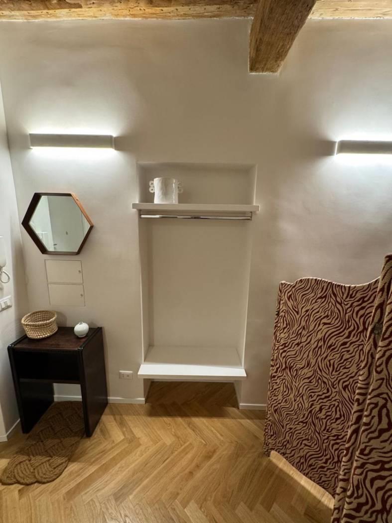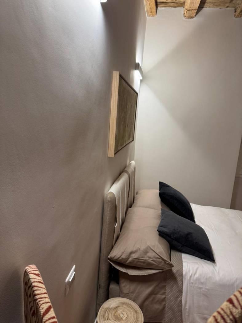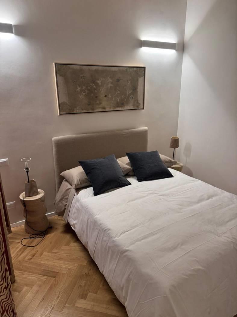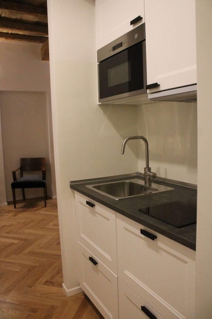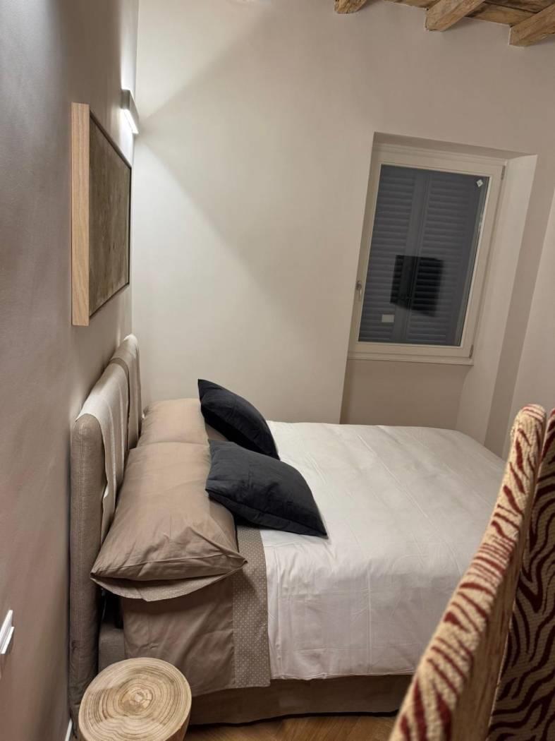 Al primo piano di un bel palazzo di Borgo Vittorio, in Via degli Ombrellari, ottimo monolocale con zona notte con letto matrimoniale con bagno e area giorno con angolo cottura, tavolo e sedie e ambiente di servizio con lavatrice.