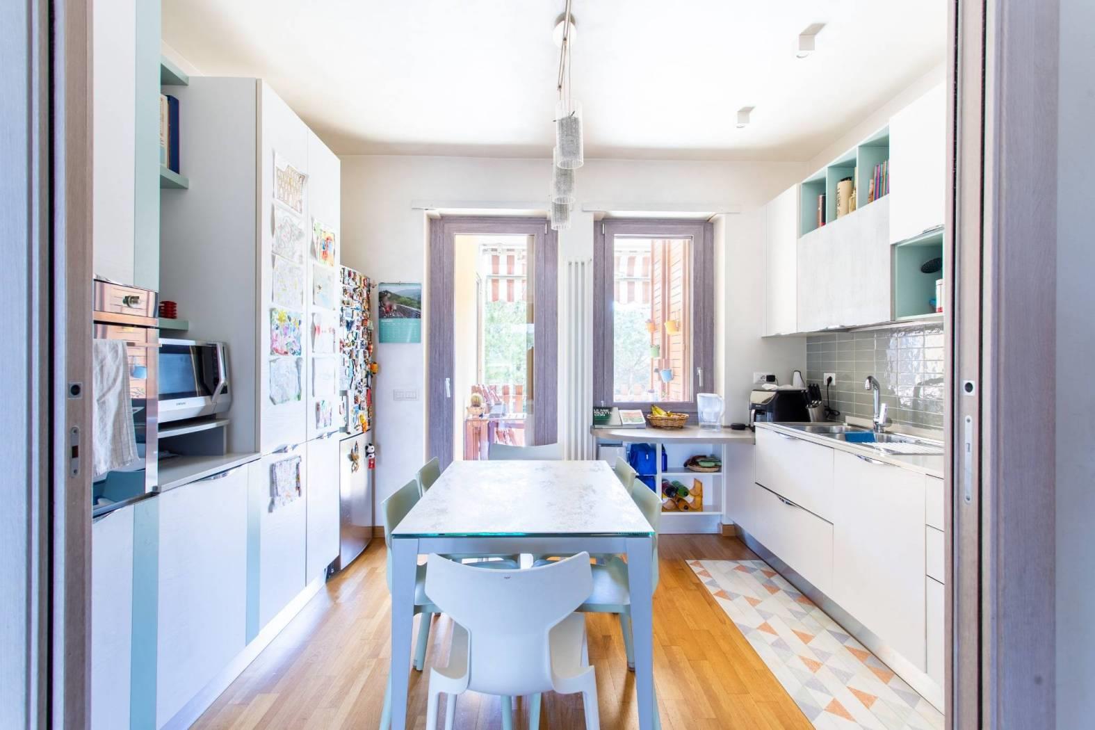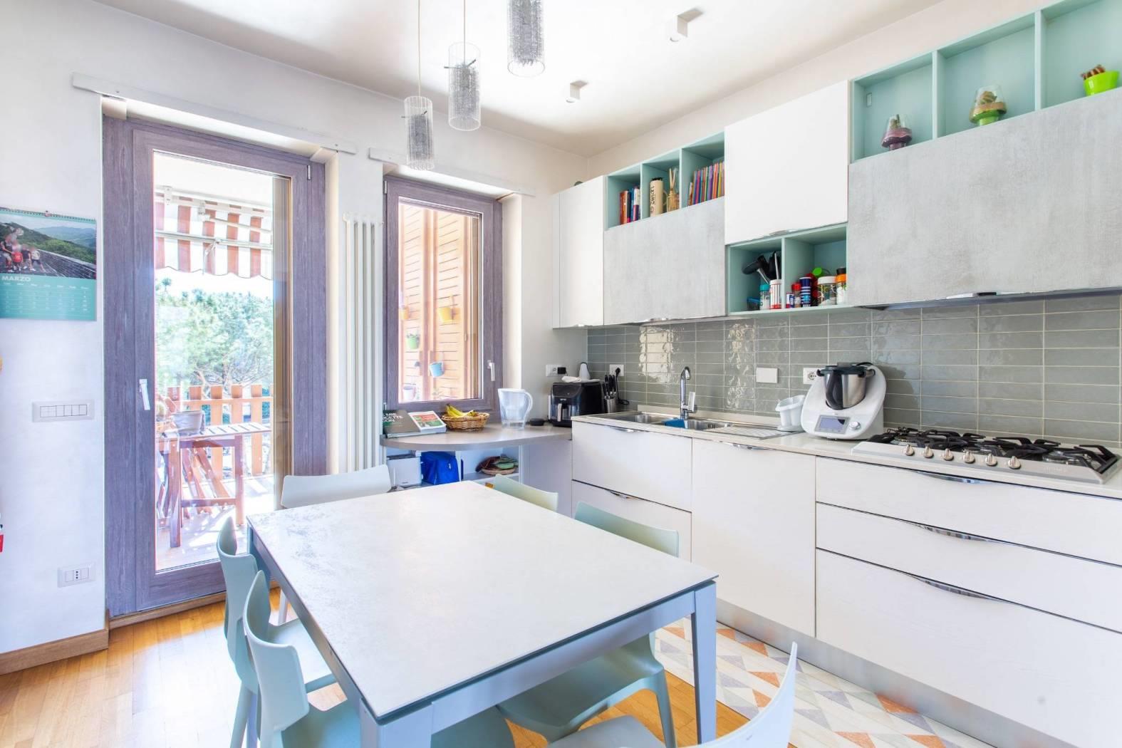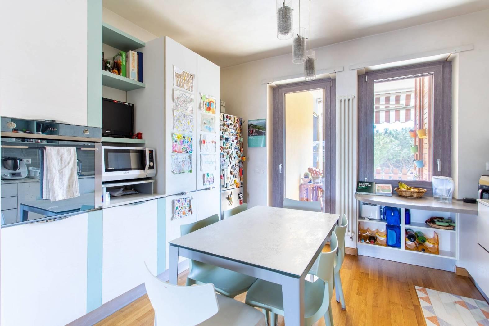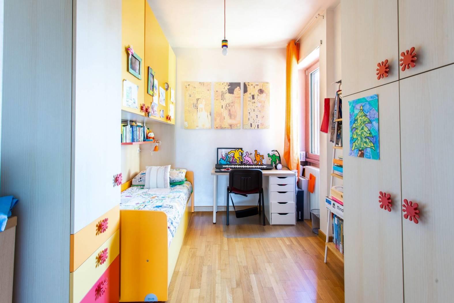 L’appartamento con doppia esposizione nord/sud si compone di un ingresso con piccolo ripostiglio, un ampio soggiorno con camino, un piccolo e silenzioso studio ideale per le giornate di lavoro in casa, l’ampia cucina si apre sul soggiorno attraverso una grande porta scorrevole vetrata.