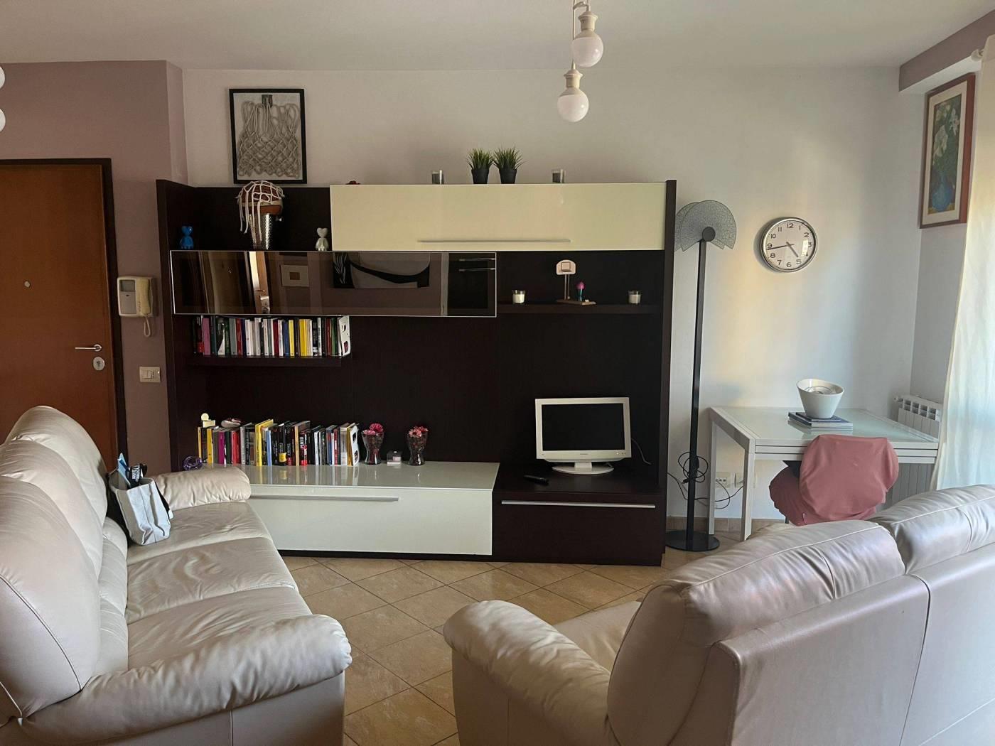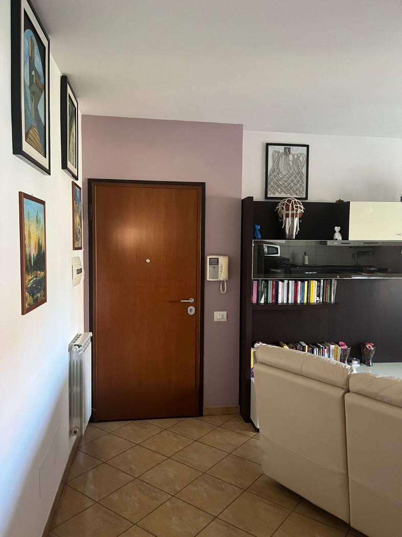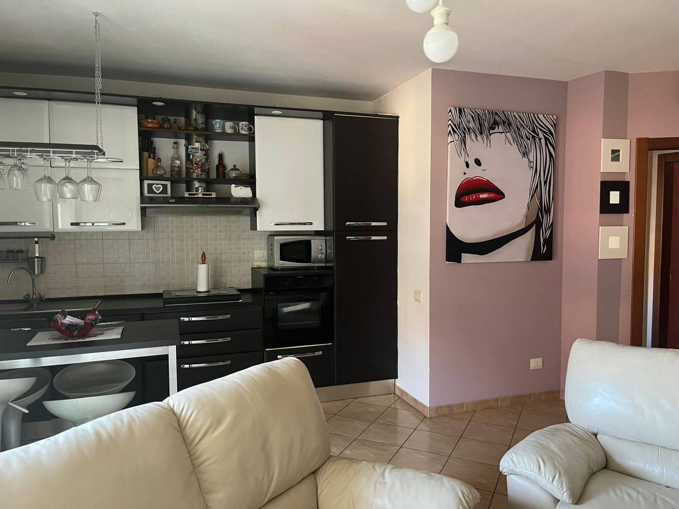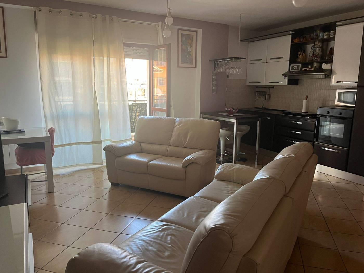 Proponiamo in vendita appartamento, con esposizione bilaterale e vista principale su strada interna, posto al primo piano con ascensore. E' composto da: salone a vista con angolo cottura, 2 camere, 2 bagni, terrazzo, posto auto condominiale.
