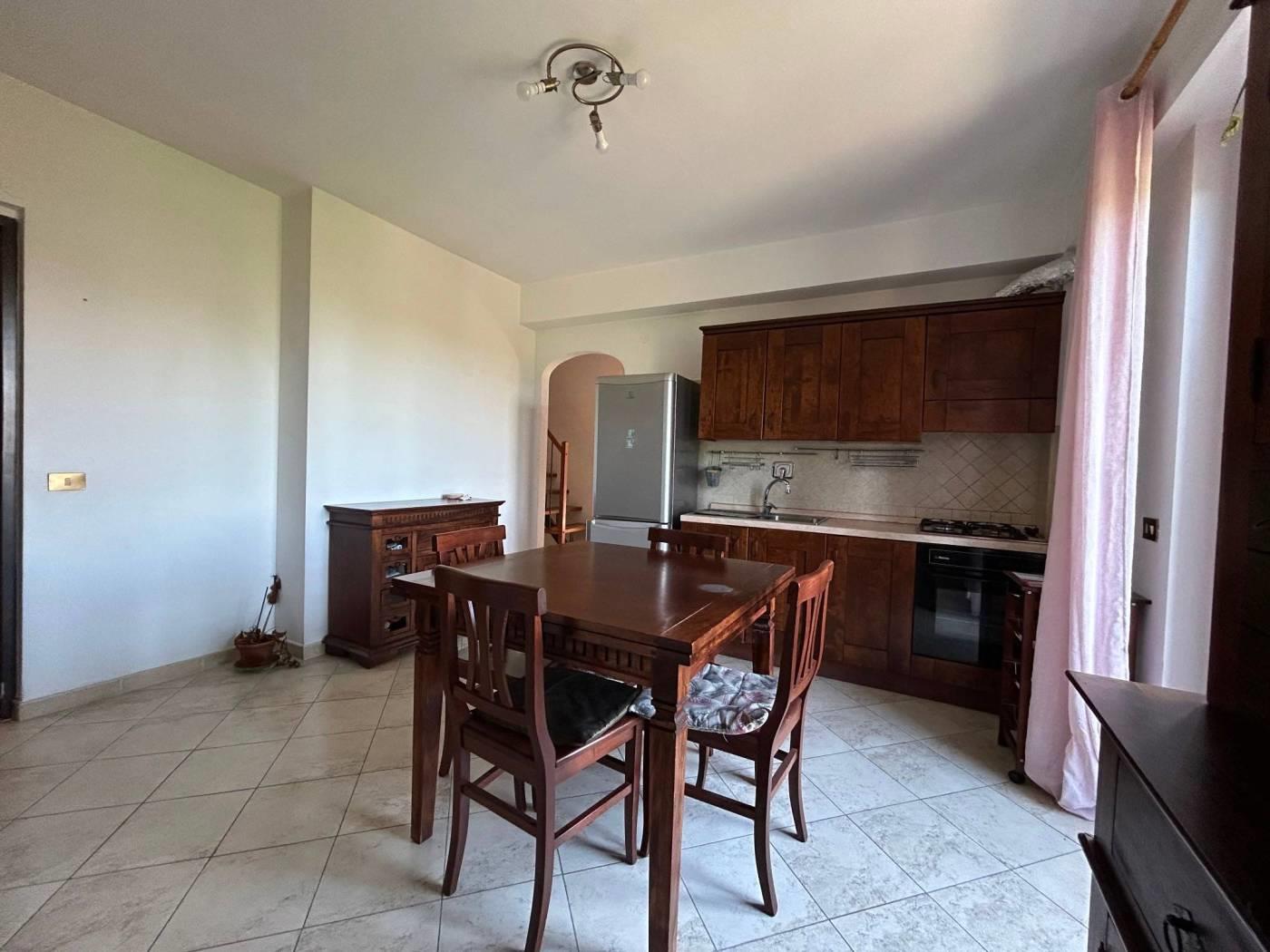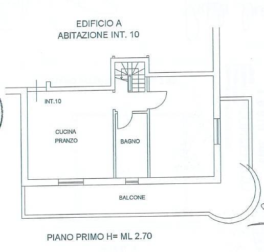 Ha una superficie di circa 75 mq ed è composto da soggiorno con angolo cottura, camera matrimoniale, bagno e balcone perimetrale al piano primo, mansarda open space e bagno al piano sottotetto. Il riscaldamento è autonomo. Completa la proprietà un garage doppio. Classe energetica F. Il costo del condominio è 90 euro mensili compresa l'acqua. No animali