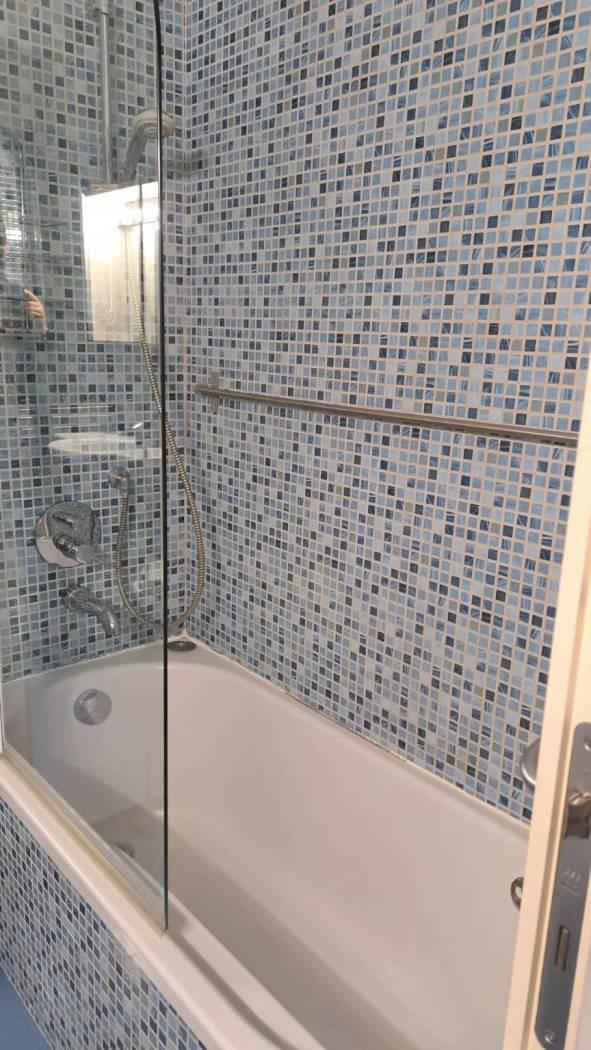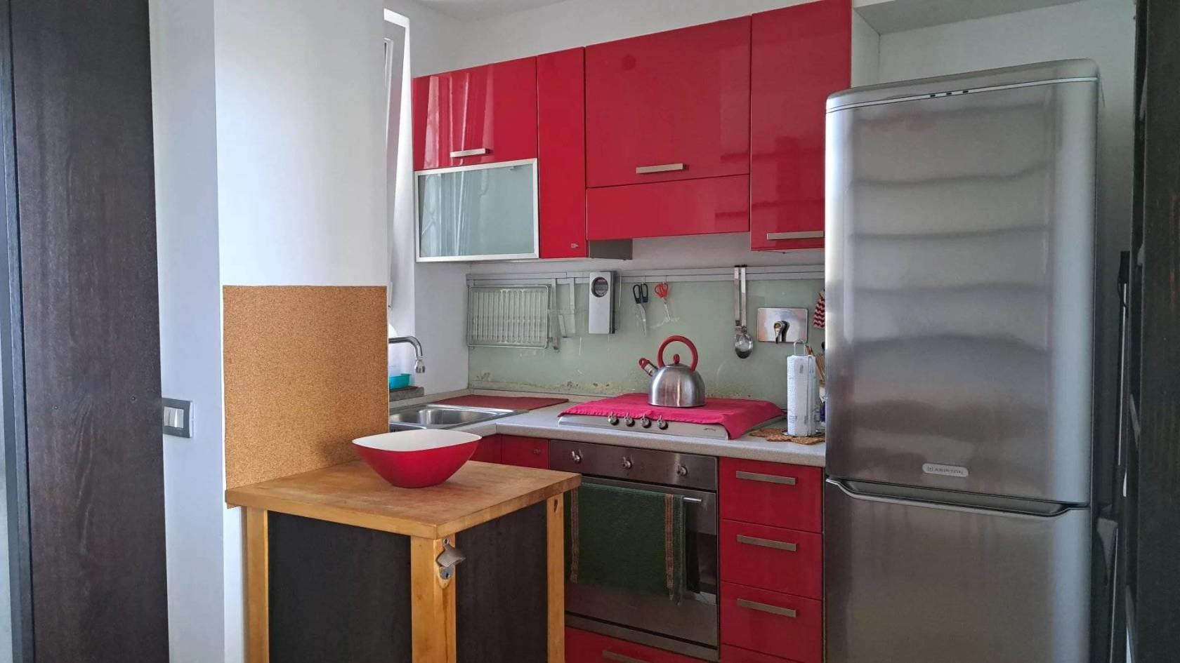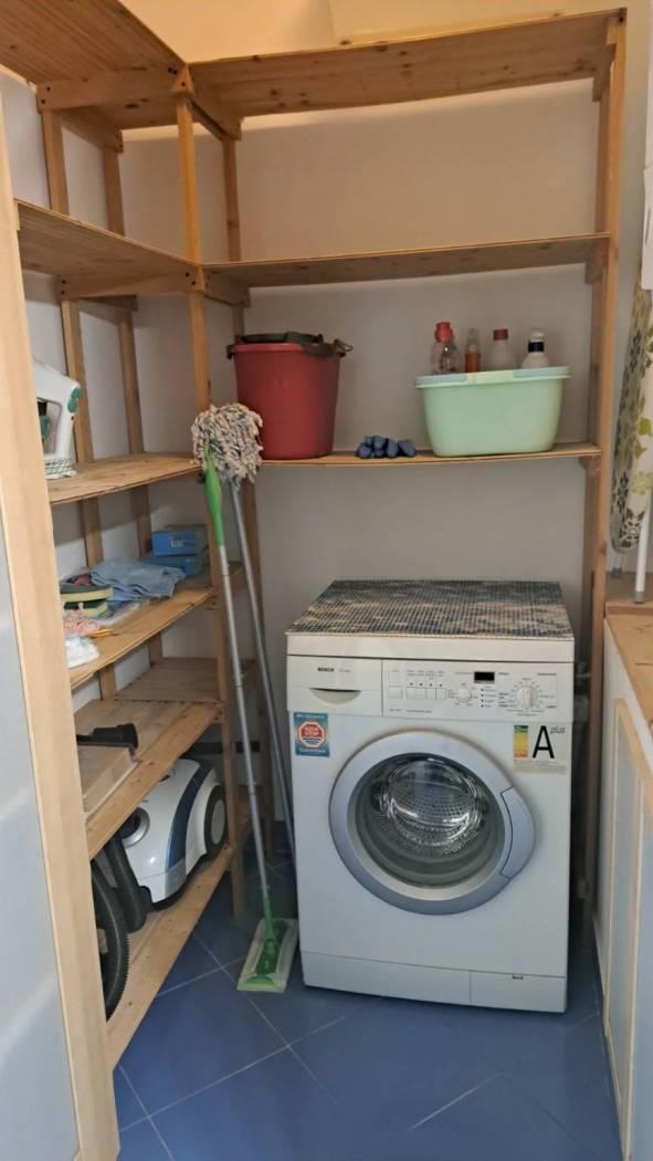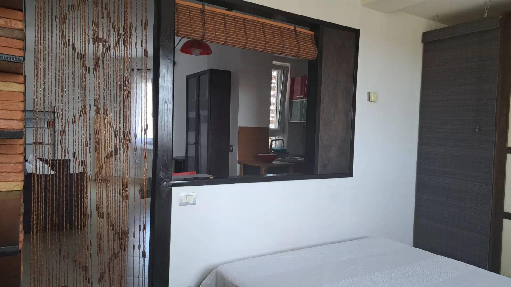 Tutti gli ambienti ad eccezione del ripostiglio e del bagno (dotato di vasca e privo di finestra), sono integrati in un unico spazio.