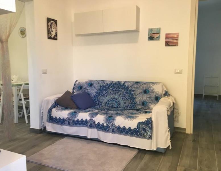 (45 mq) Appartamento al piano terra IN AFFITTO ESTIVO con piccolo giardino pavimentato, composto da: ingresso, sala con angolo cottura, bagno con doccia e camera matrimoniale. Completamente ristrutturato. Clima. no condominio. 2-3 p. L. No animali.