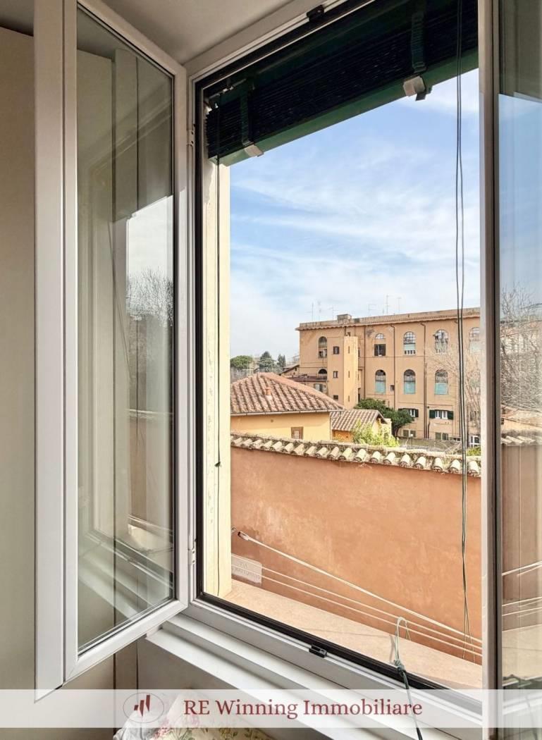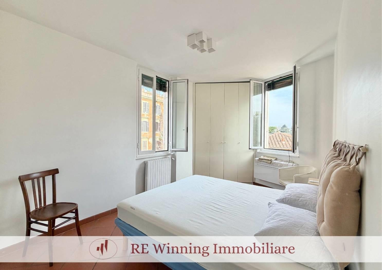 In Centro storico, nell'esclusiva cornice di Trastevere, tra via Garibaldi e via del Mattonato, proponiamo in locazione transitoria un elegante appartamento completamente arredato situato al secondo piano di un palazzetto storico dotato di ascensore.