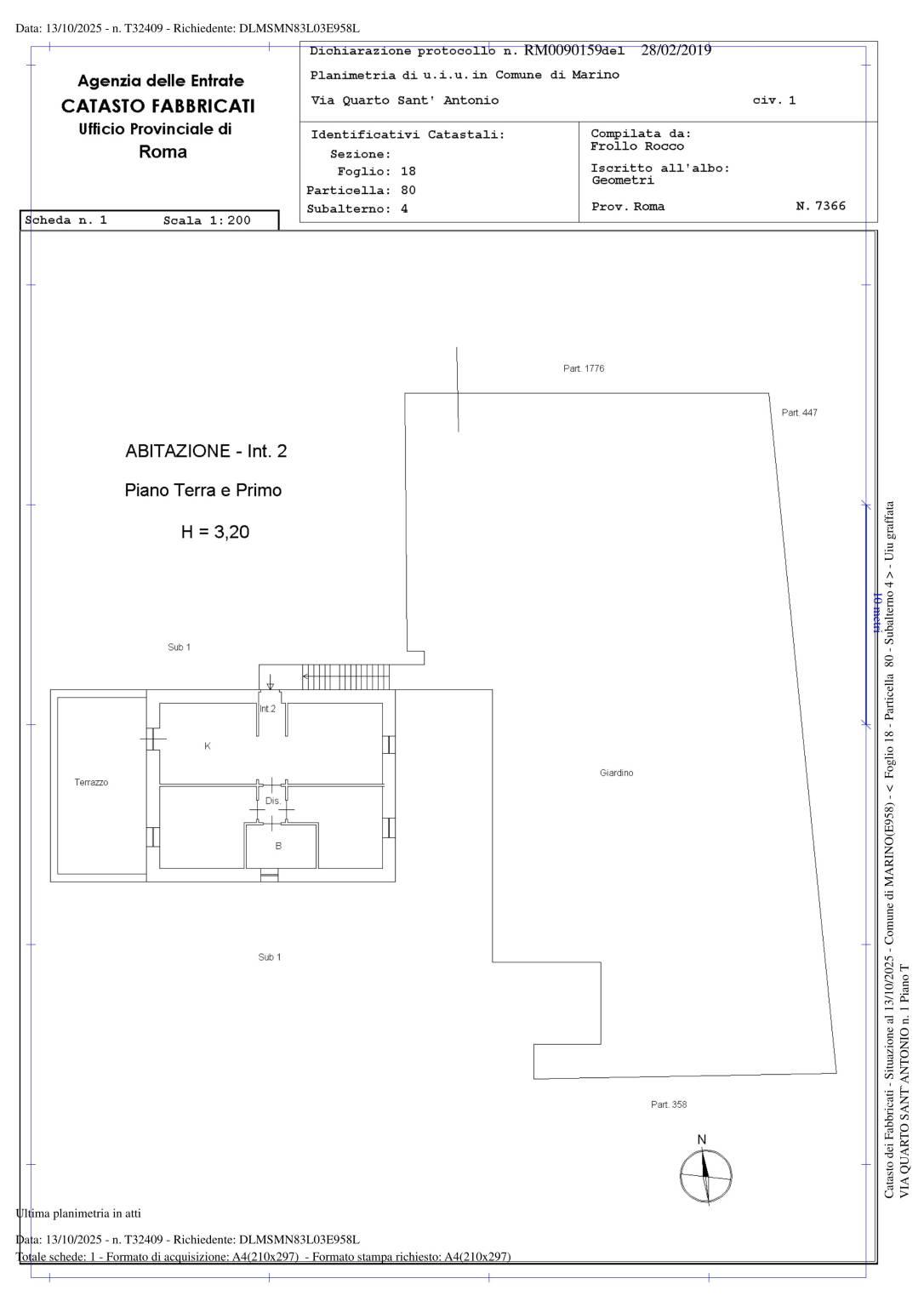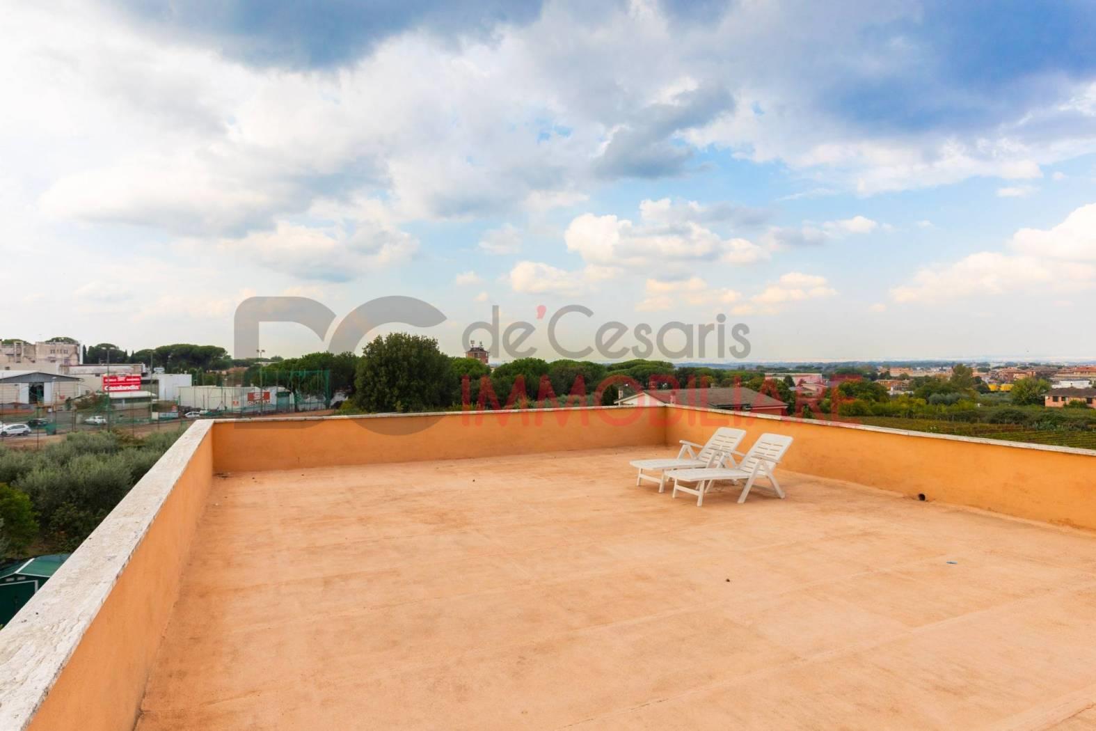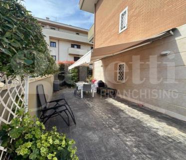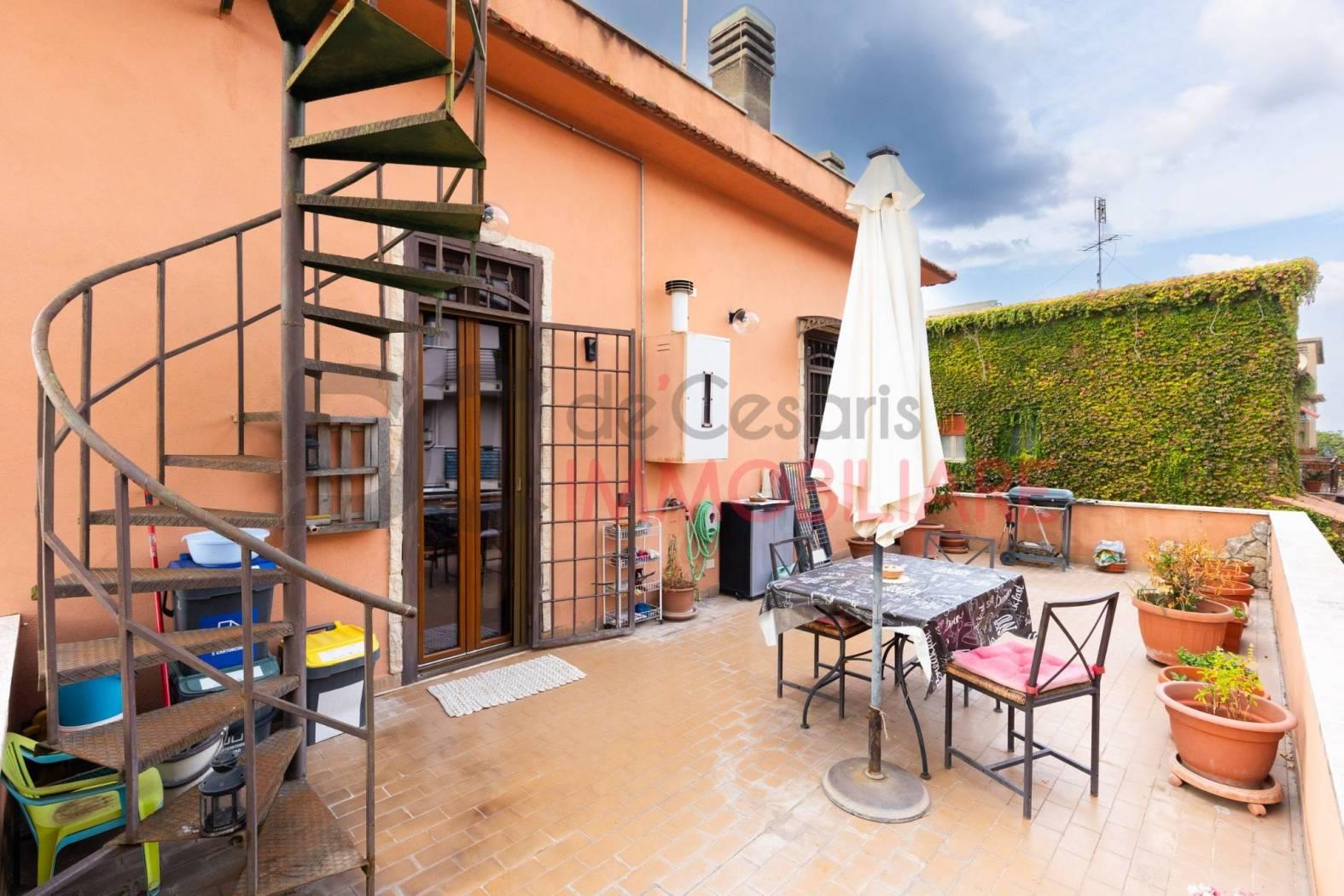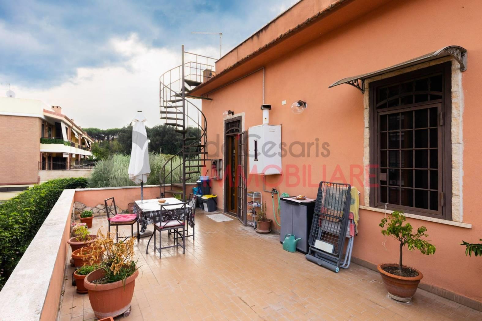 Adiacenze Via del Sassone, appartamento in bifamiliare al primo ed ultimo piano con ingresso indipendente, quadrupla esposizione, luminoso ed arieggiato in posizione tranquilla e vicino ai servizi, composto di comodo soggiorno, cucina abitabile con terrazzo a livello di 30 mq, due ampie camere matrimoniali e servizio. Completa la proprietà un comodo giardino di 420 mq con passo carrabile per poter parcheggiare più auto al suo interno ed una dependance di 30 mq accatastata come abitazione. Buono stato generale, luminosissimo e senza spese condominiali.