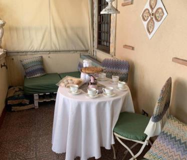 L'appartamento è composto da cucina con sala da pranzo al piano primo, due camere da letto con bagno al piano secondo ed un terrazzo posto al piano secondo mediante scala interna di collegamento d'interpiano, difatti collega il P.1°, 2° e 3°. Allo stato attuale necessiterebbe di ristrutturazione totale, gli impianti vecchi e non funzionanti, pavimentazione in piastrelle di gres vario tipo, porte interne in legno, infissi esterni anch'essi in legno.