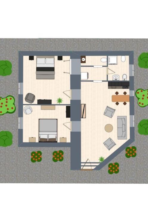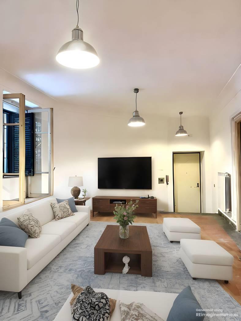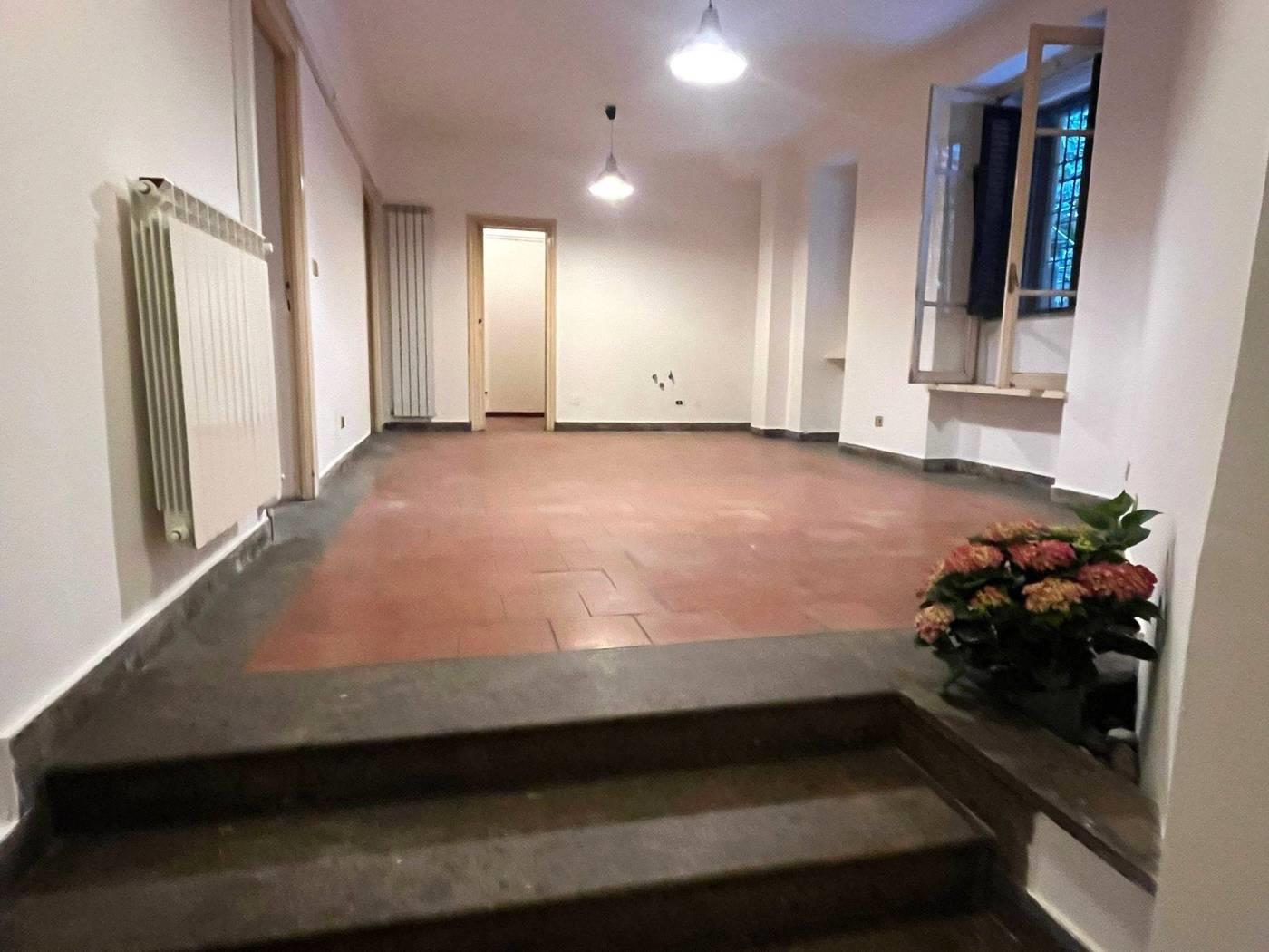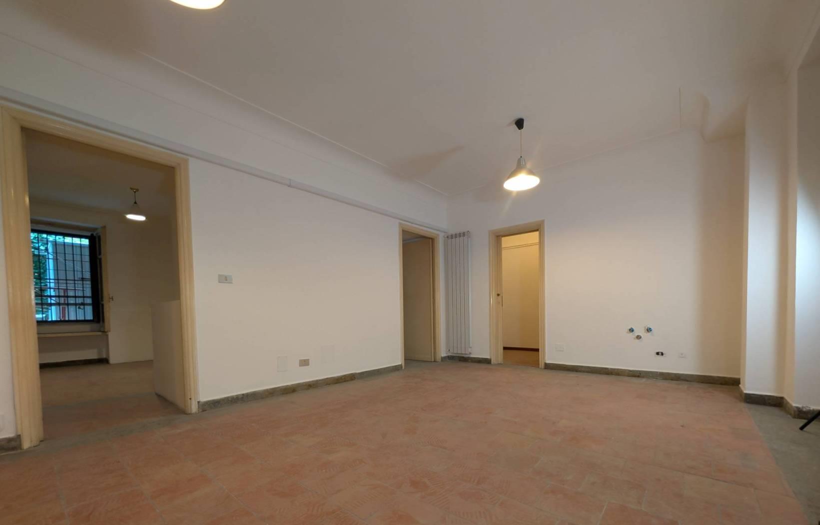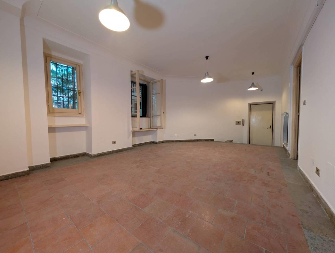 L’immobile è composto da un ampio ingresso, un salone di circa 40 mq con predisposizione per cucina all’americana, due camere da letto, un bagno e la possibilità di realizzare un secondo servizio con zona lavanderia. I pavimenti in cotto, in ottime condizioni, donano calore agli ambienti. La doppia esposizione sui giardini condominiali garantisce luminosità e tranquillità, rendendo lo spazio ideale sia come abitazione, sia come studio professionale o investimento locativo di qualità.